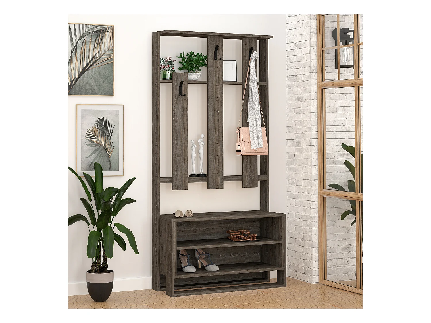 Decortie Café Foncé 36x90x180cm Porte-manteau avec 2 niveaux, panneau de particules, métal, rectangulaire, Chester