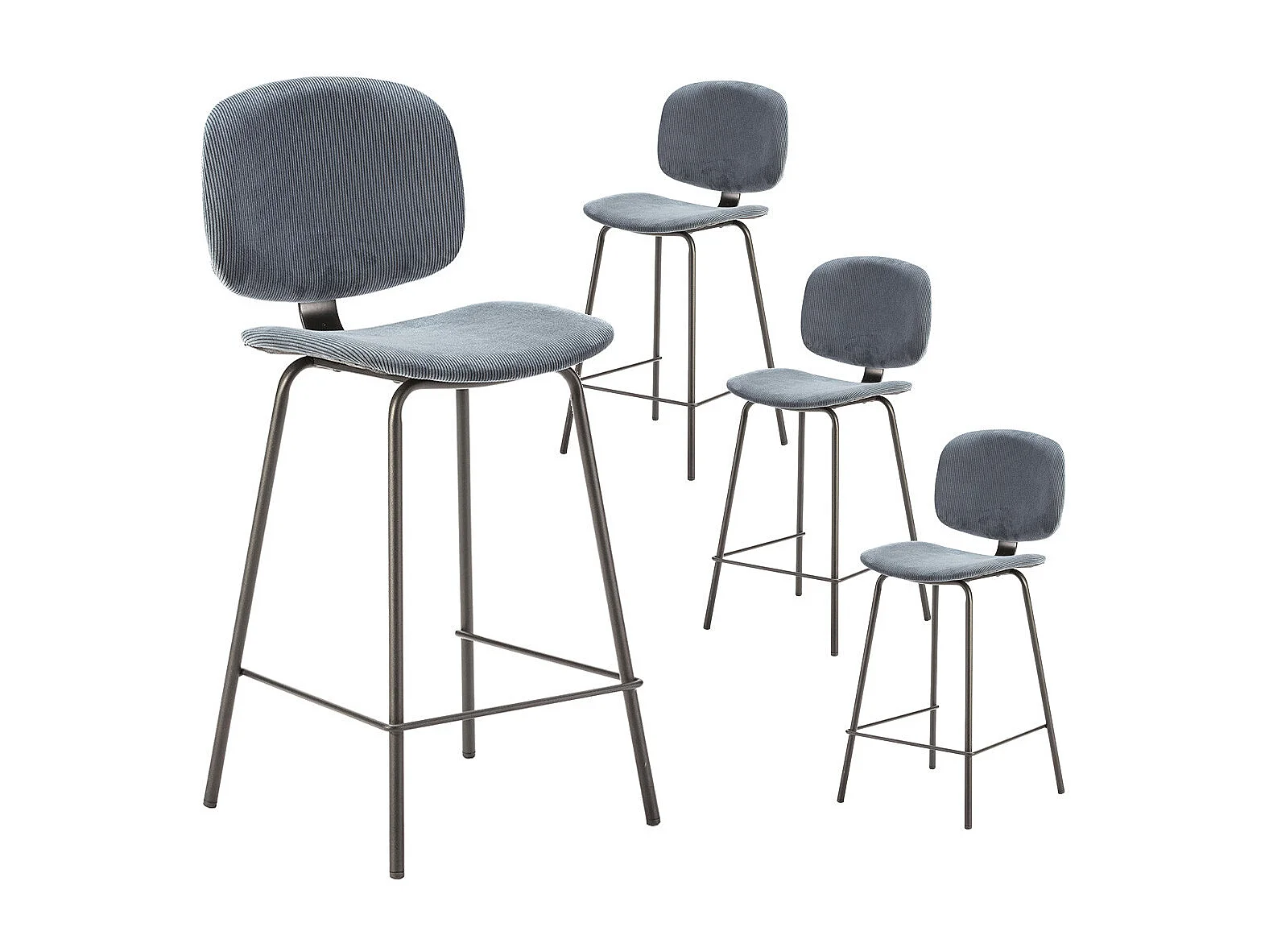 GARY - Lot de 4 Tabourets en Velours Côtelé Bleu Piétement Métal Noir