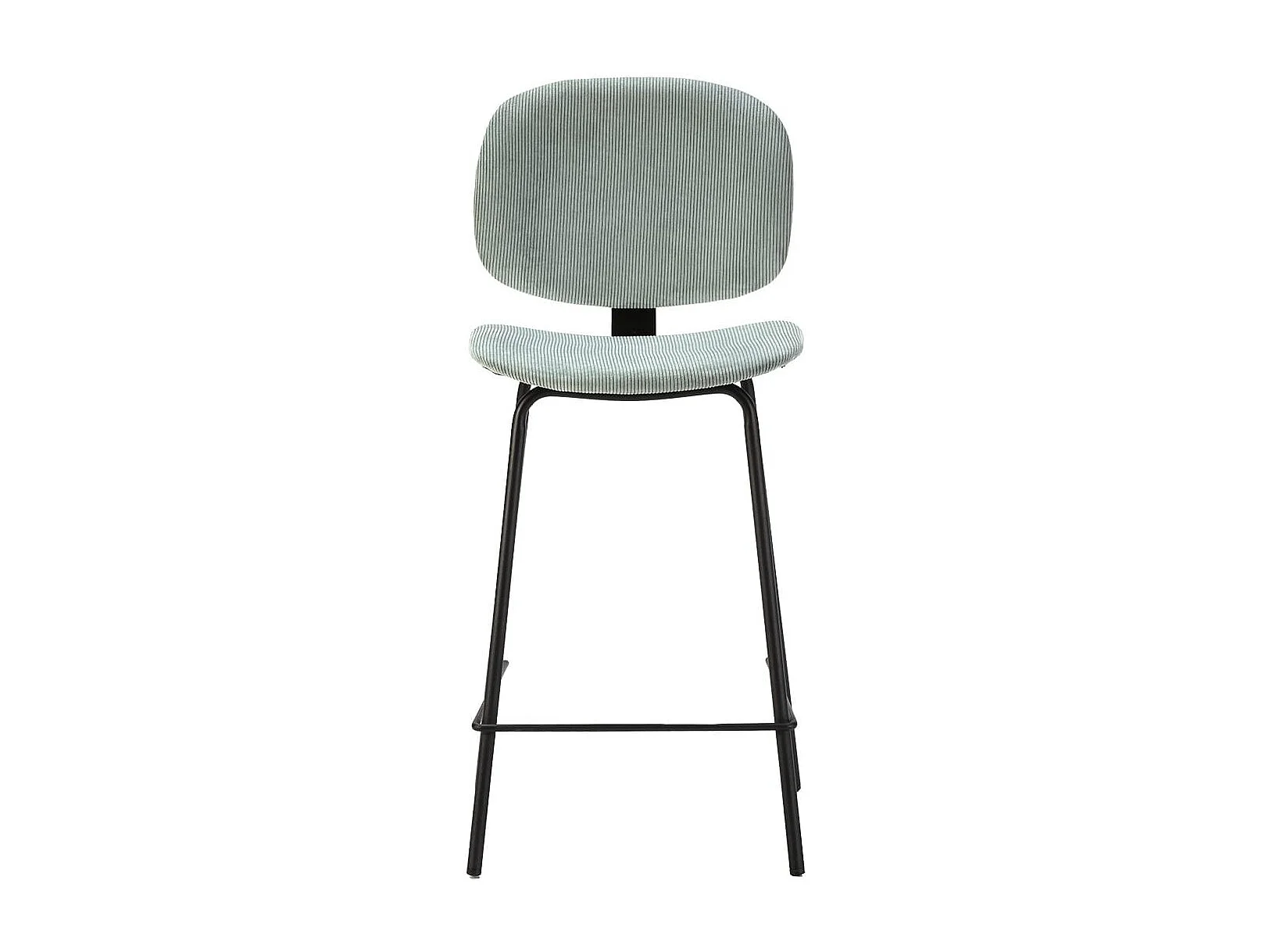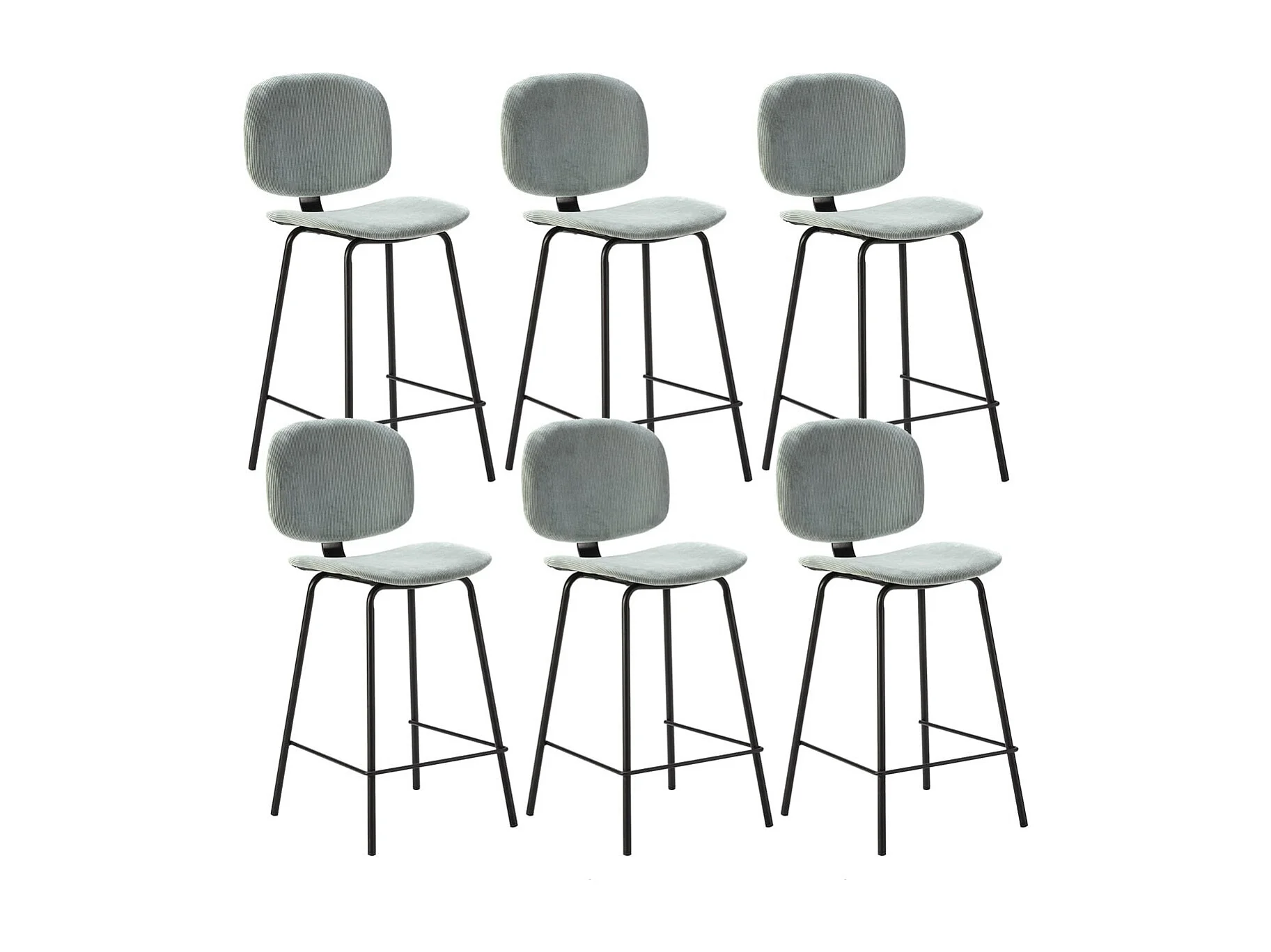 GARY - Lot de 6 Tabourets en Velours Côtelé Vert d'Eau Piétement Métal Noir