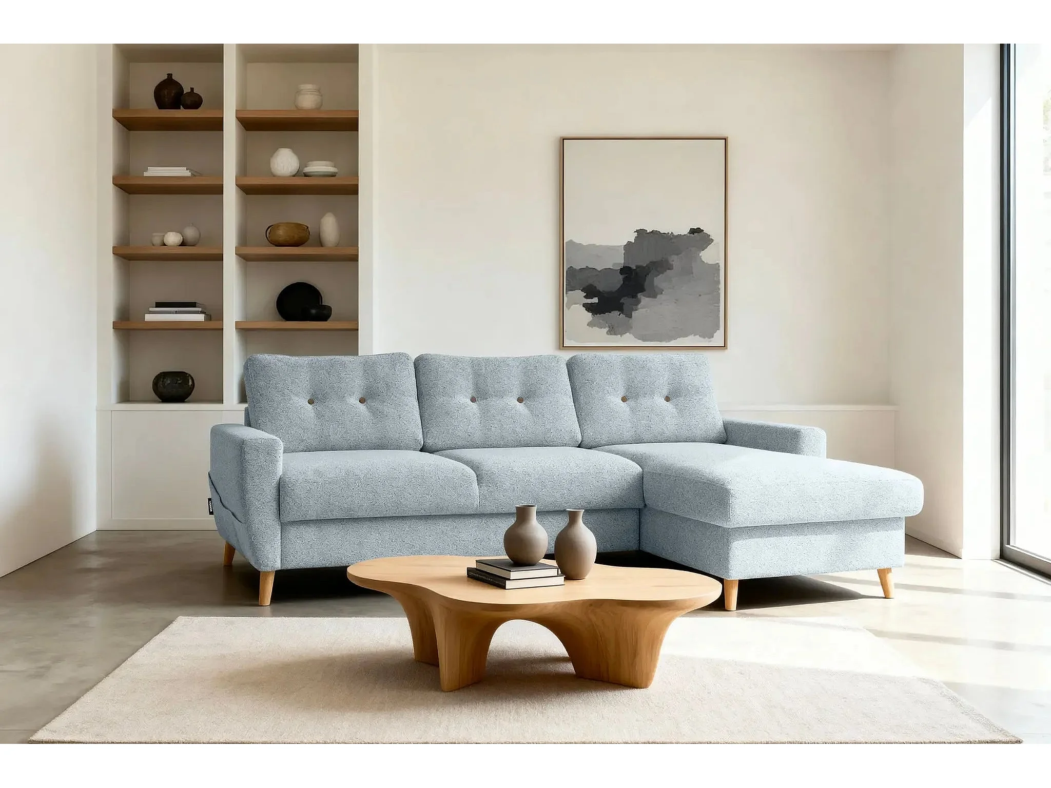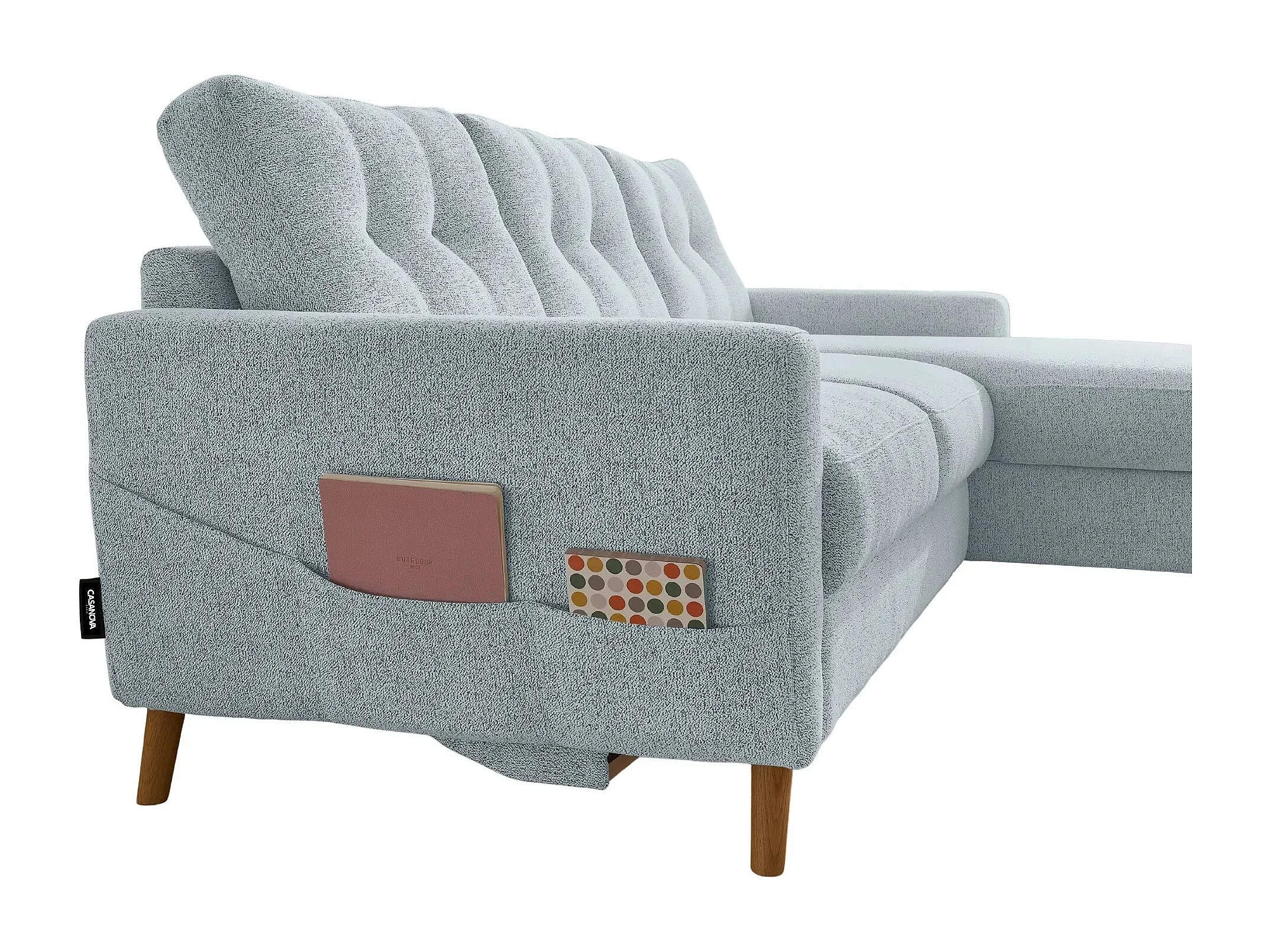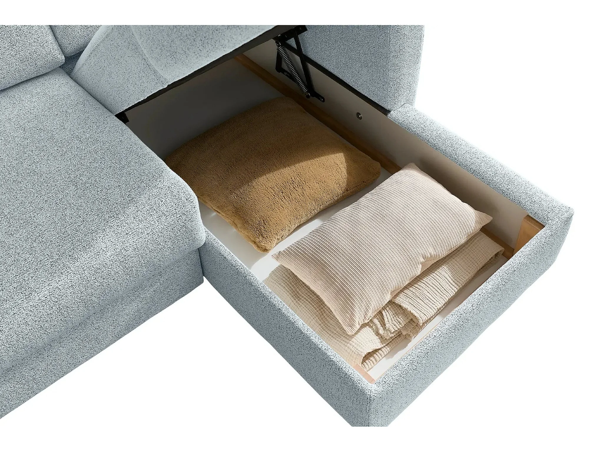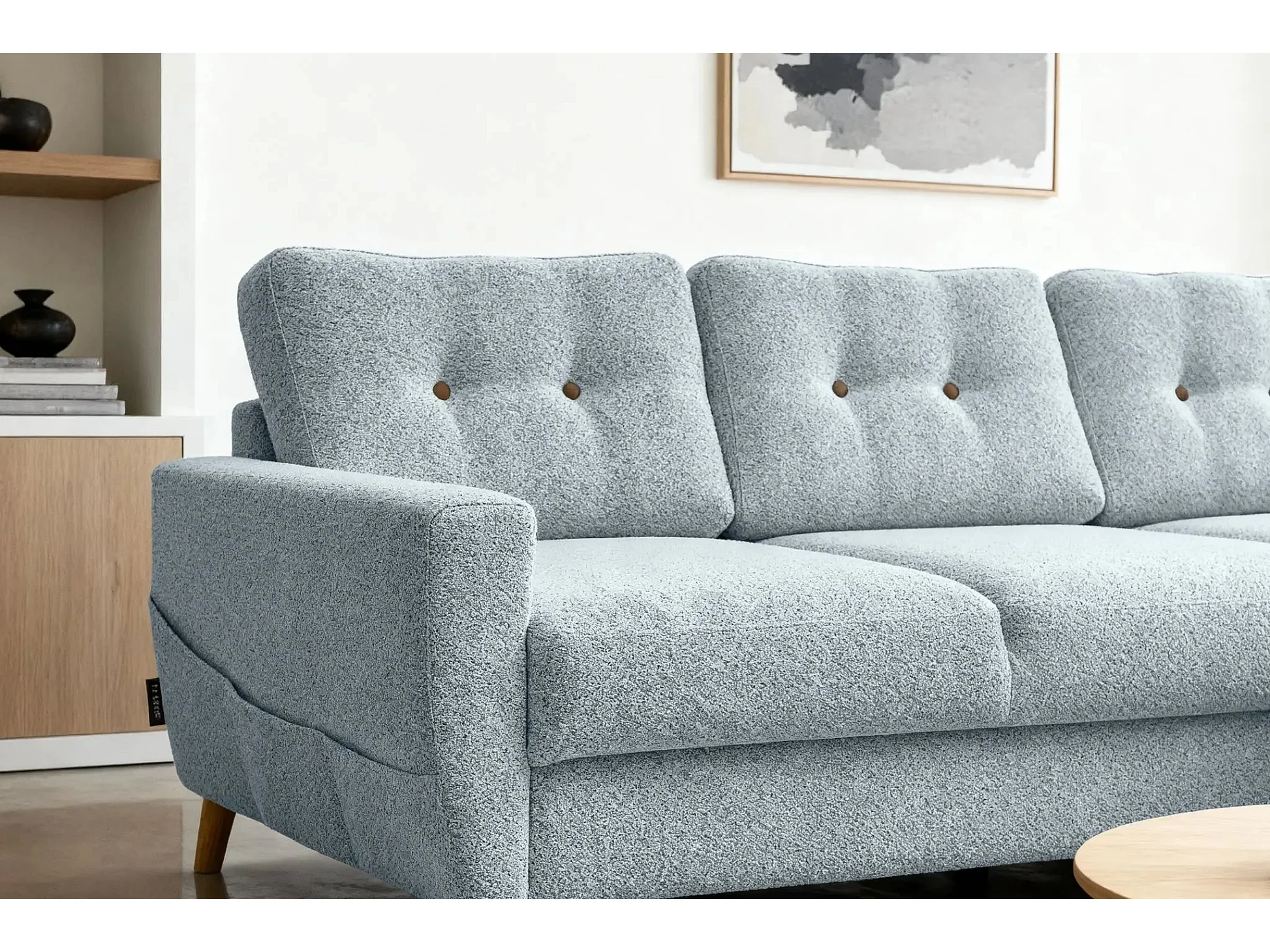 GASPARD - Canapé d'angle convertible tissu bouclette 4 places - Bleu - Droit