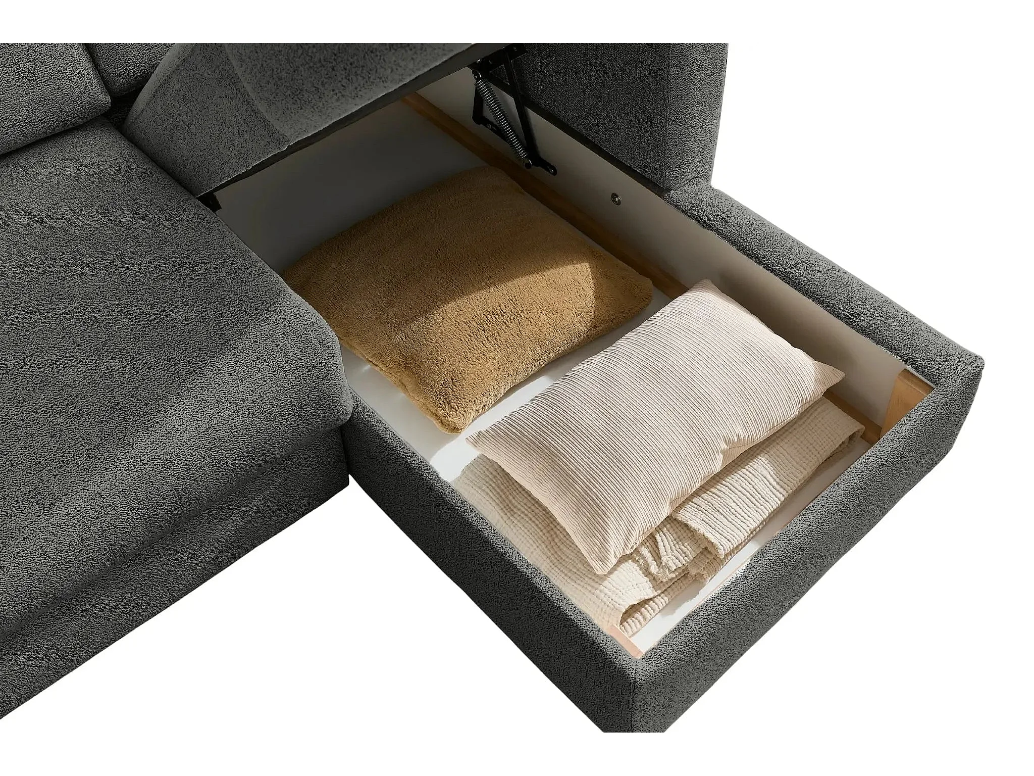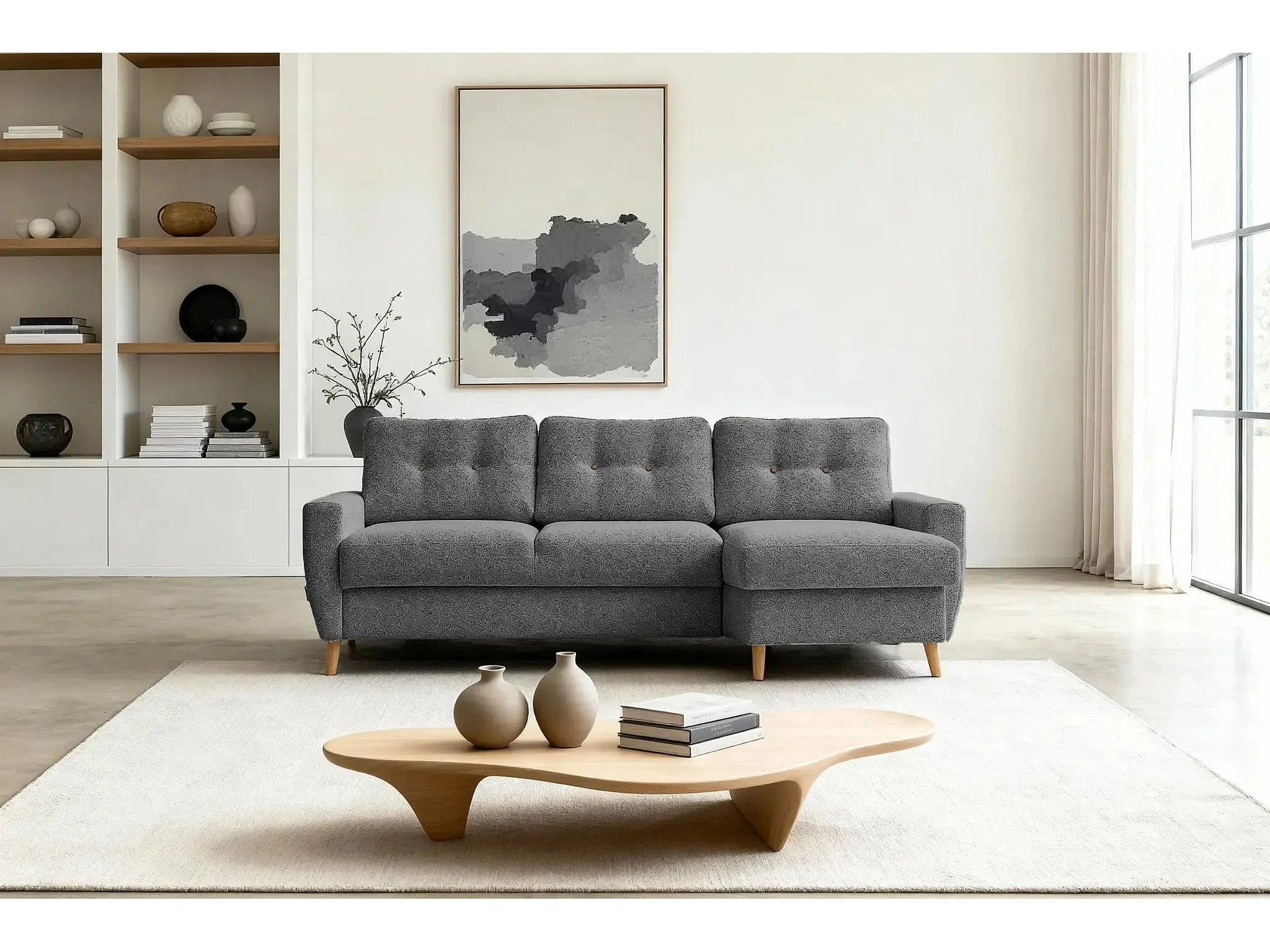 GASPARD - Canapé d'angle convertible tissu bouclette 4 places - Gris - Droit