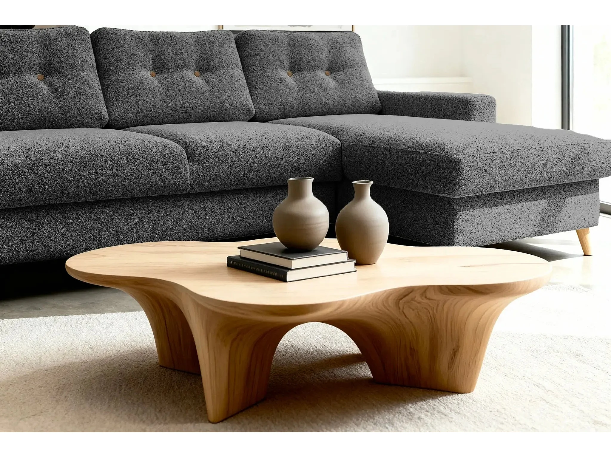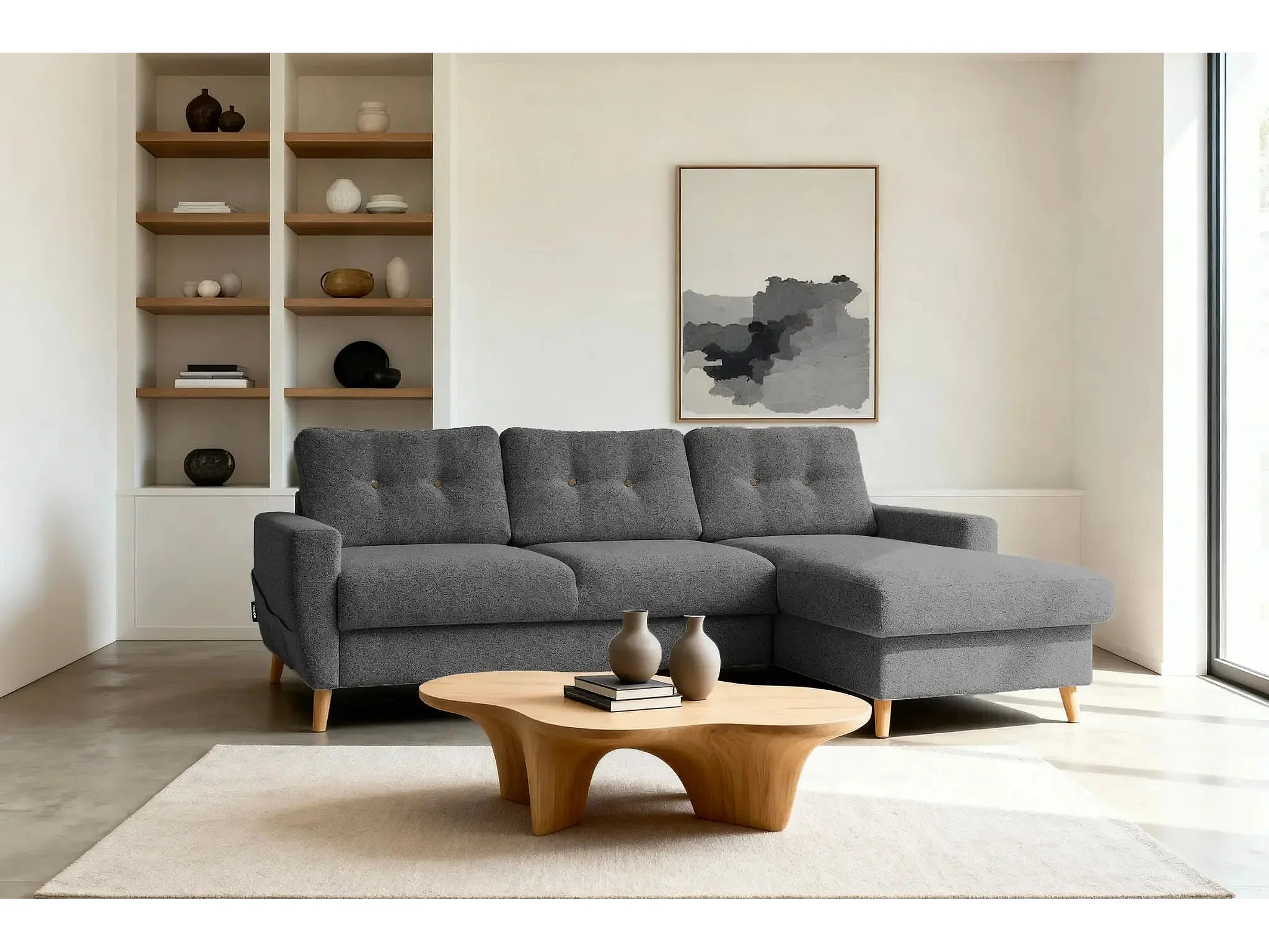 GASPARD - Canapé d'angle convertible tissu bouclette 4 places - Gris - Gauche