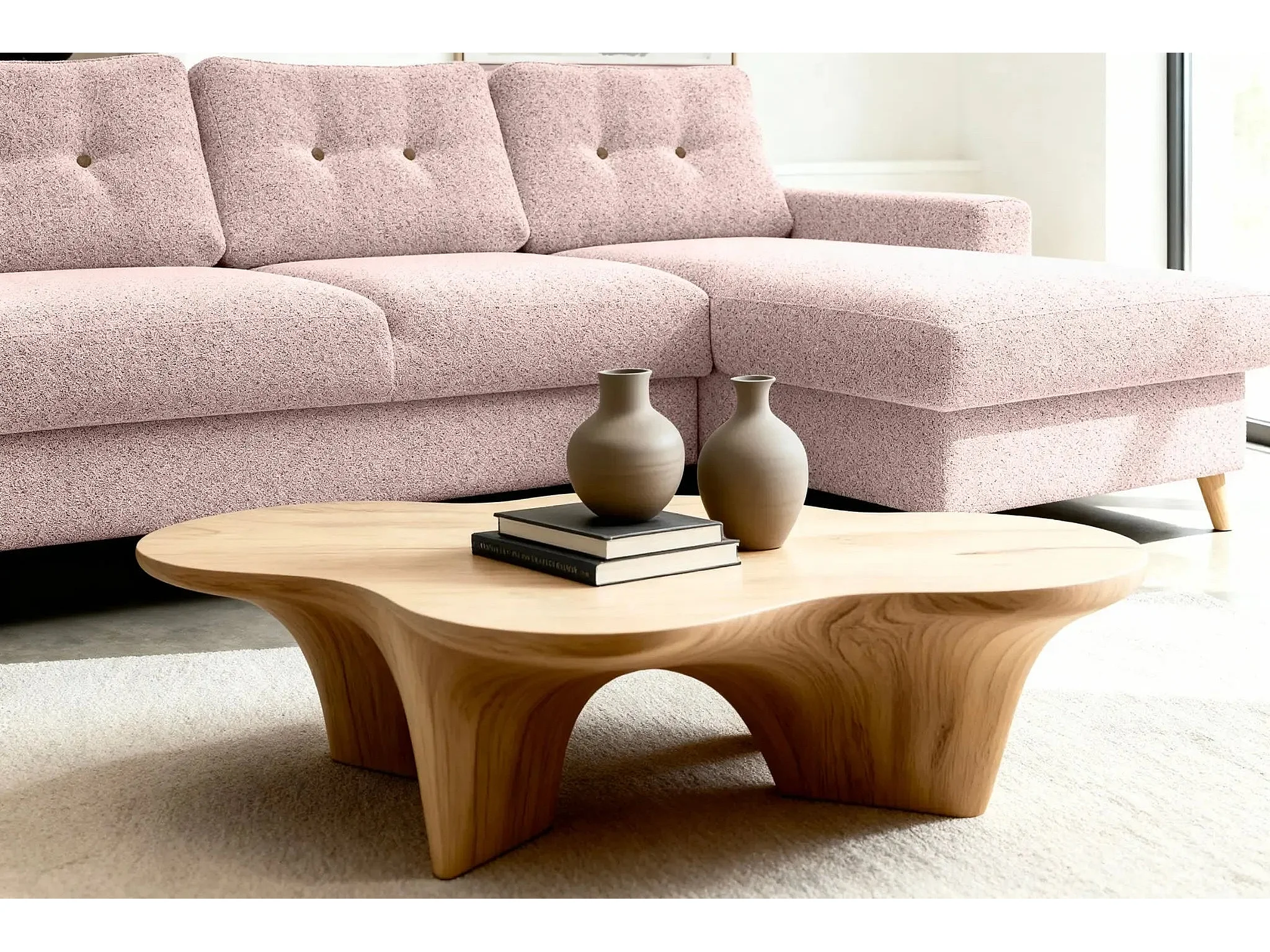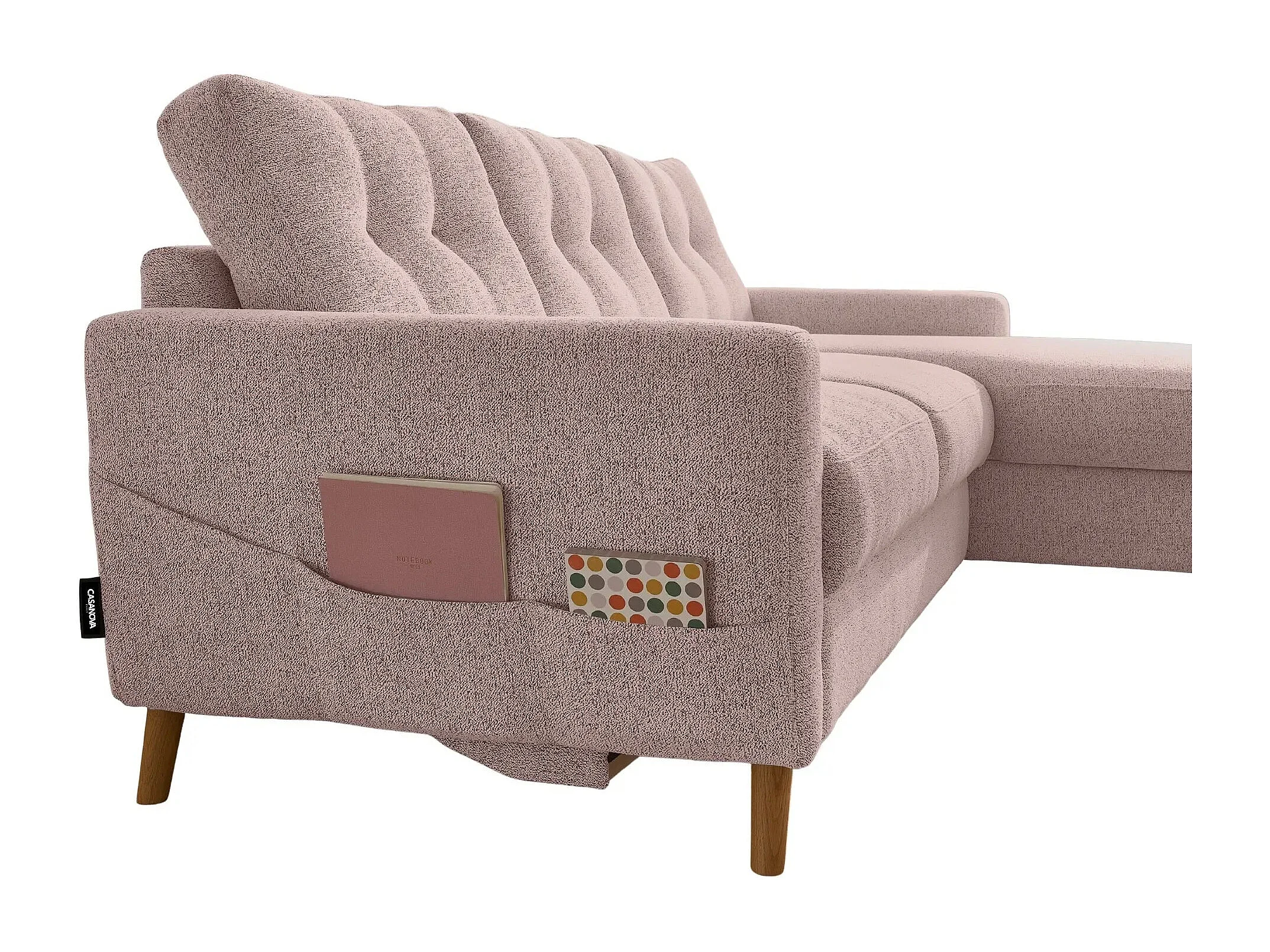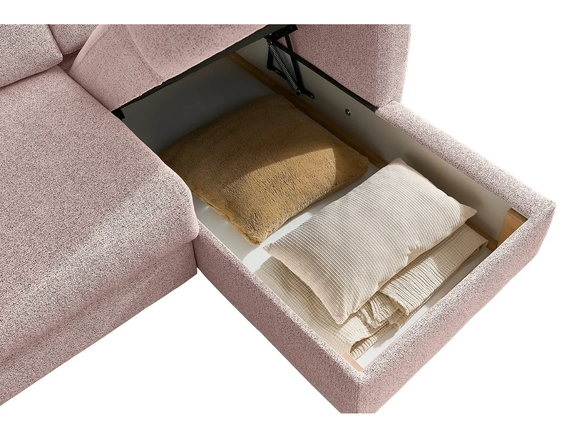 GASPARD - Canapé d'angle convertible tissu bouclette 4 places - Rose - Gauche