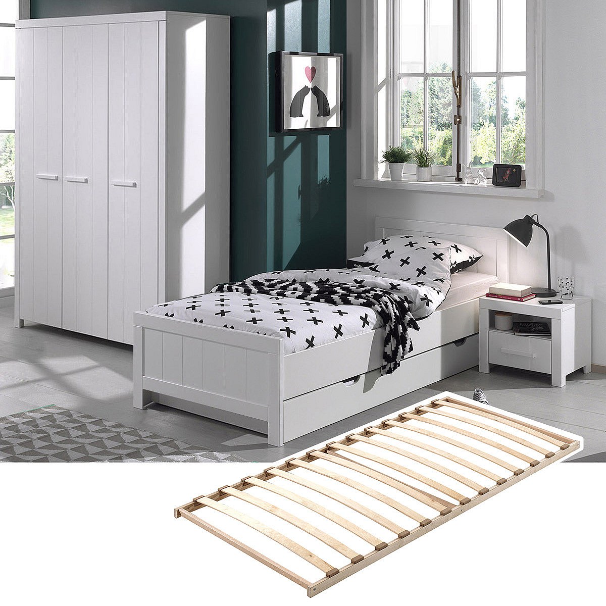 GASTON - Chambre 90x200cm + Sommier + Armoire 3P