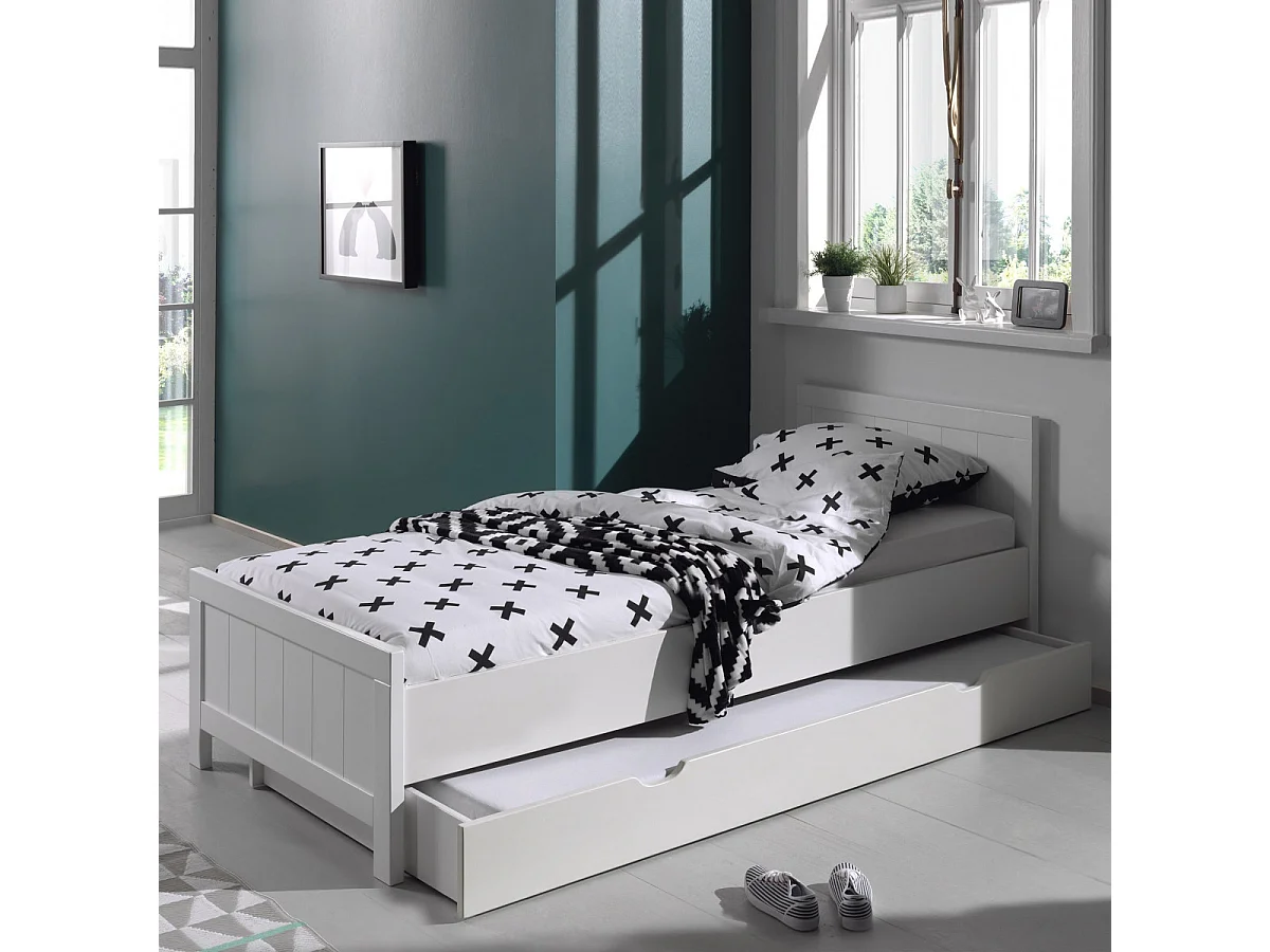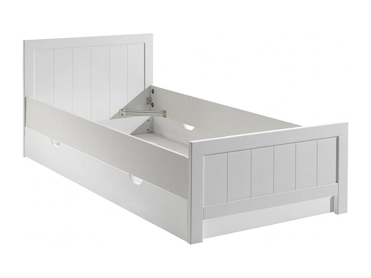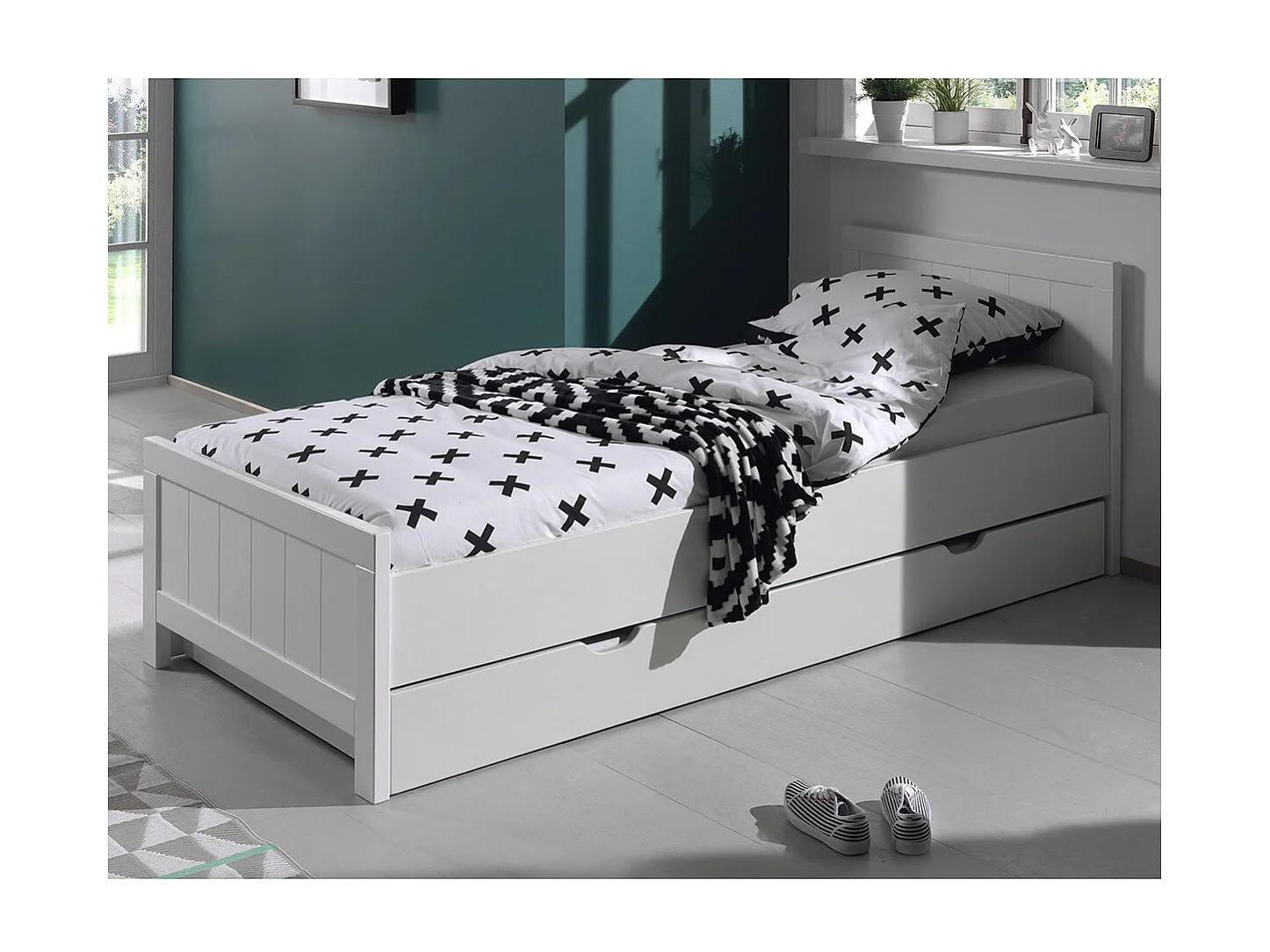 GASTON - Lit 90x200cm avec Tiroir de Lit Laqués Blanc