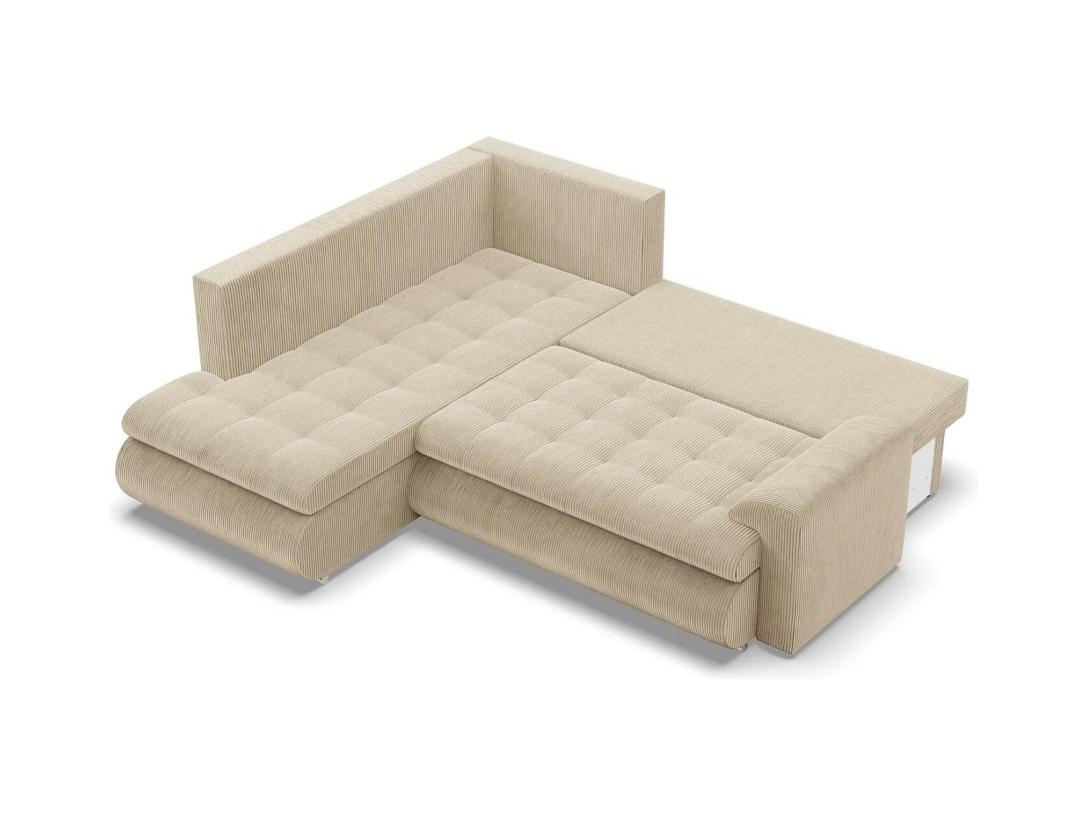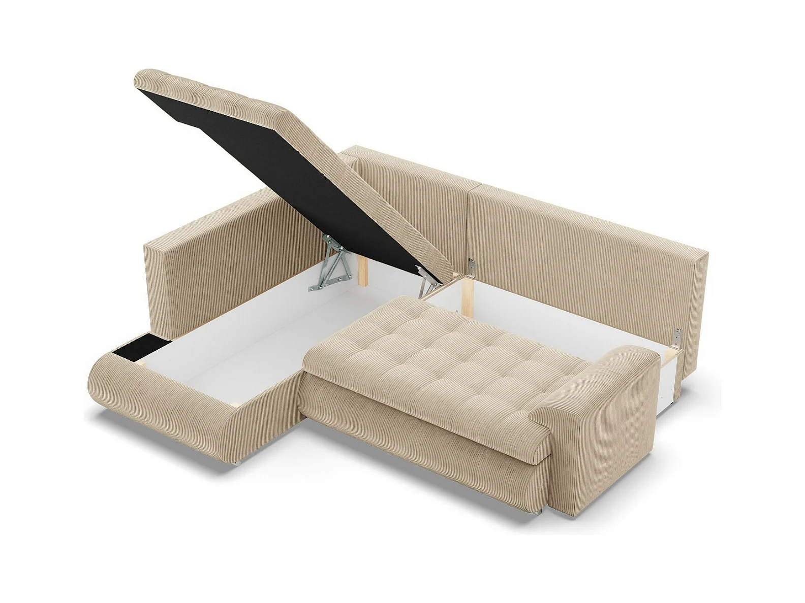 Gauche Canapé d'angle avec fonction couchage, Ottoman, Corde - Beige