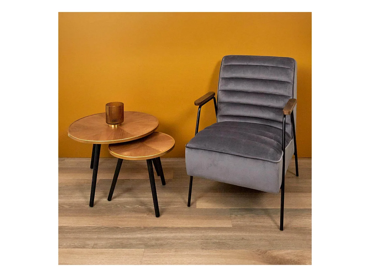 GAUTHIER - Tables Gigognes Plateau Effet Bois Cerclage Or
