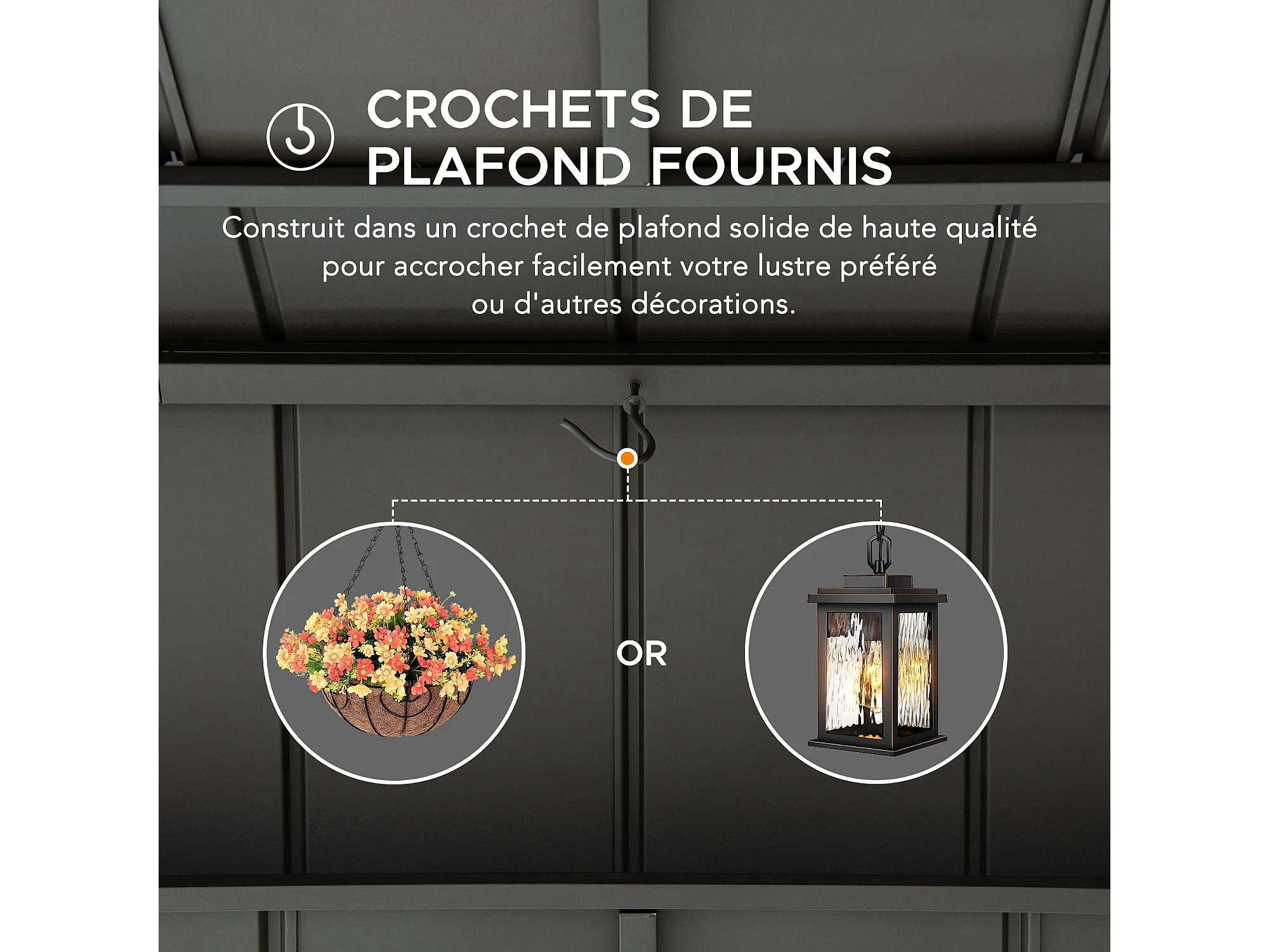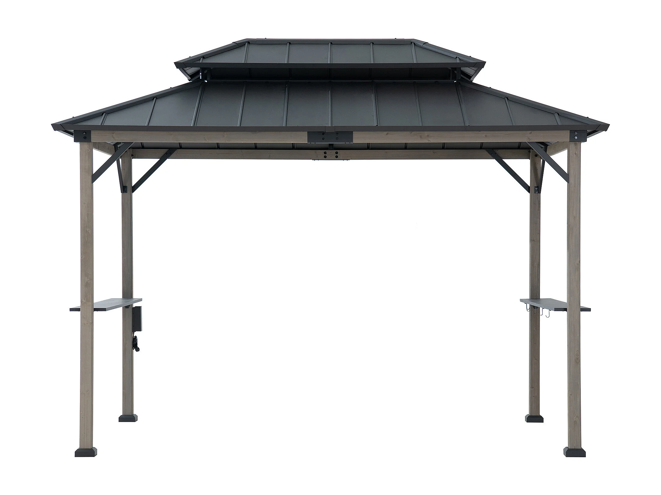 Gazebo pour barbecue ZUPO 360 cm x 240 cm, structure en bois avec toit rigide, prises électriques et étagères, toit anthracite.
