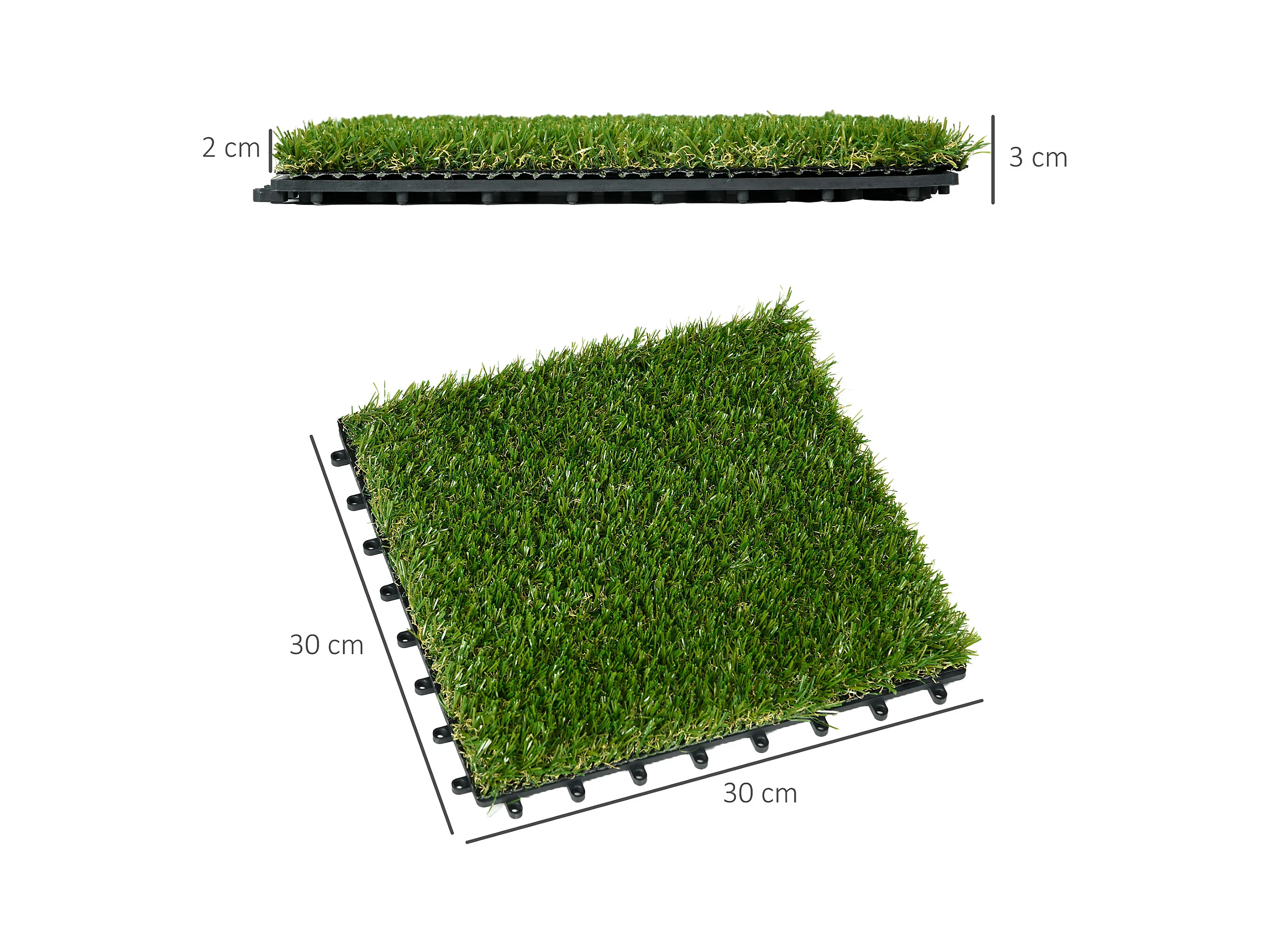 Gazon synthétique artificiel set de 10 dalles carreaux 30 x 30 cm épaisseur confort 3 cm à emboîter vert