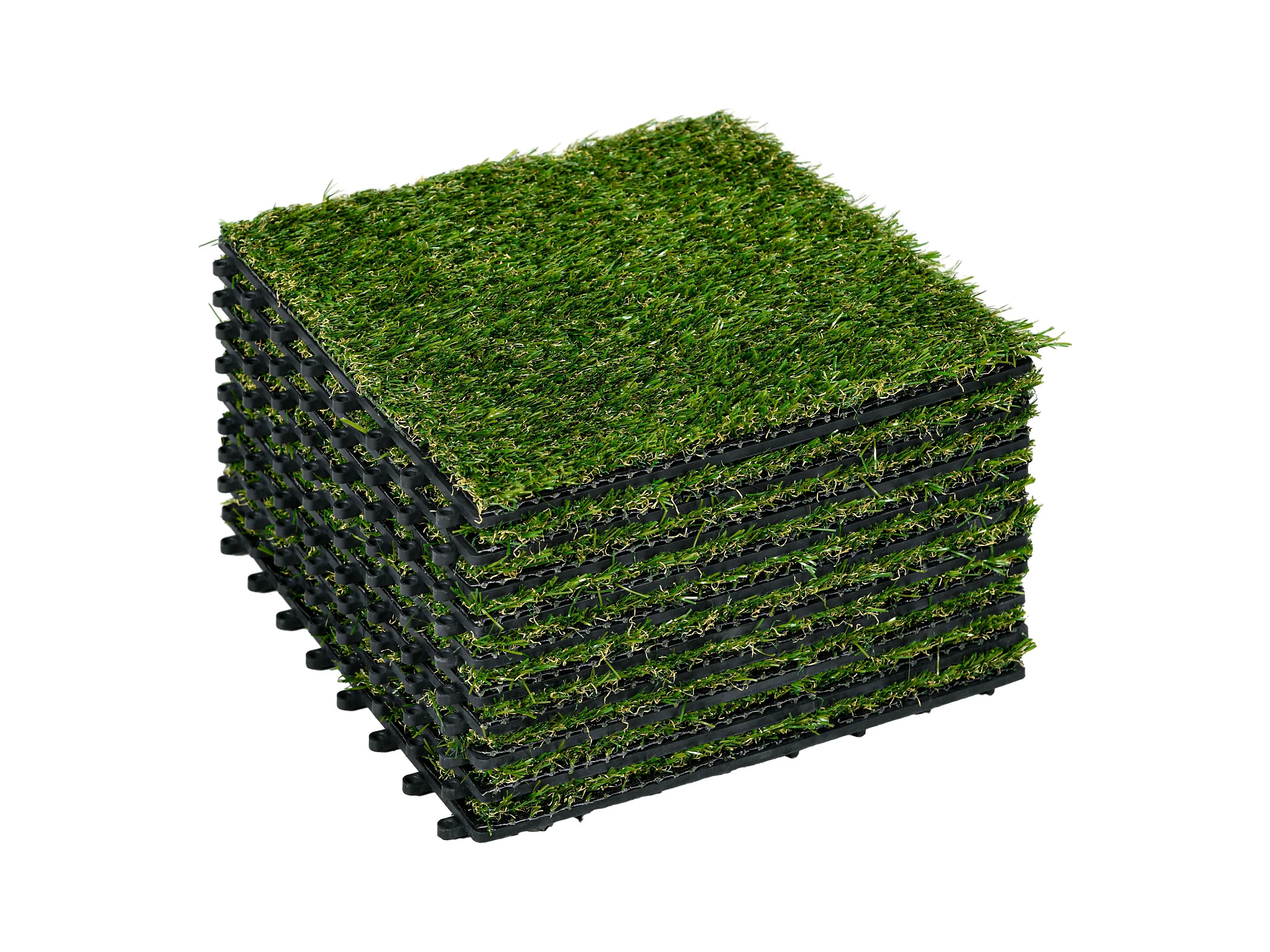 Gazon synthétique artificiel set de 10 dalles carreaux 30 x 30 cm épaisseur confort 3,5 cm à emboîter vert