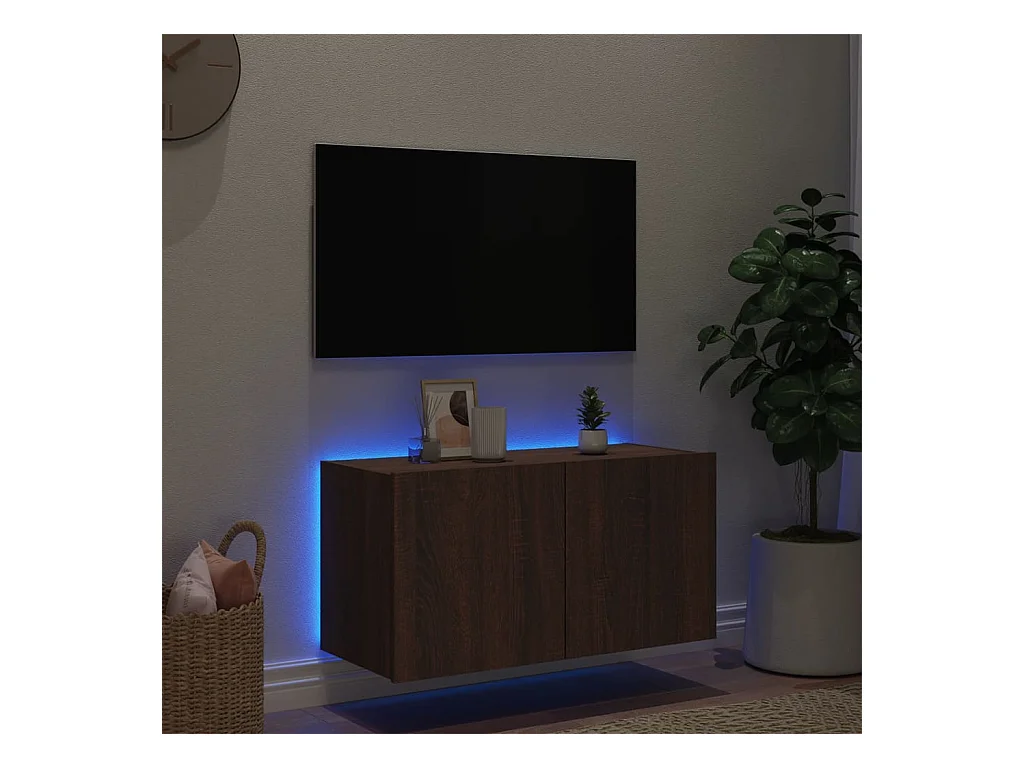 Gerben Meuble TV mural avec lumières LED chêne marron 80x35x41 cm