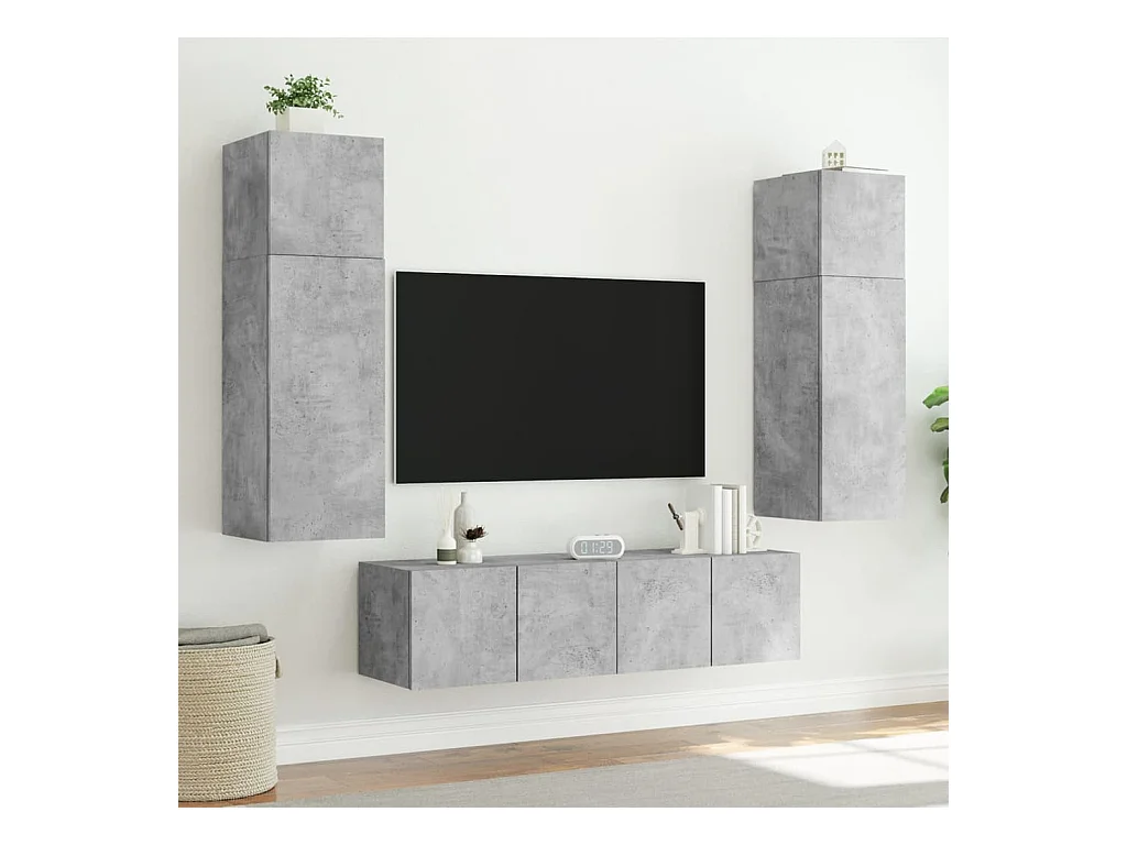 Gerben Meuble TV mural avec lumières LED gris béton 100x35x41 cm