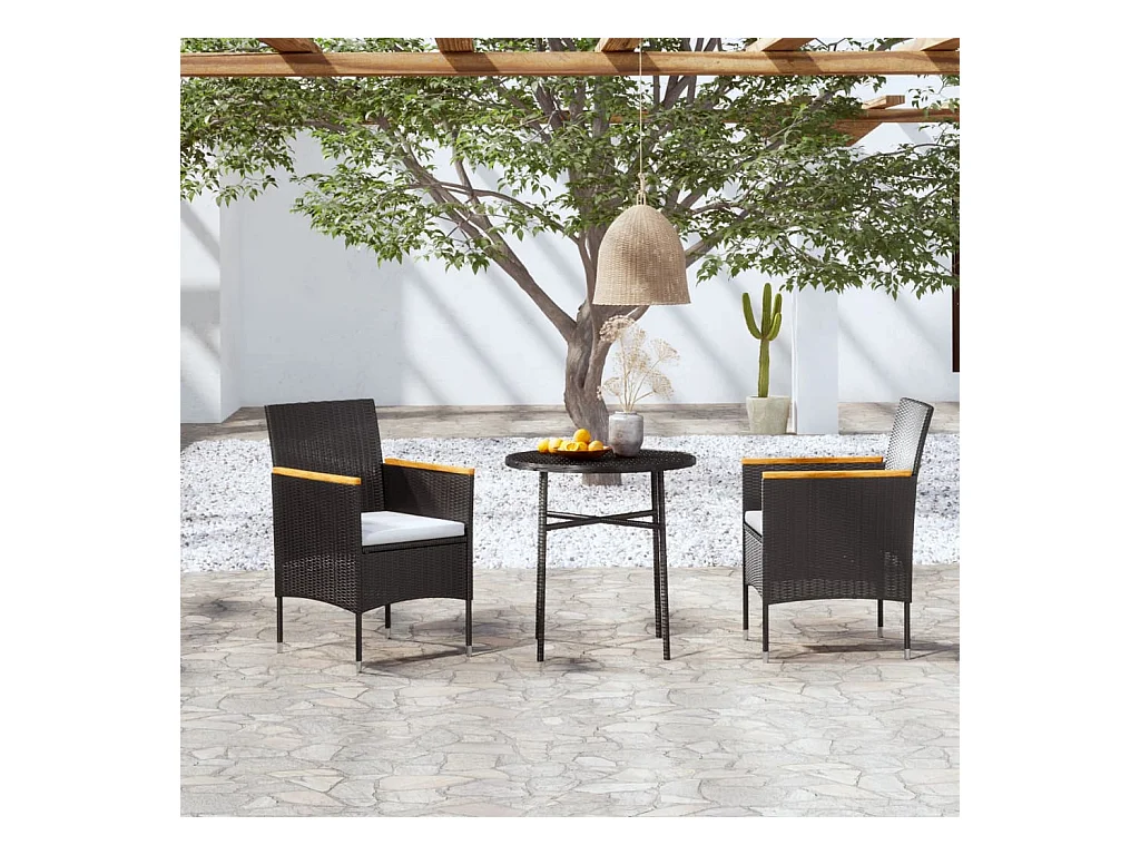 Germain Ensemble à manger de jardin 3 pcs Résine tressée Noir