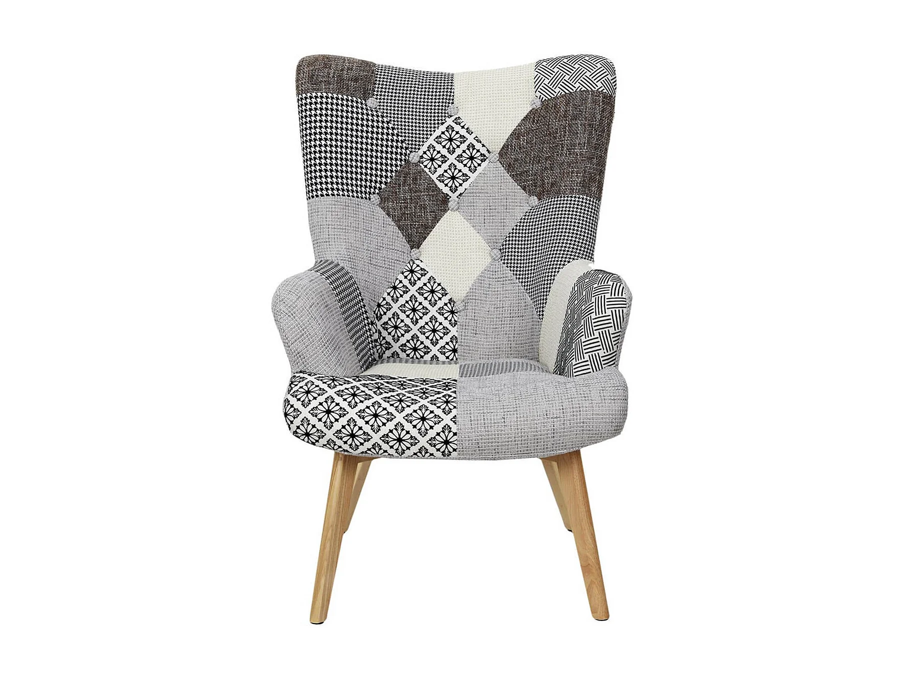 GIADA - Fauteuil Patchwork Motifs Grisés