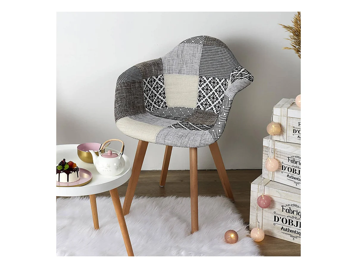 GIADA - Lot de 2 Fauteuils Patchwork Motifs Grisés
