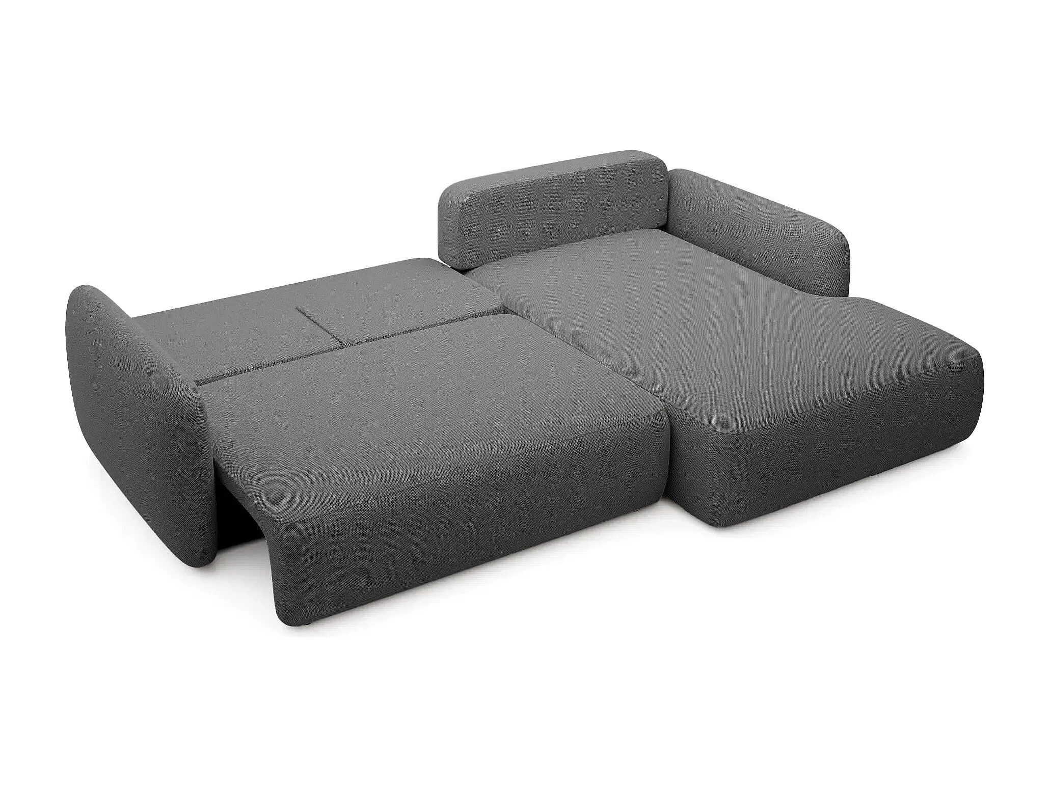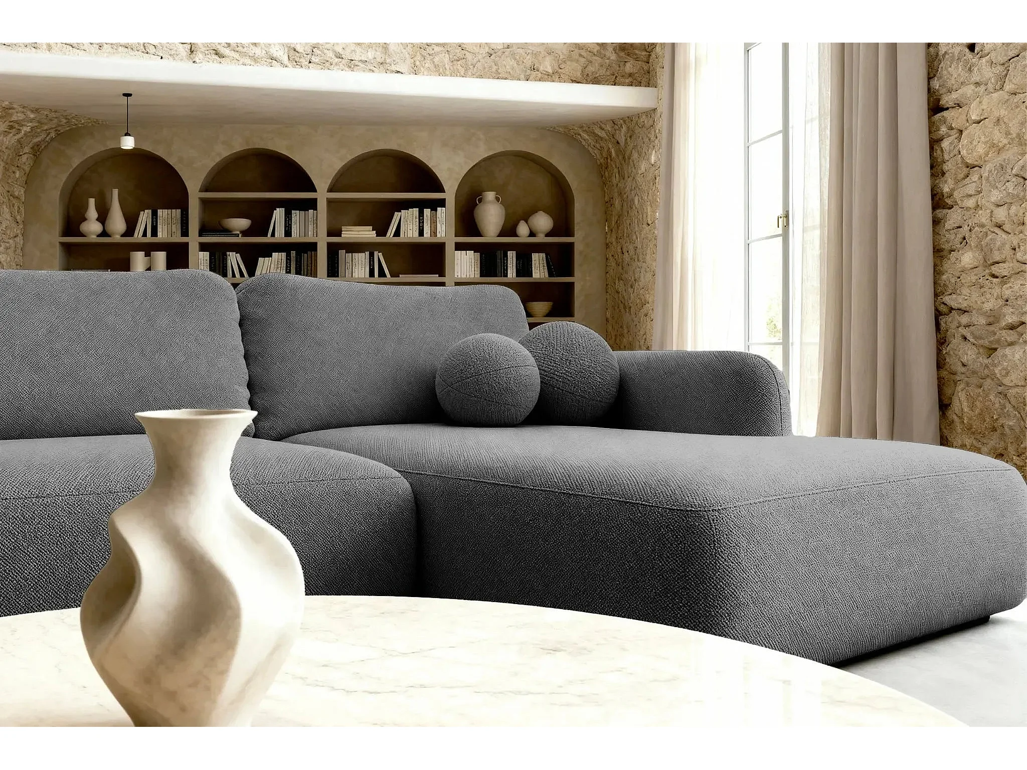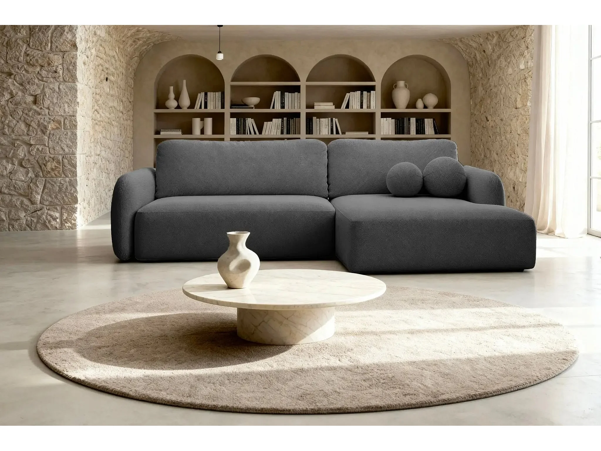 GIGI - Canapé d'angle convertible tissu bouclette 4 places - Gris foncé - Droit