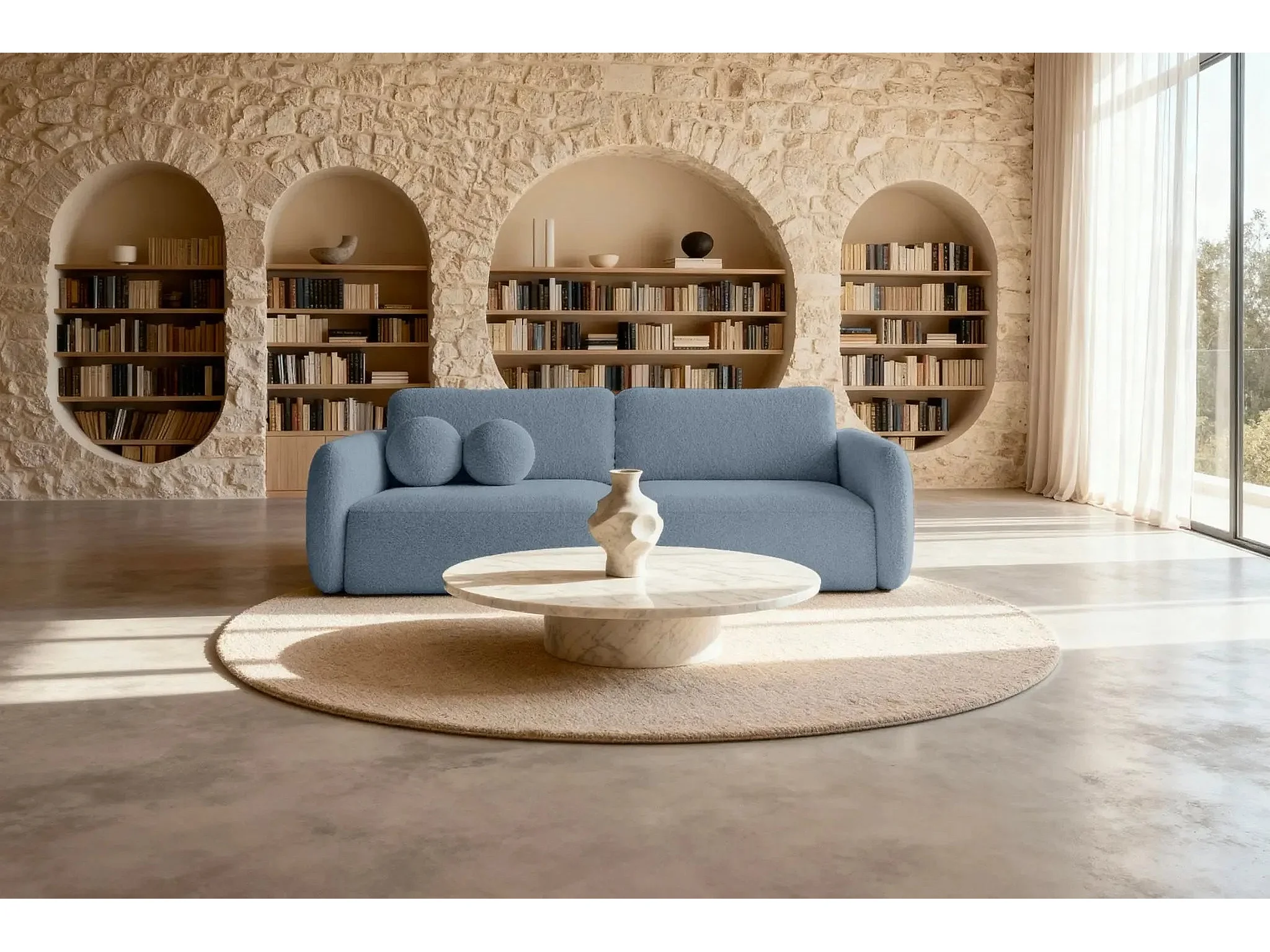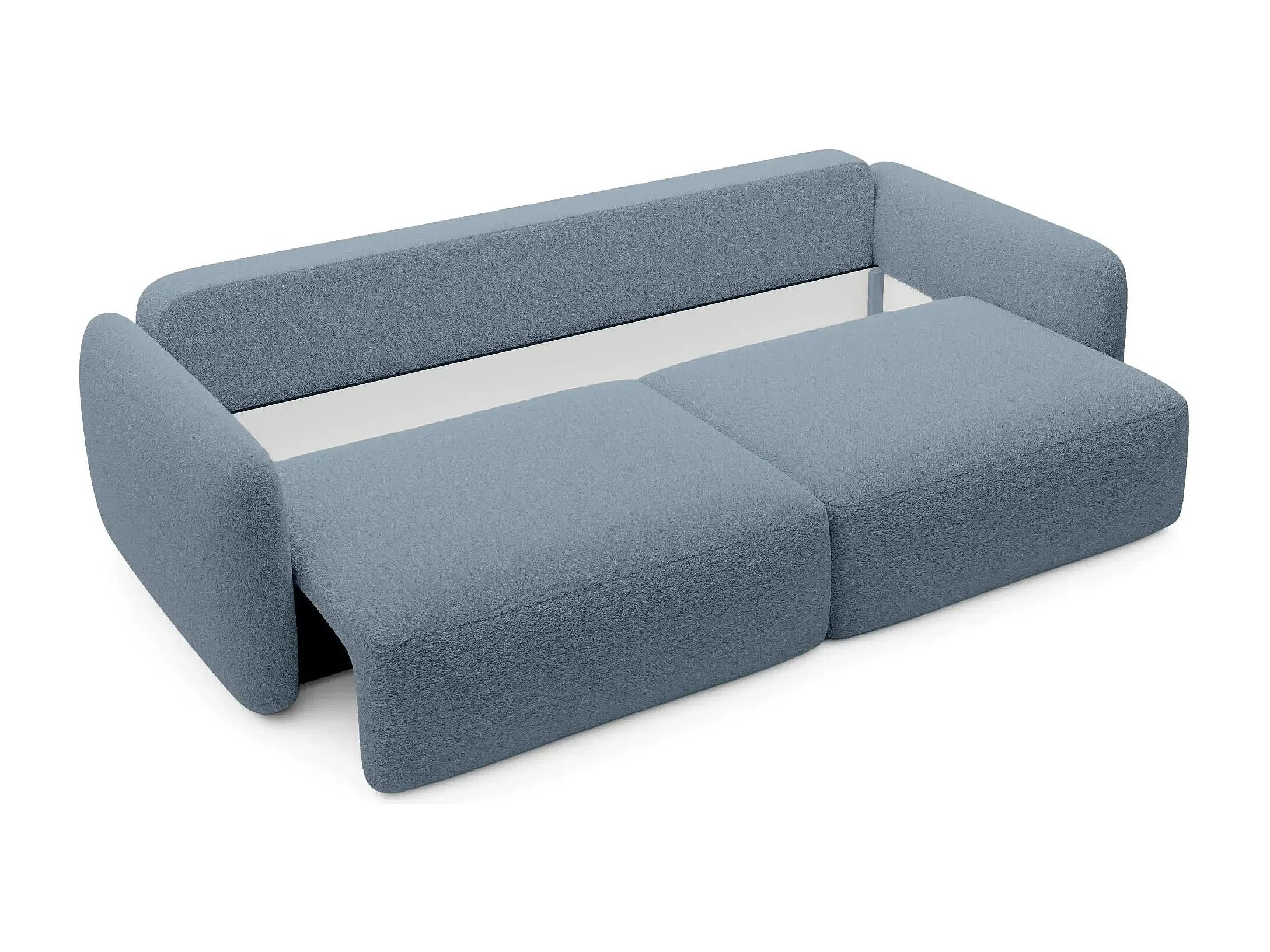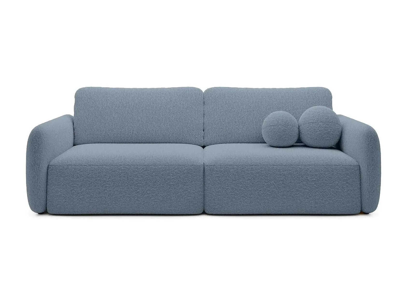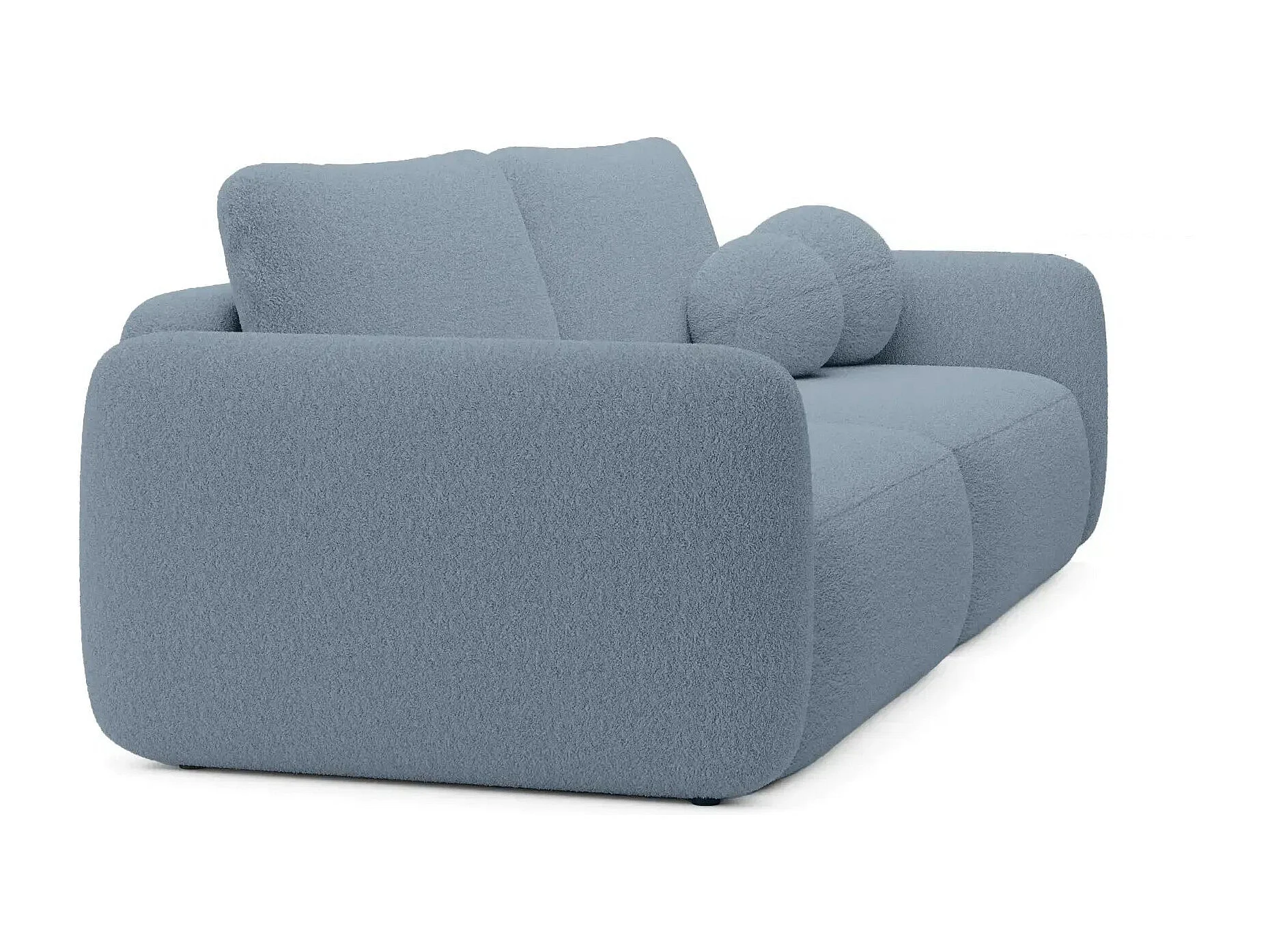 GIGI - Canapé droit convertible tissu bouclette 3 places - Bleu