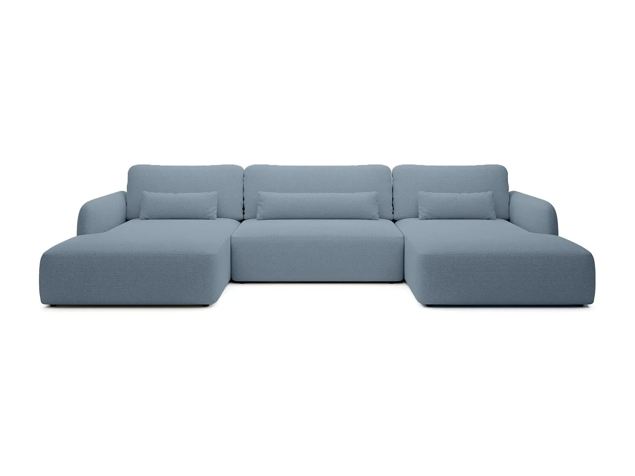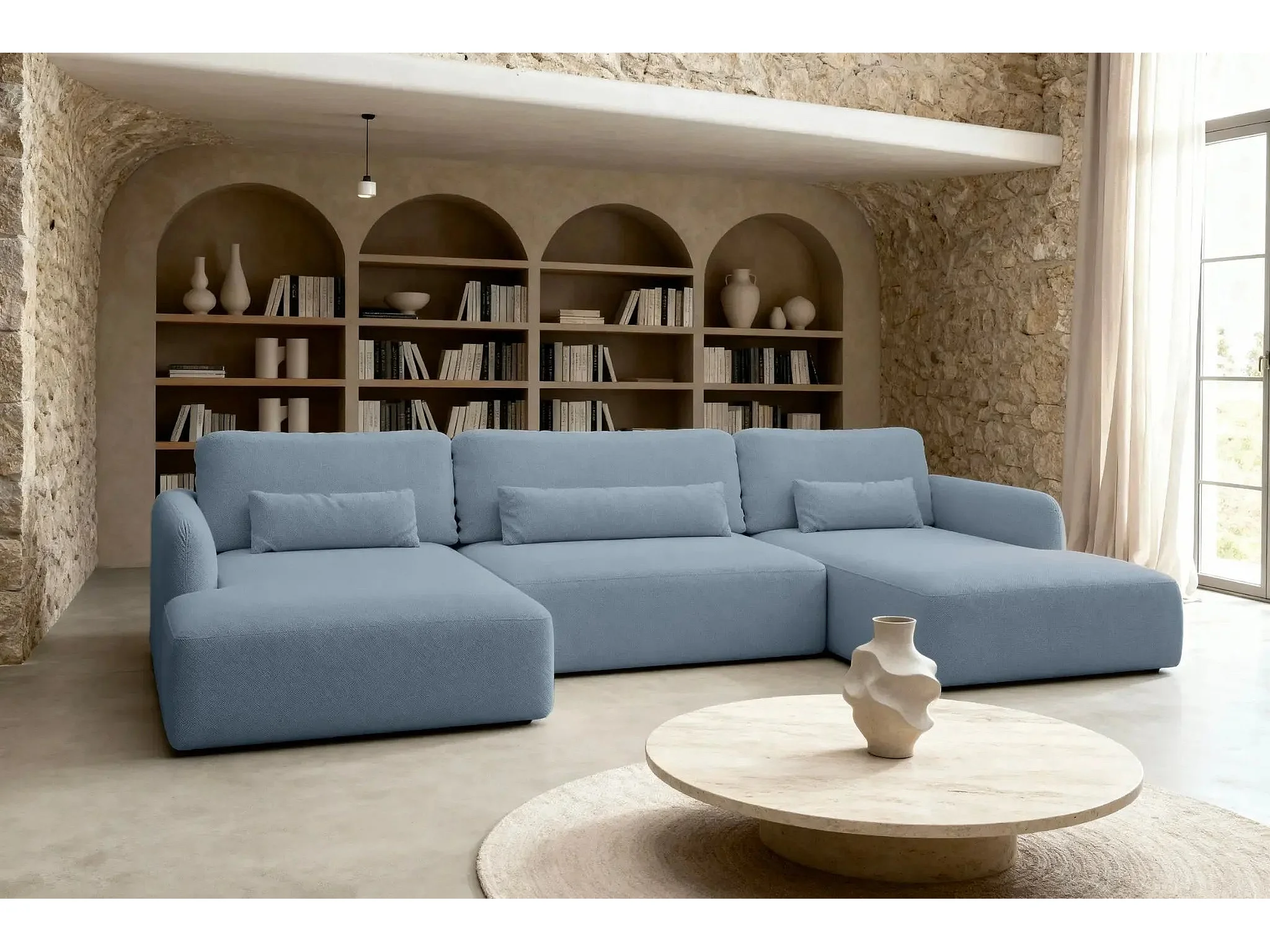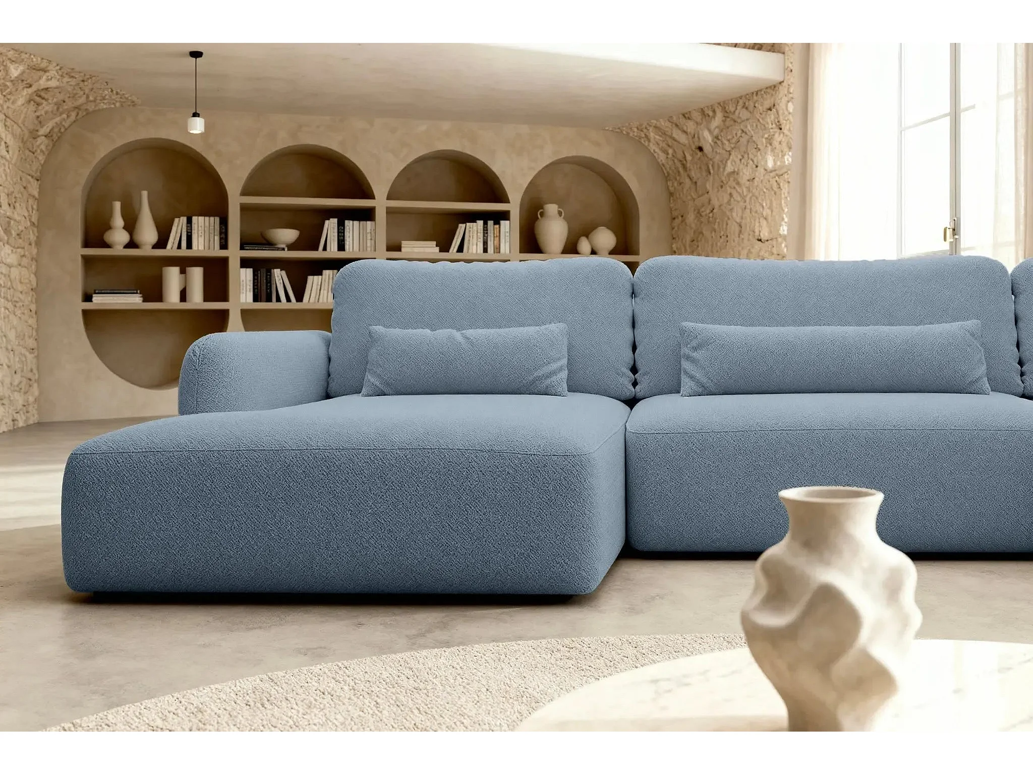 GIGI - Canapé panoramique convertible tissu bouclette 5 places - Bleu