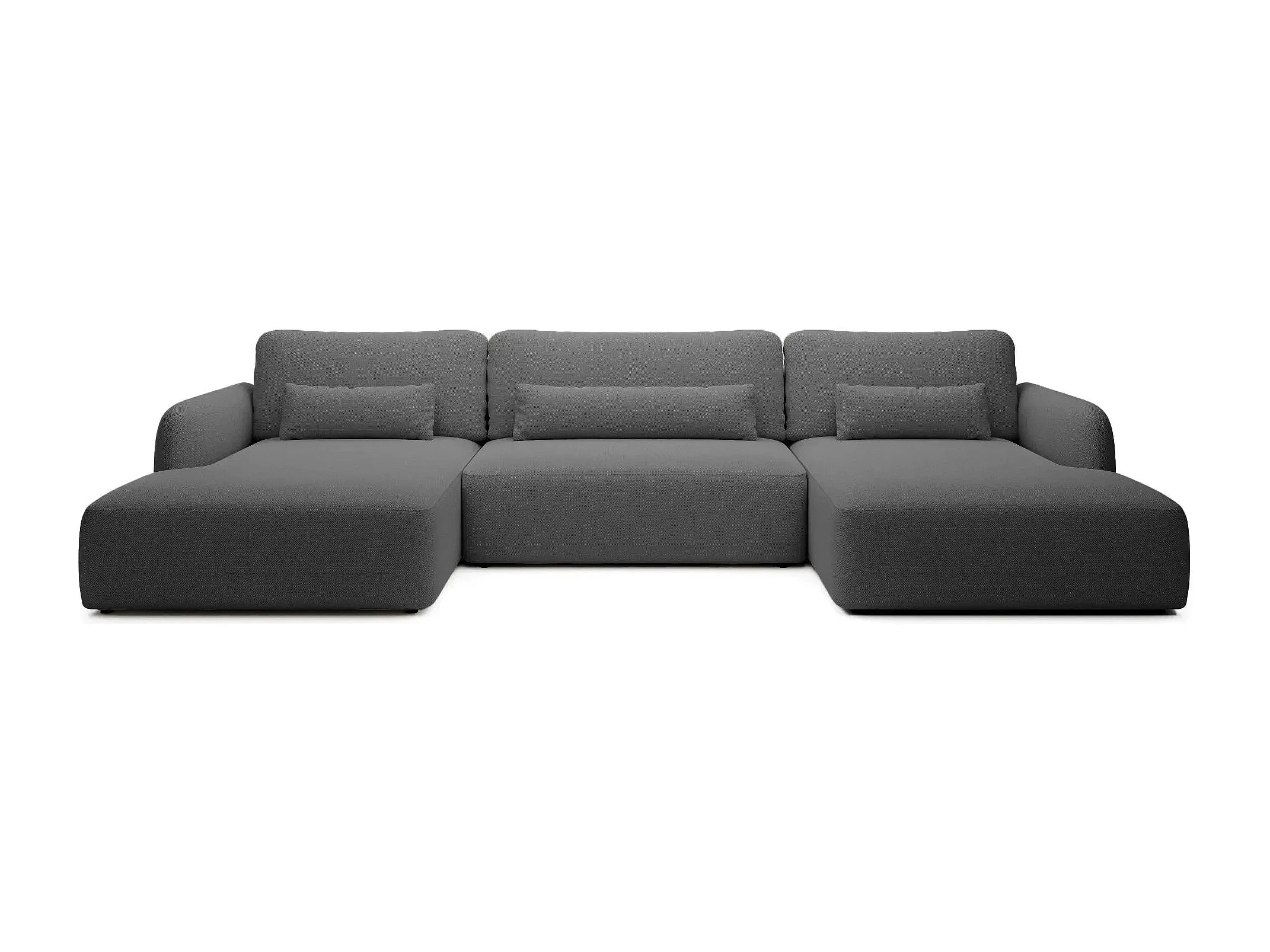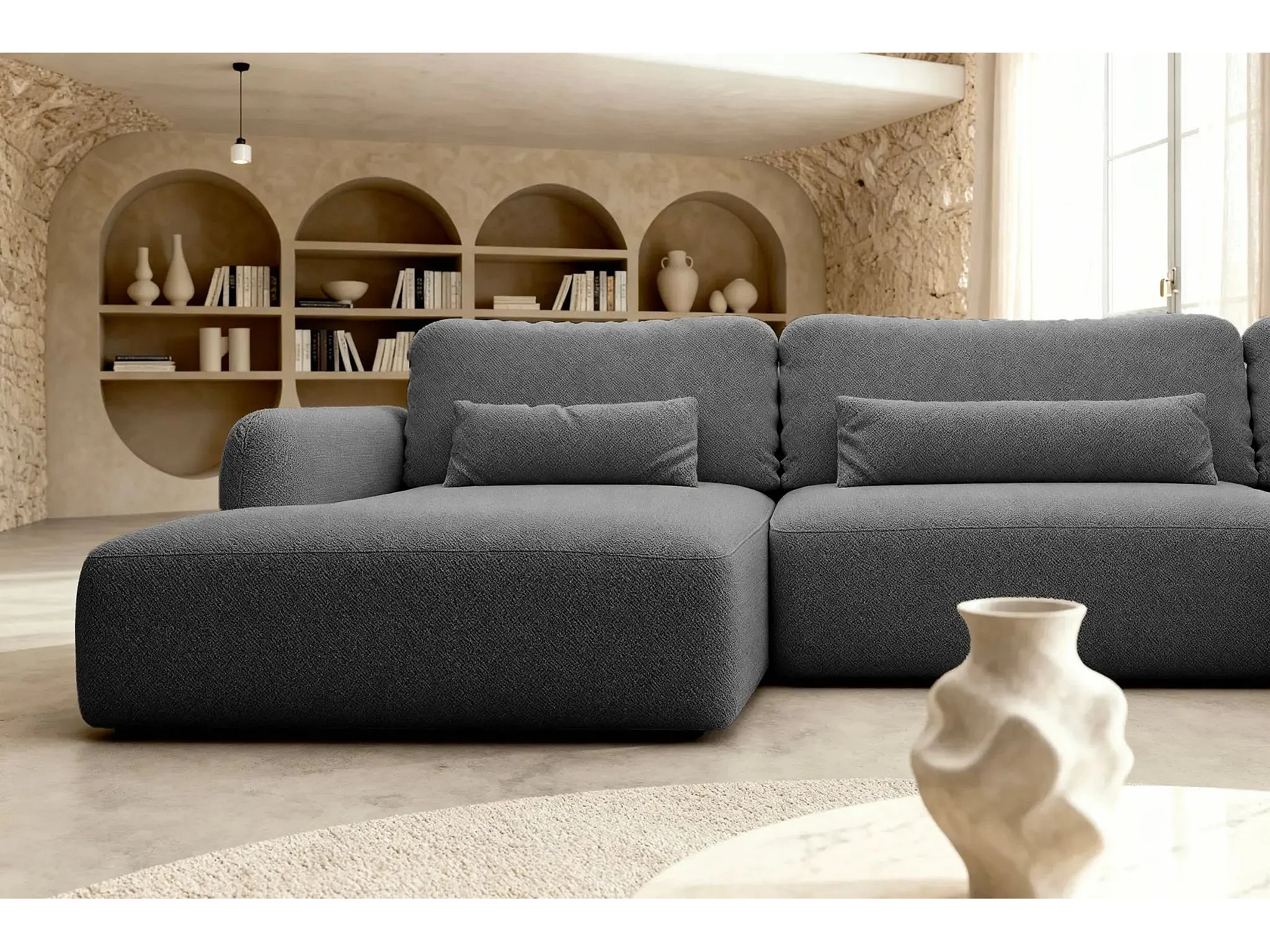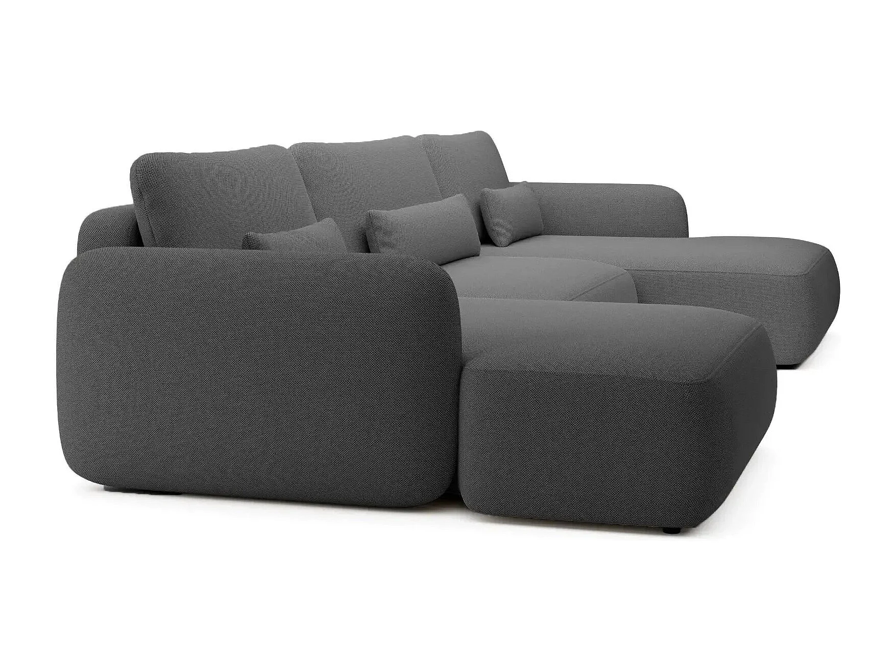 GIGI - Canapé panoramique convertible tissu bouclette 5 places - Gris foncé