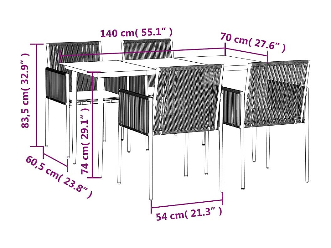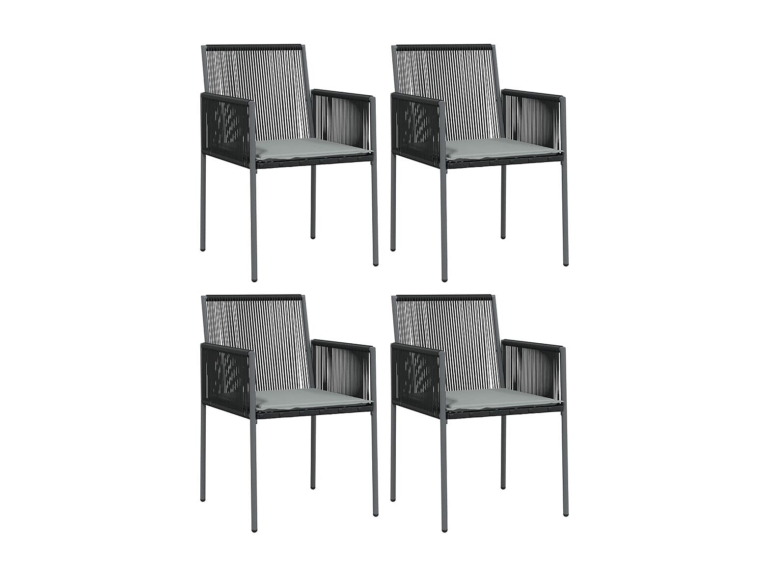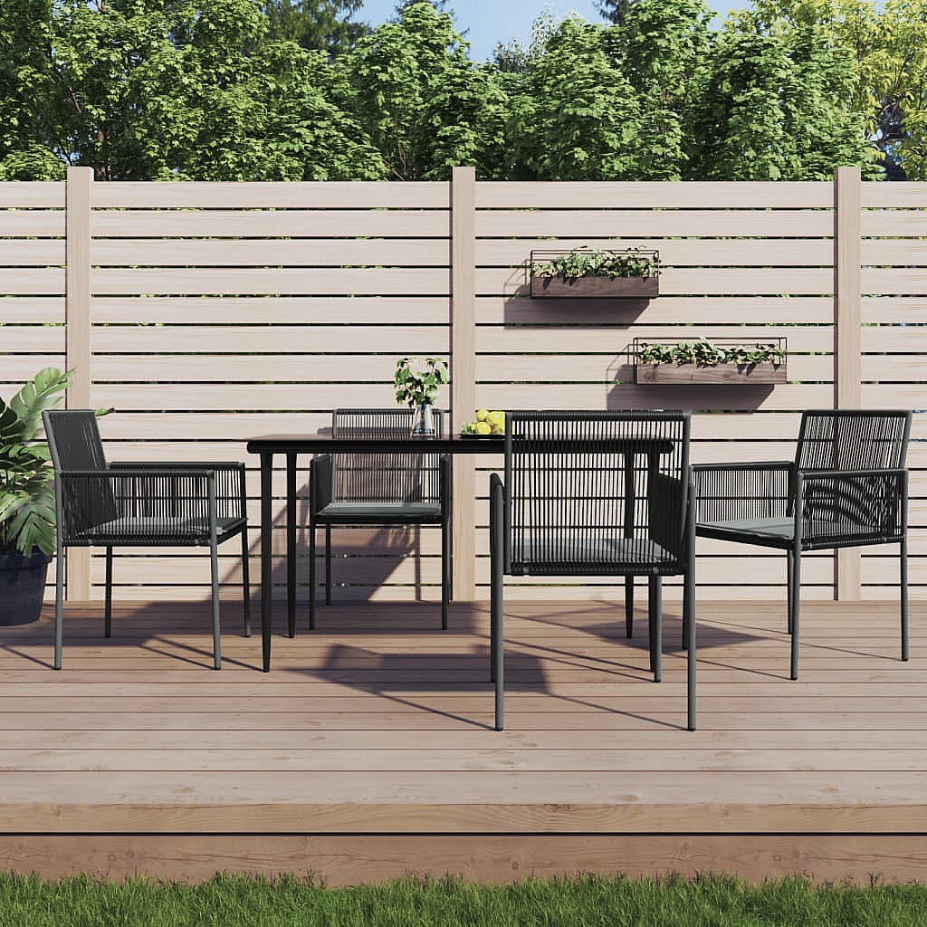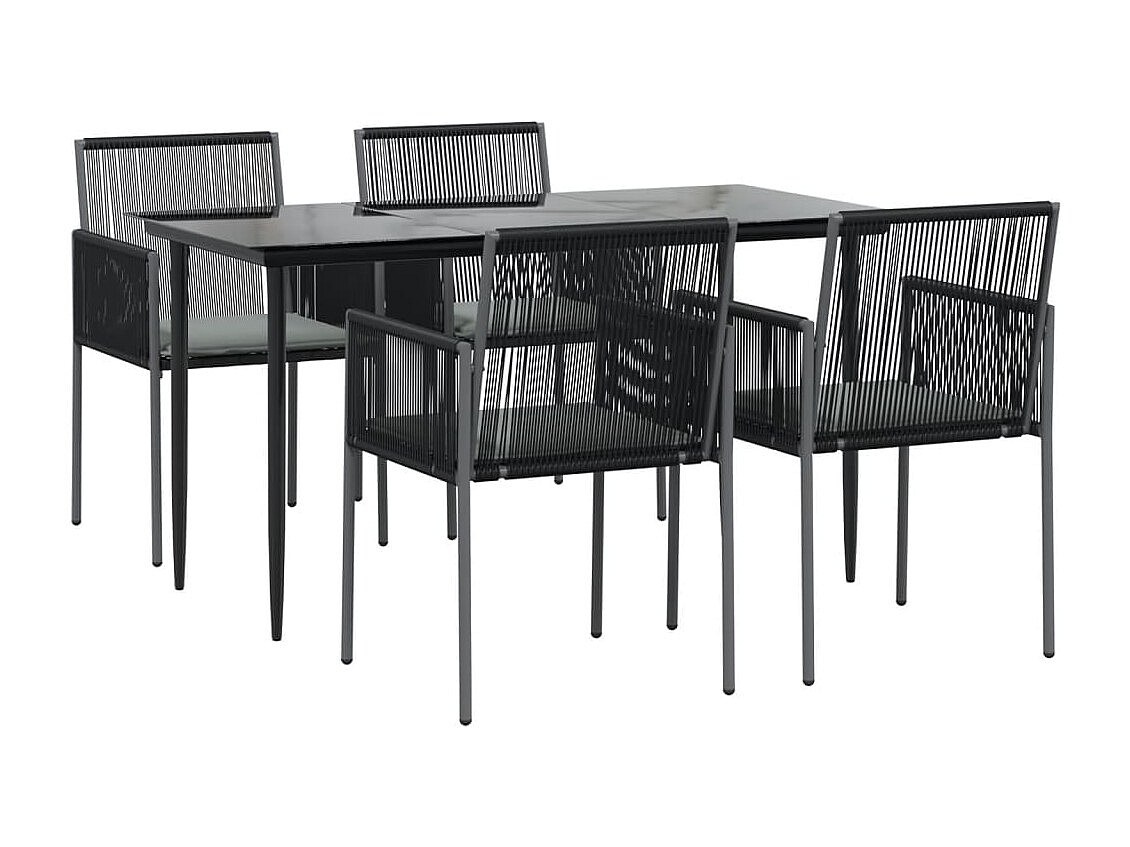 Giovanni Carlo Ensemble à manger de jardin coussins 5pcs noir rotin et acier