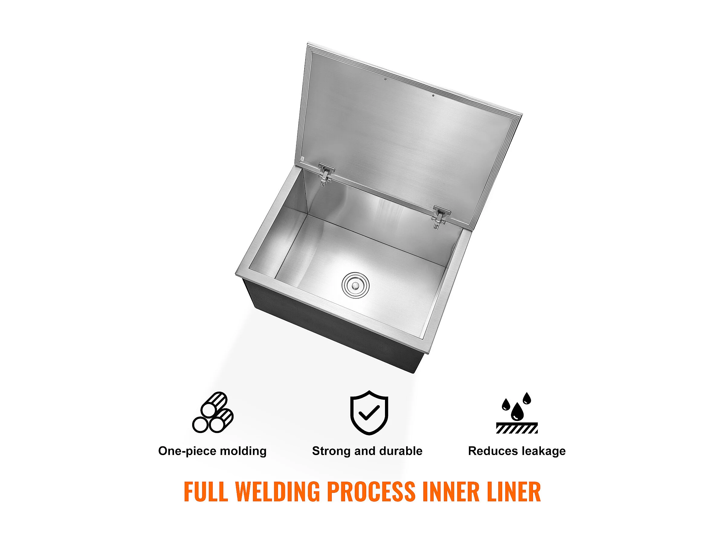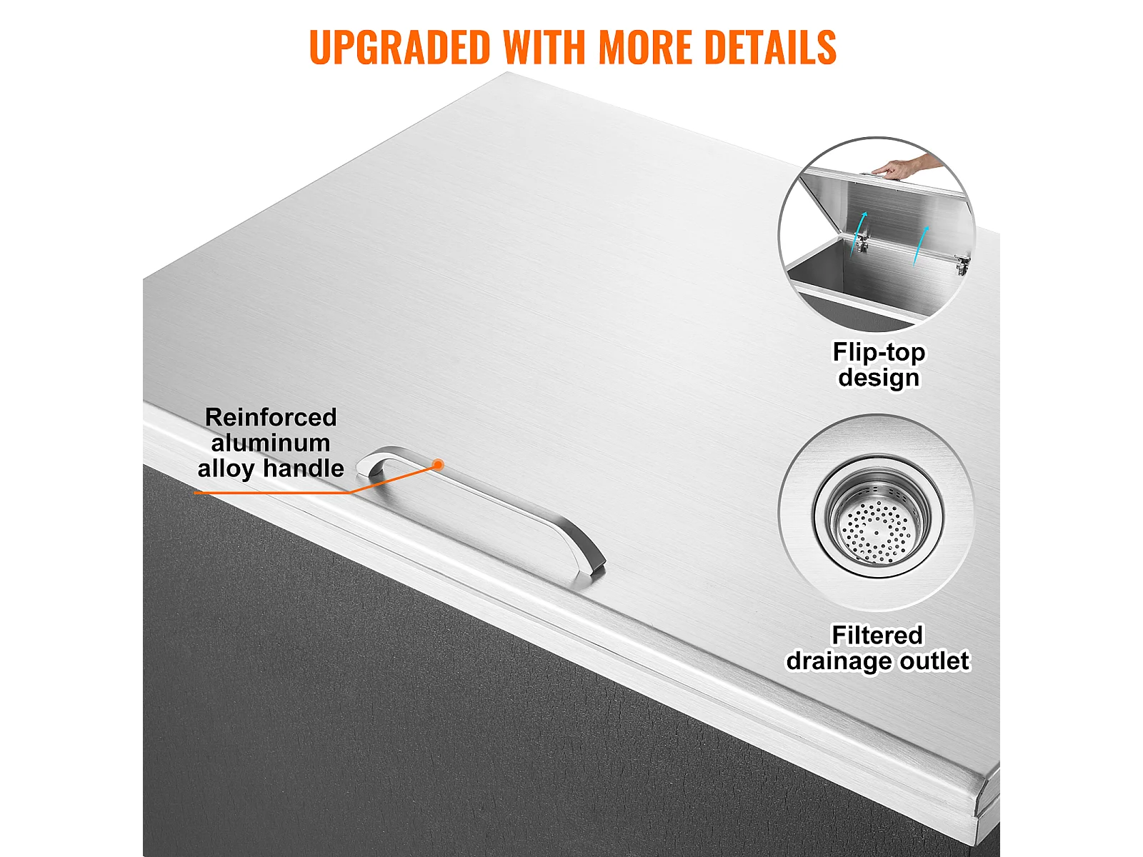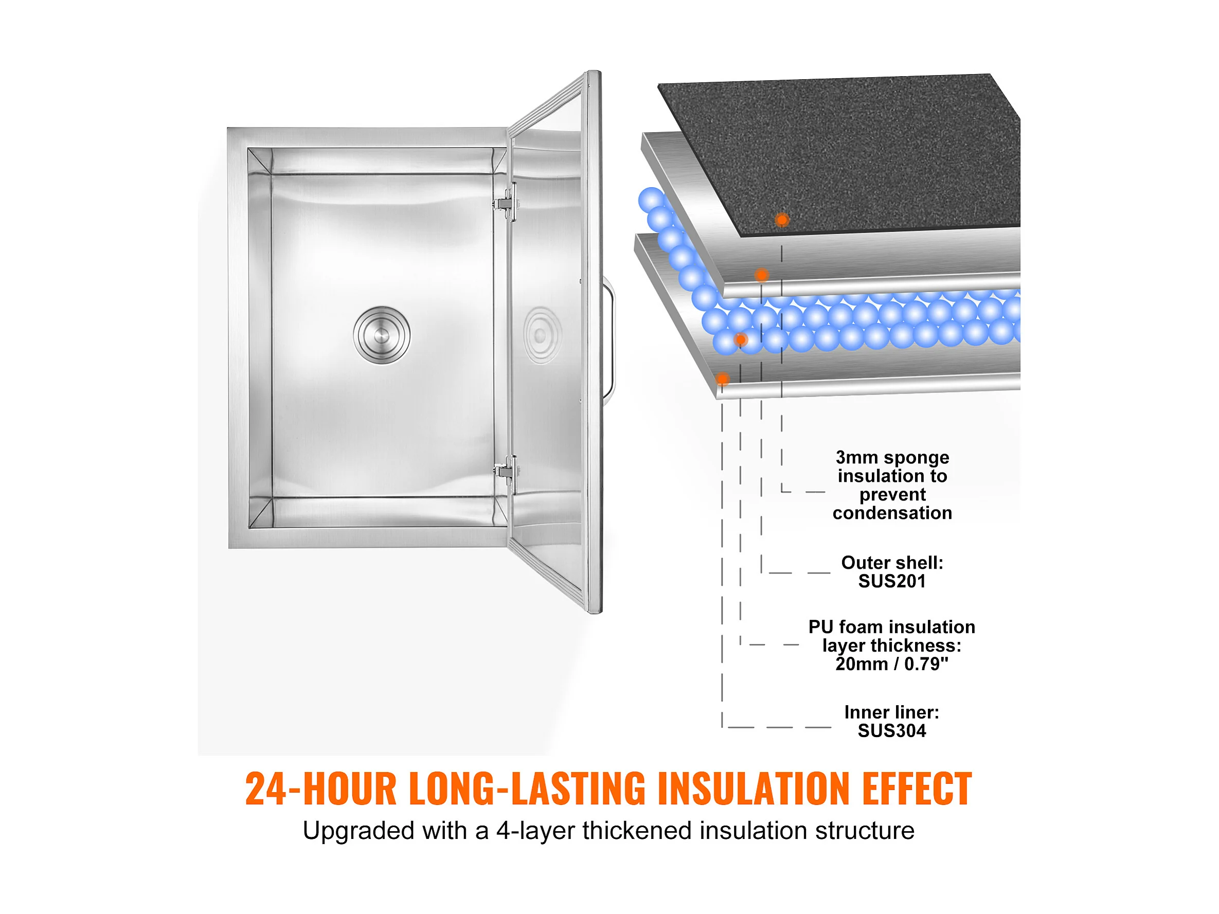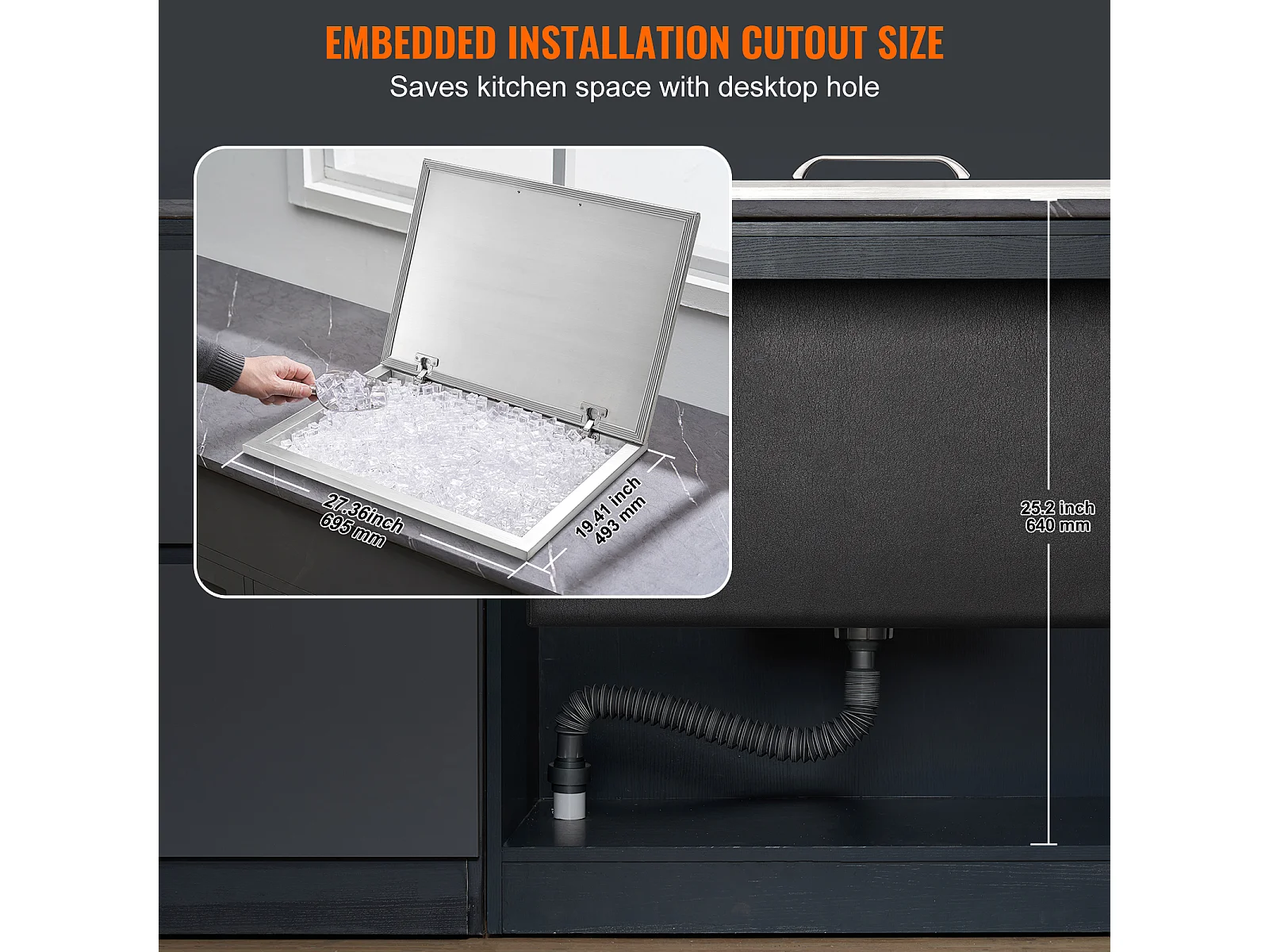Glacière à Encastrer SucceBuy, 71 x 51 x43 cm, Acier Inoxydable avec Couvercle, Bar à Glace de Cuisine Extérieure