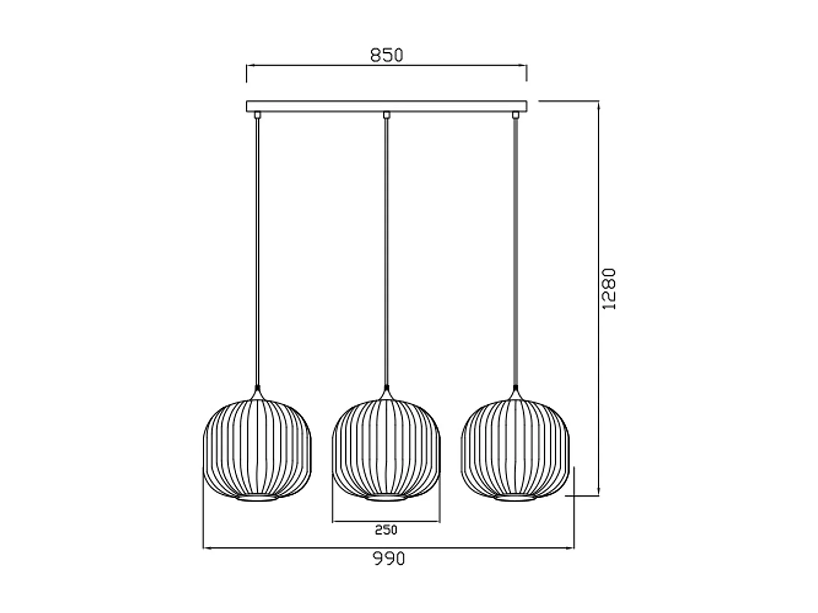 Suspension en métal et verre 3 abat-jours - L. 99 x H. 128 cm - Noir et blanc - GLENORA