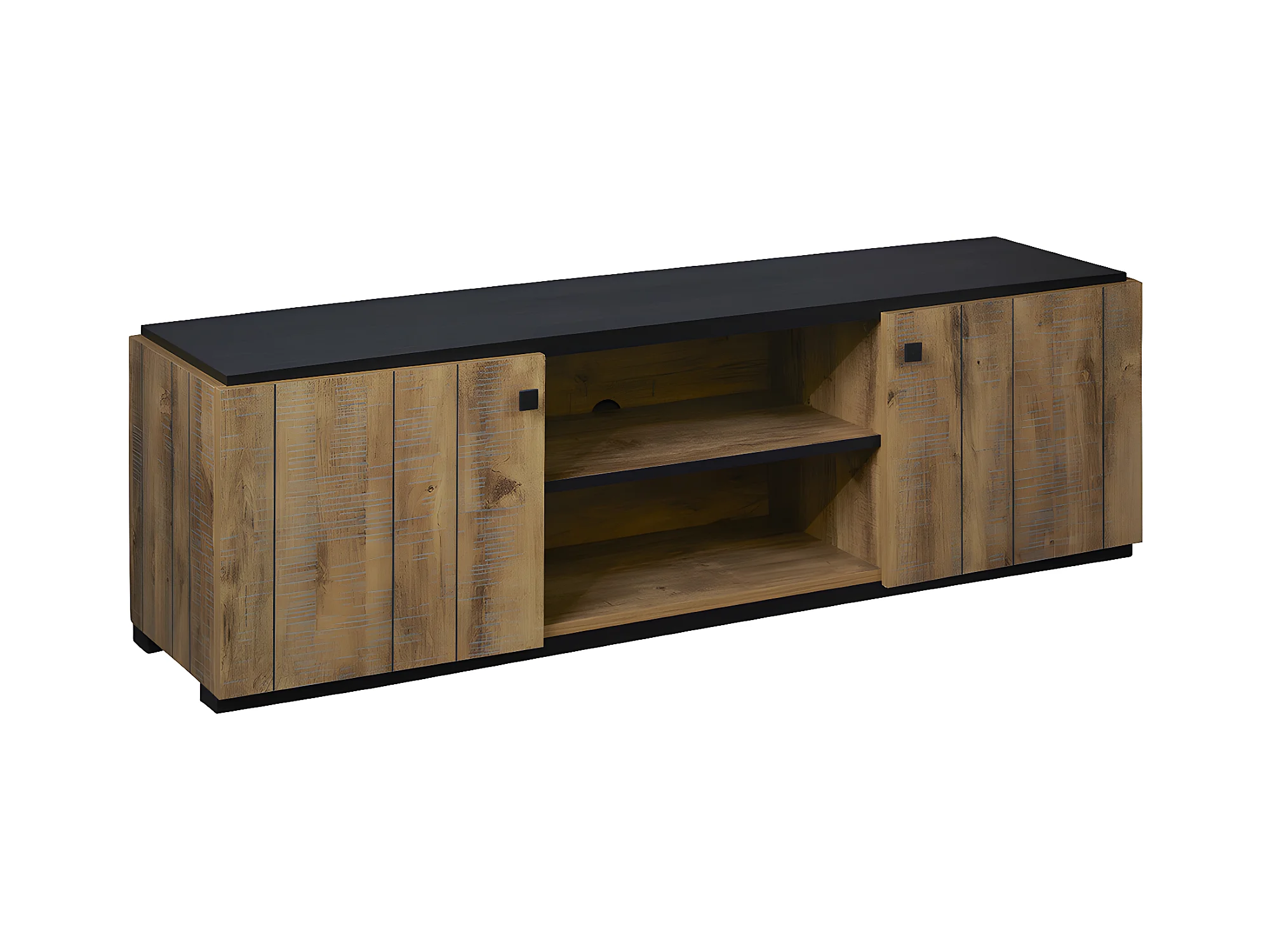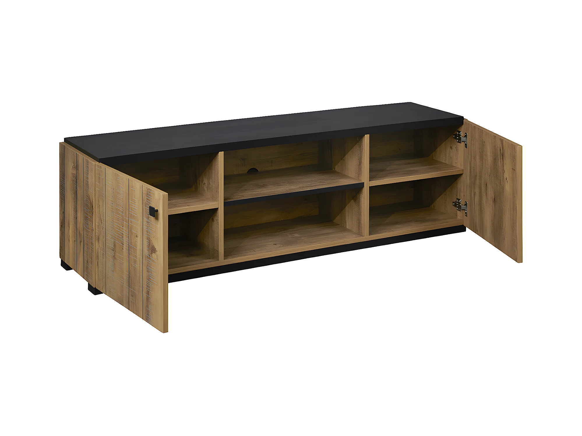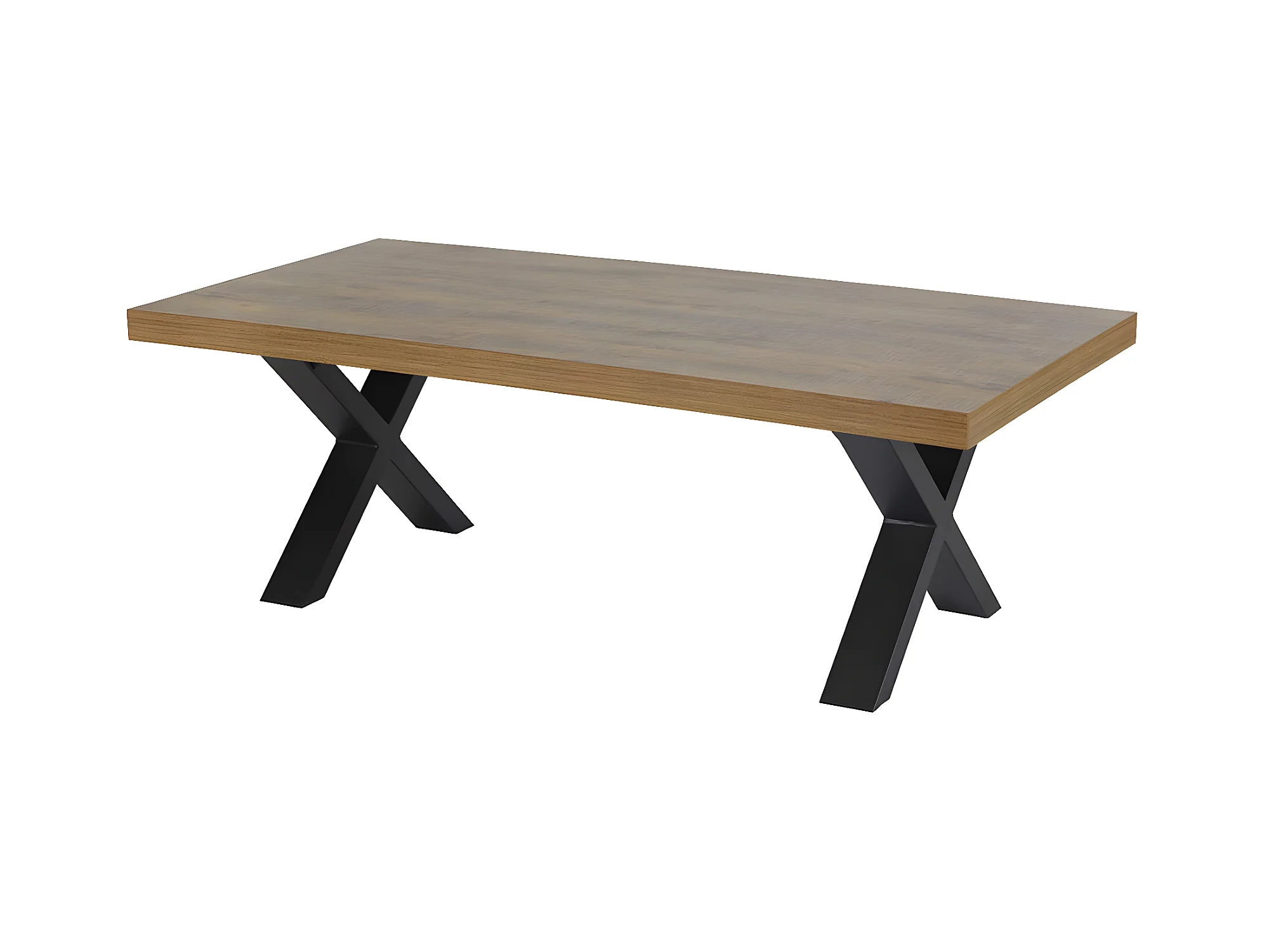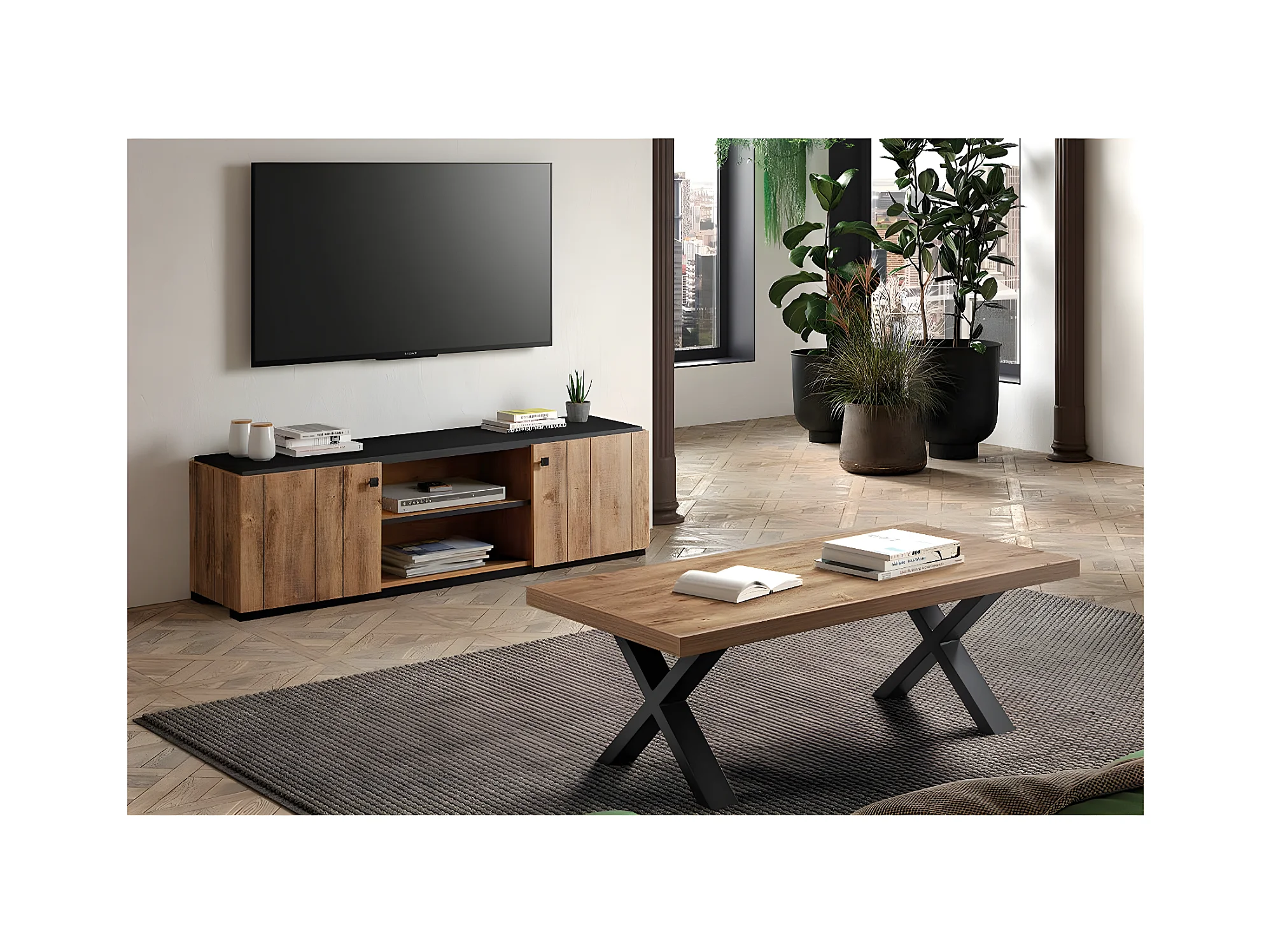 GLESS - Ensemble Salon Meuble TV et Table Basse Aspect Bois Finition Denver Piètement X Métal Noir