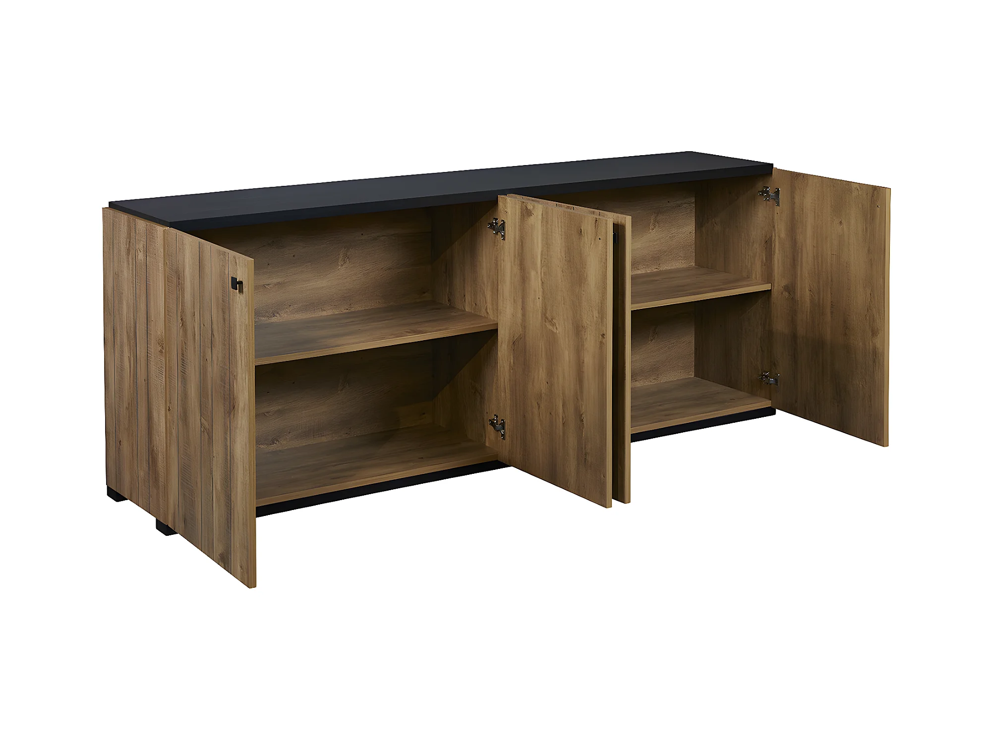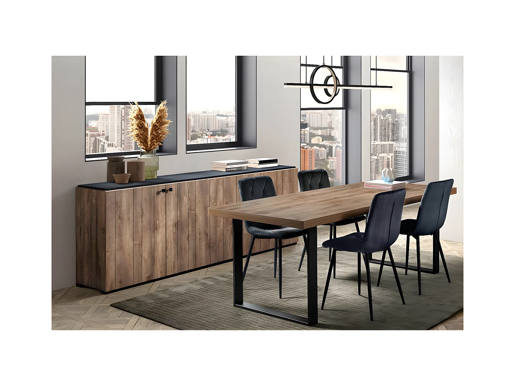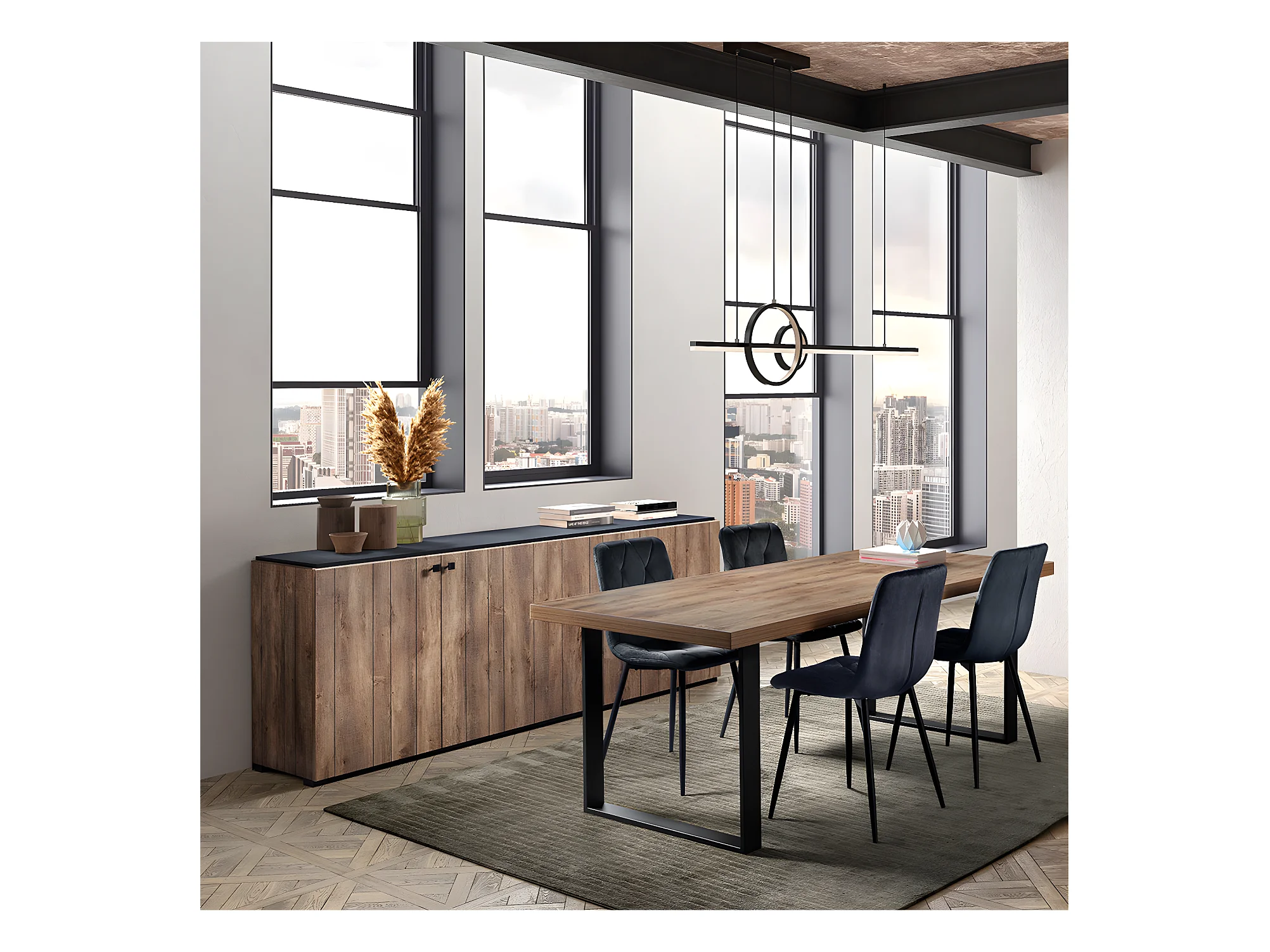 GLESS - Ensemble Séjour Buffet et Table 200cm Aspect Bois Finition Denver Piètement U Métal Noir