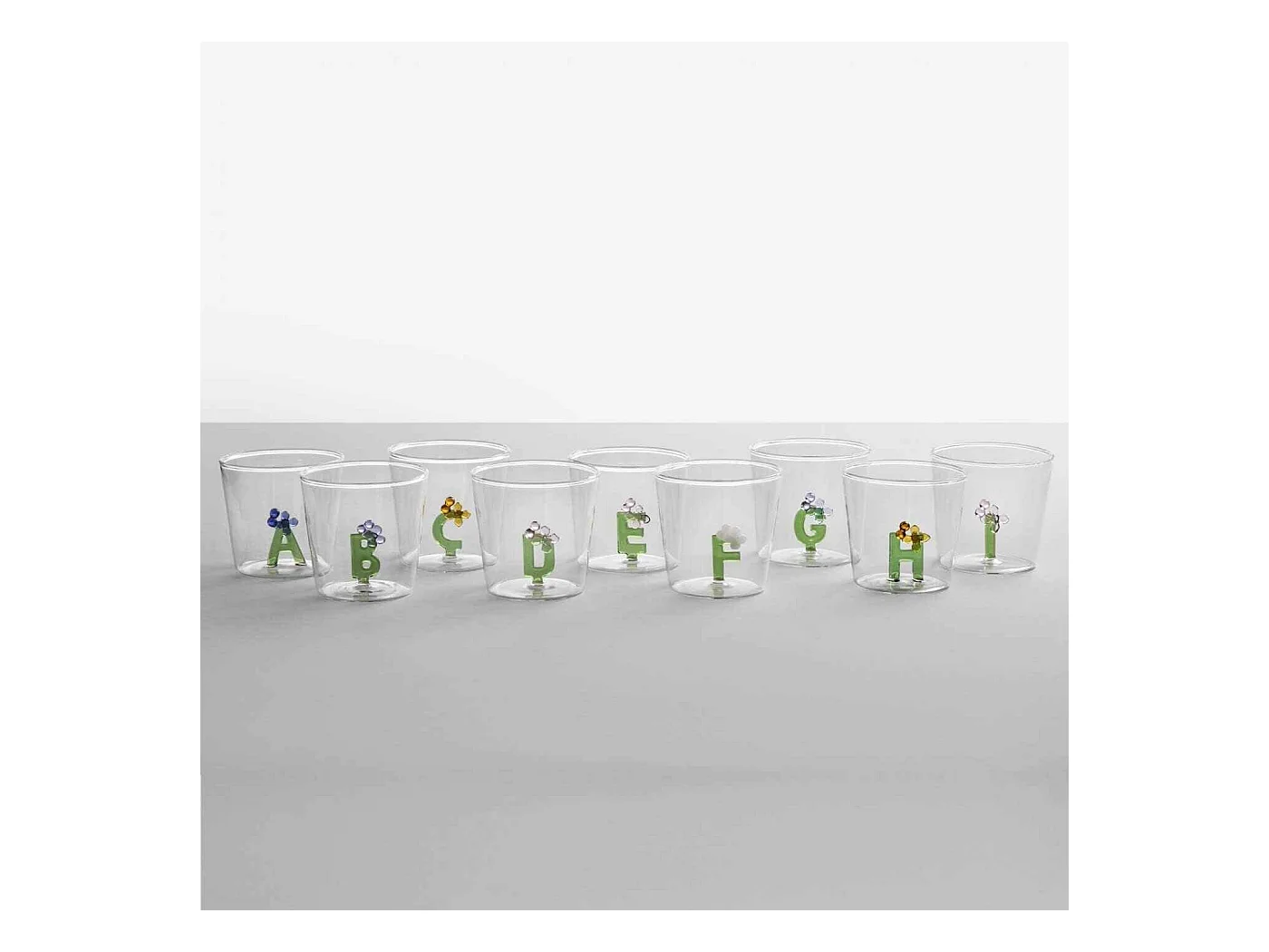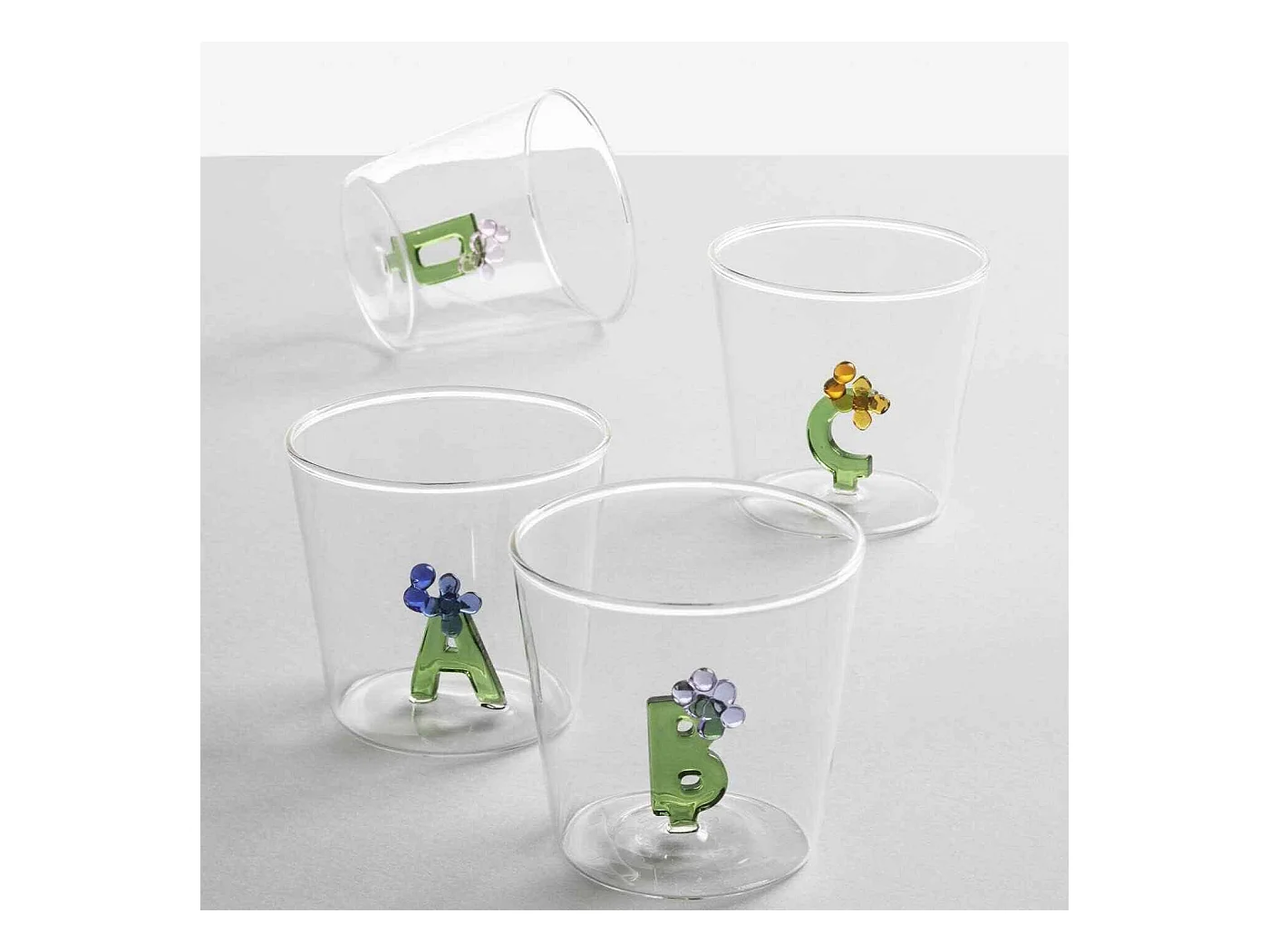 Gobelet en verre borosilicate, S, transparent 350 ml, Greenwood Alfabeto Fiorito