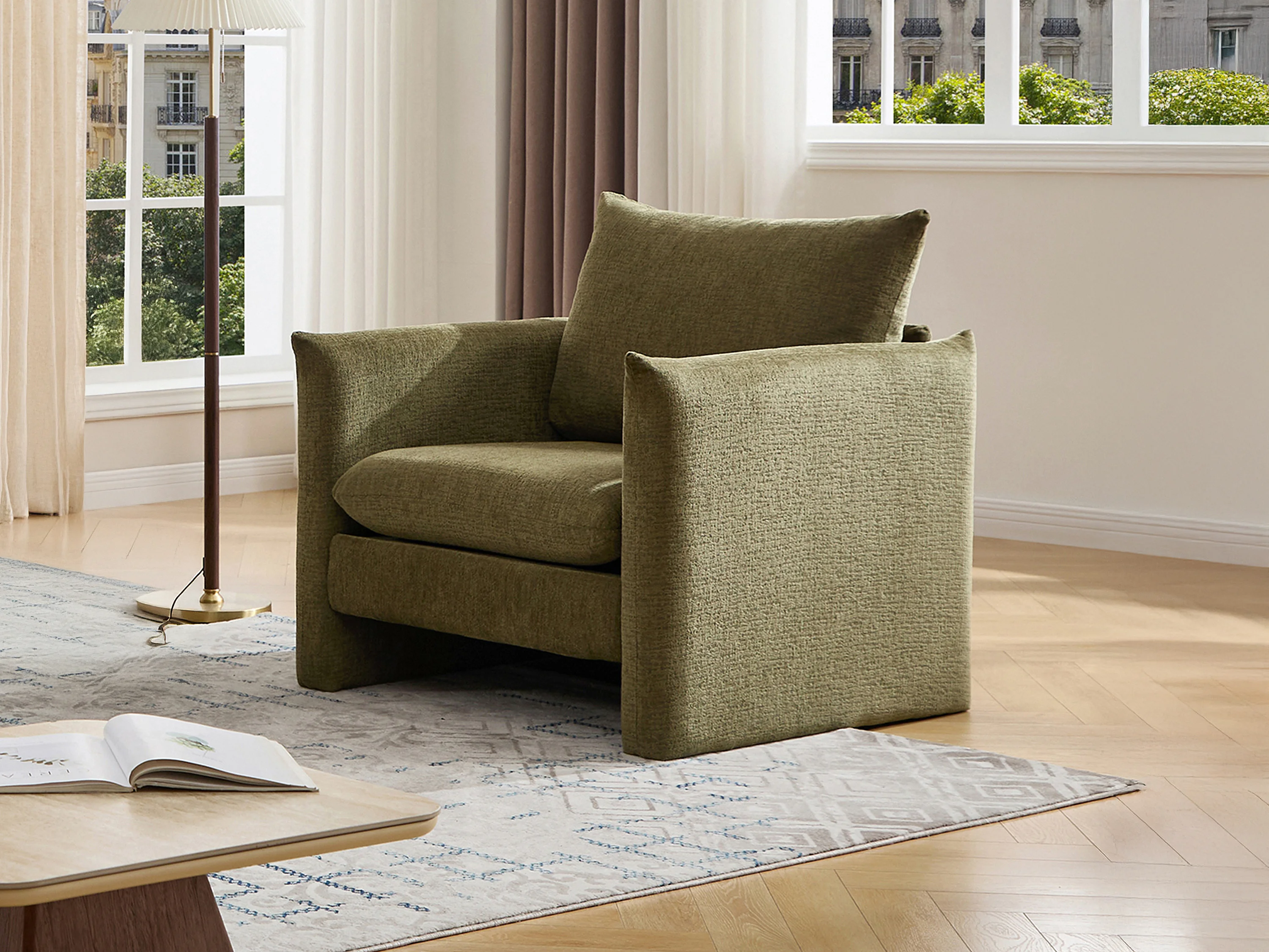Fauteuil en tissu chenille vert GORAZI