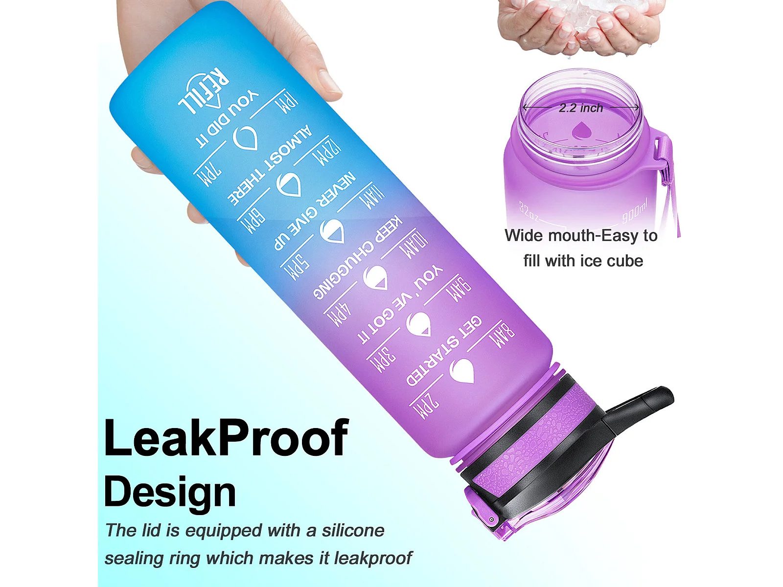 Gourde de Sport Bouteille d'eau 1000ml - ABS 100% sans BPA - violet et bleu