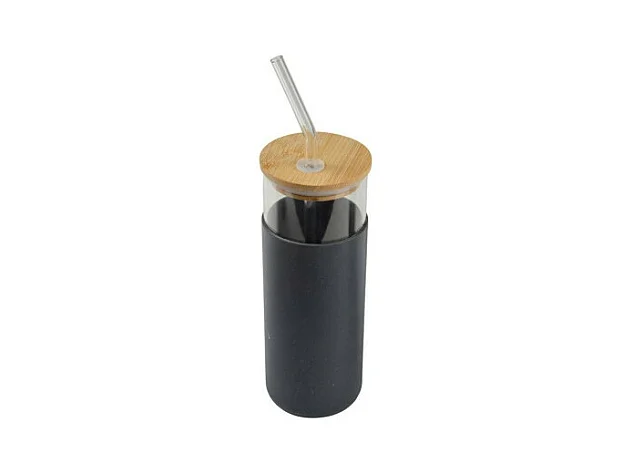 Gourde & Paille en Verre "Silicone" 0,5L Anthracite