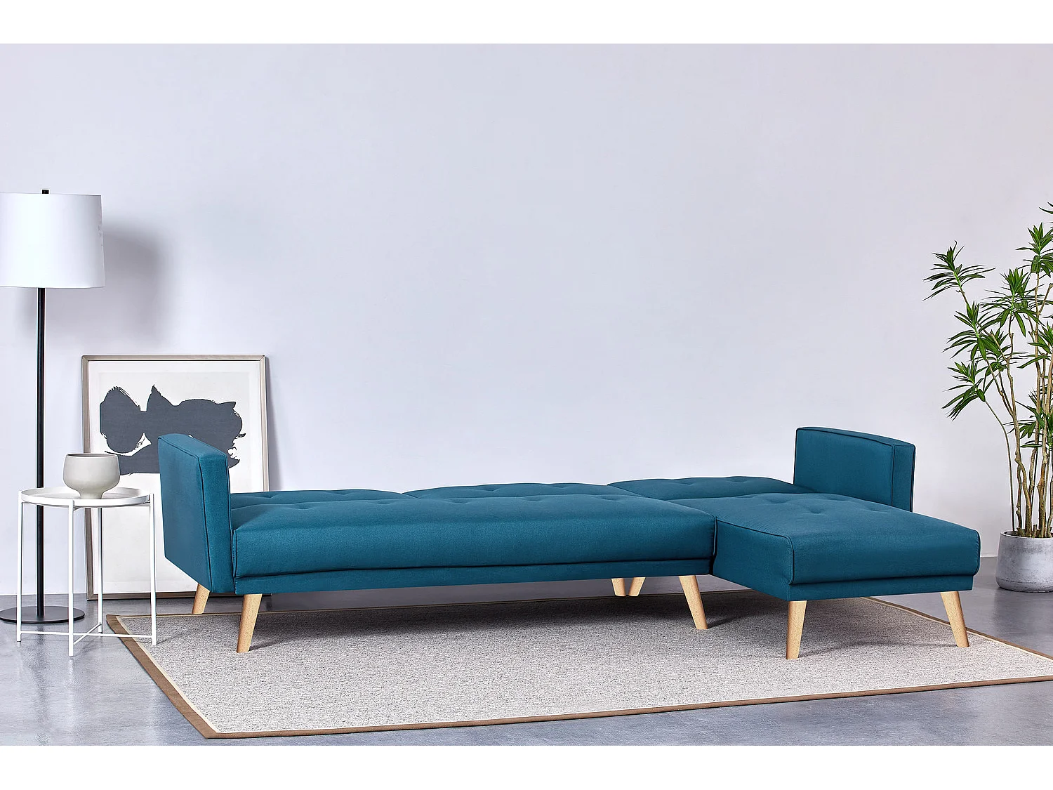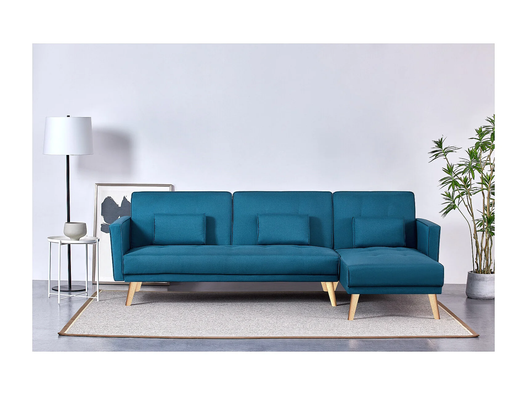 Canapé d'angle réversible et convertible 4 places en tissu bleu canard GRACE
