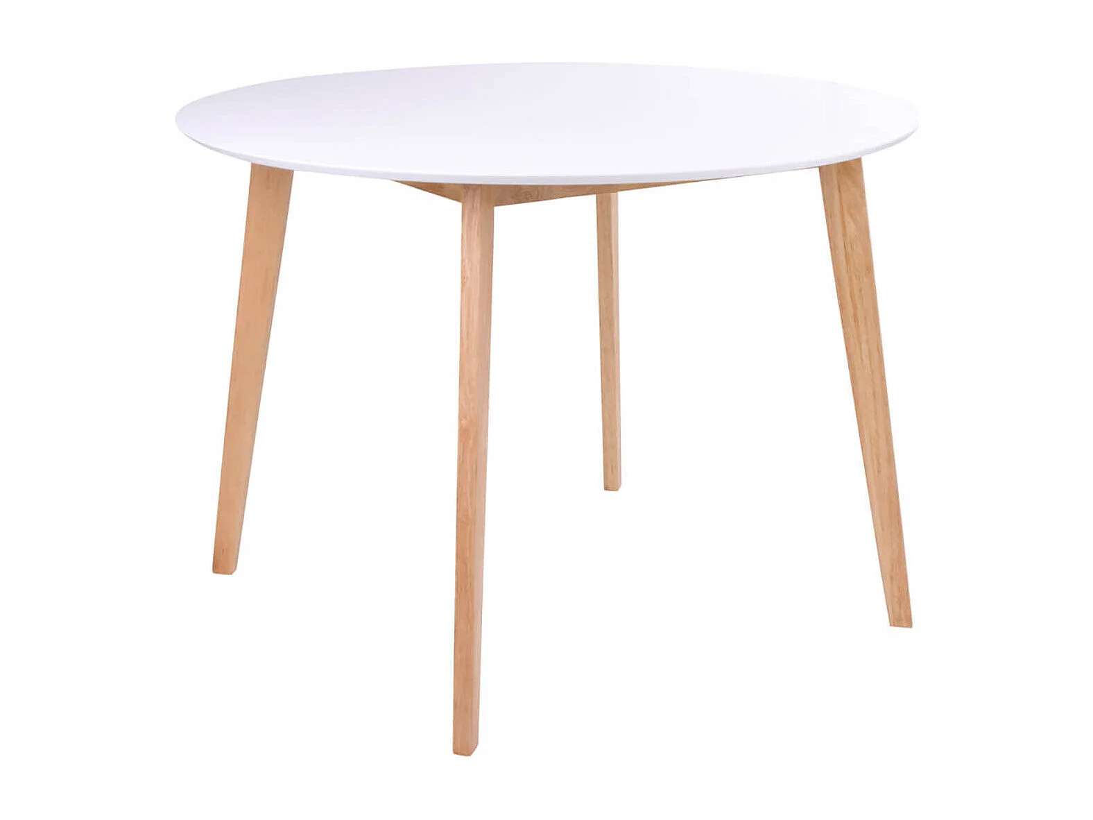 GRAM - Ensemble Table Ronde Naturelle et Blanche + 4 Chaises Noires