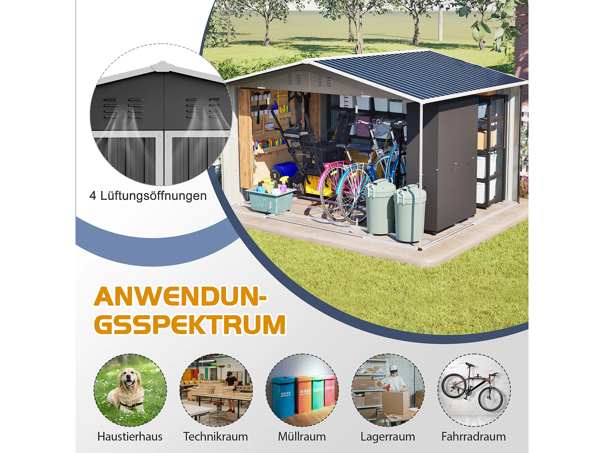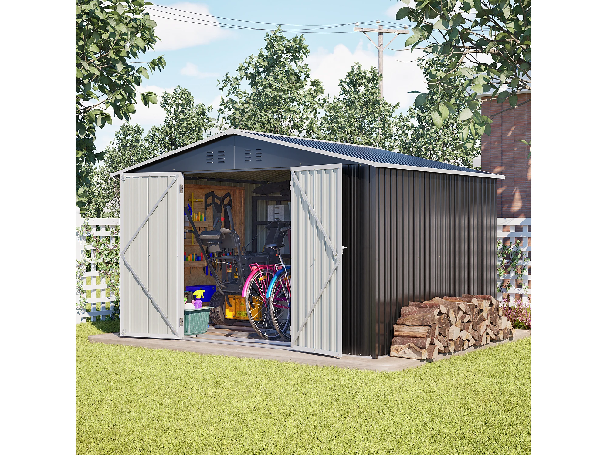Grand abri de jardin métallique 300 x 252 x 191 cm - Noir