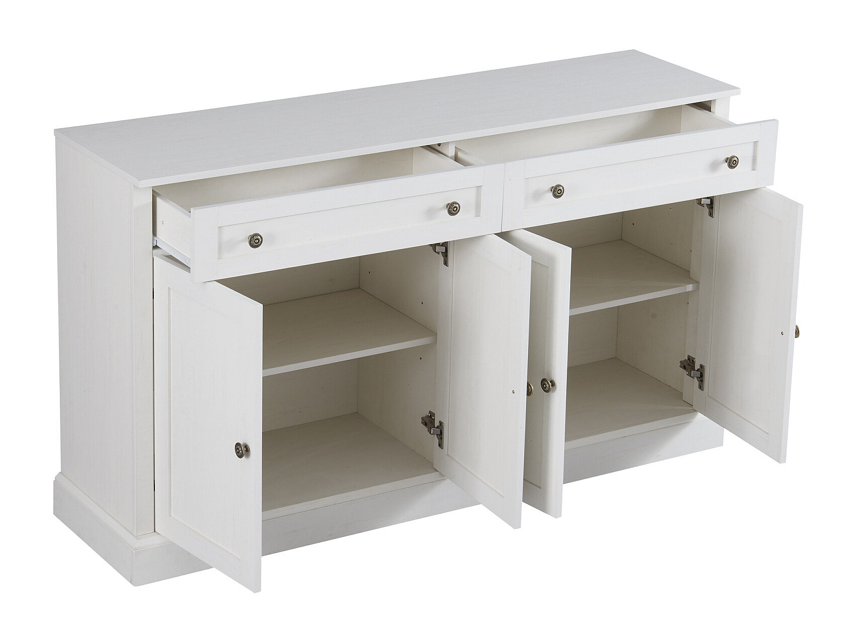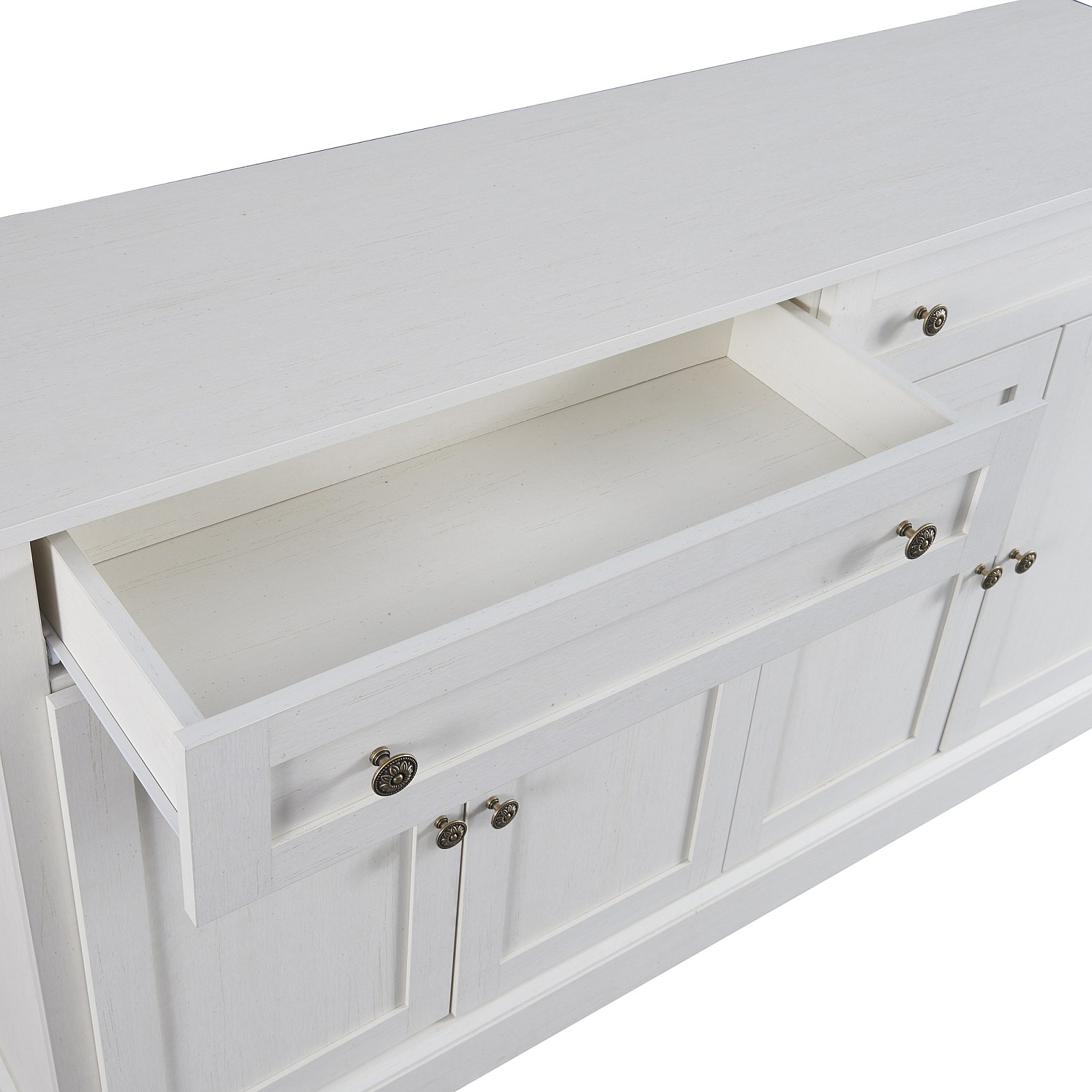 Grand buffet 150 x 40 x 86 cm – 4 portes, panneaux de particules,2 tiroirs – Buffet moderne pour salle à manger et salon – Blanc antique