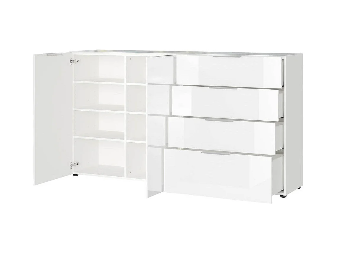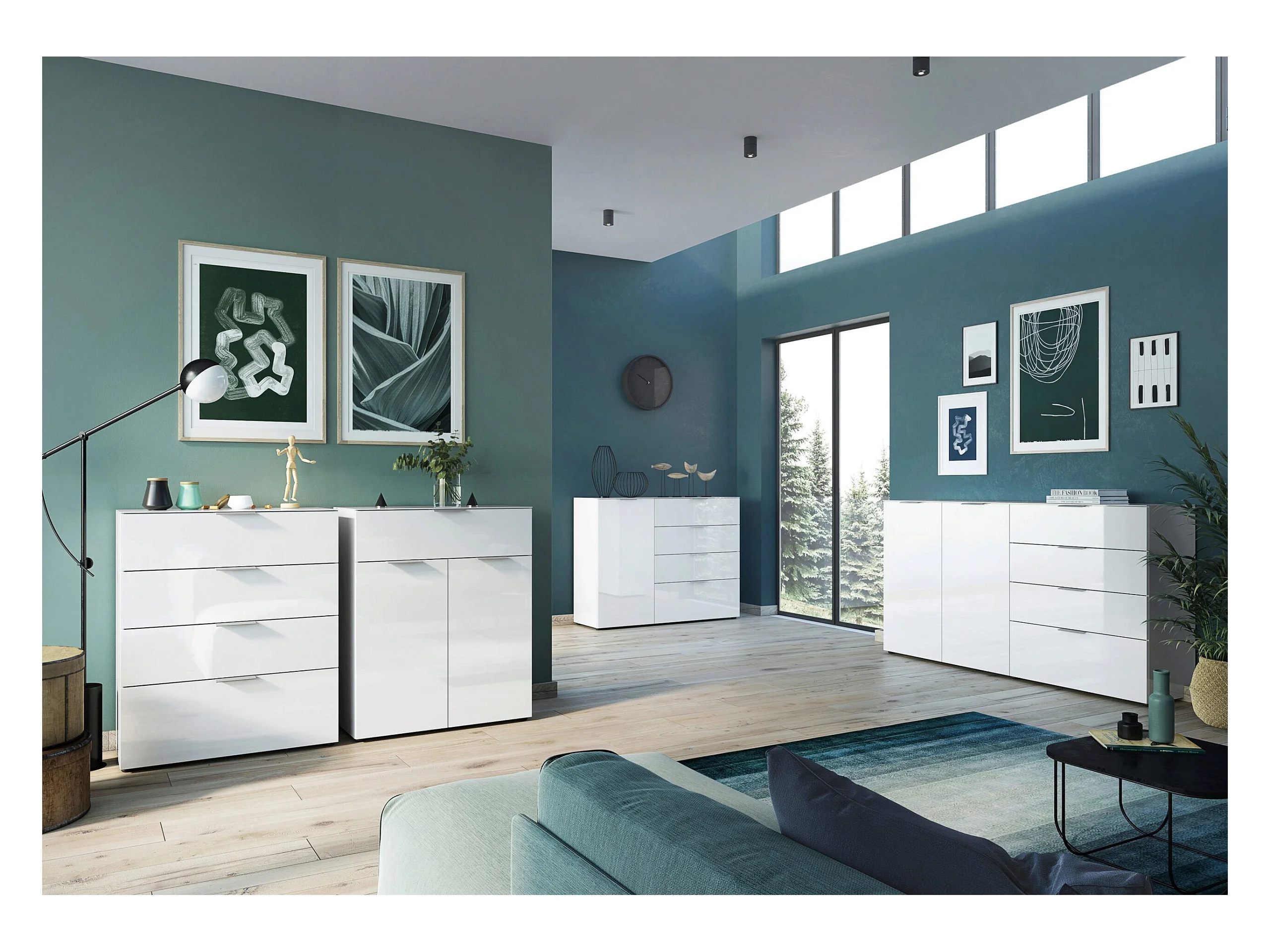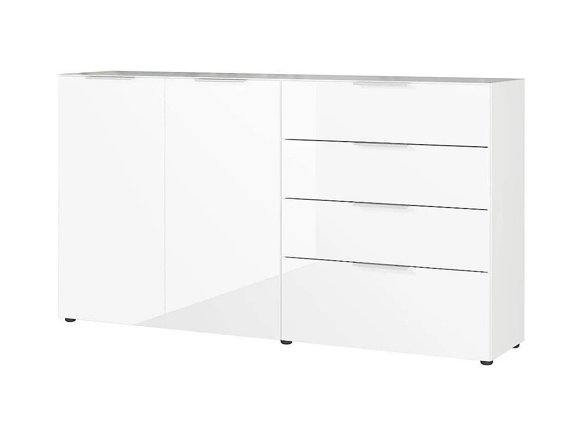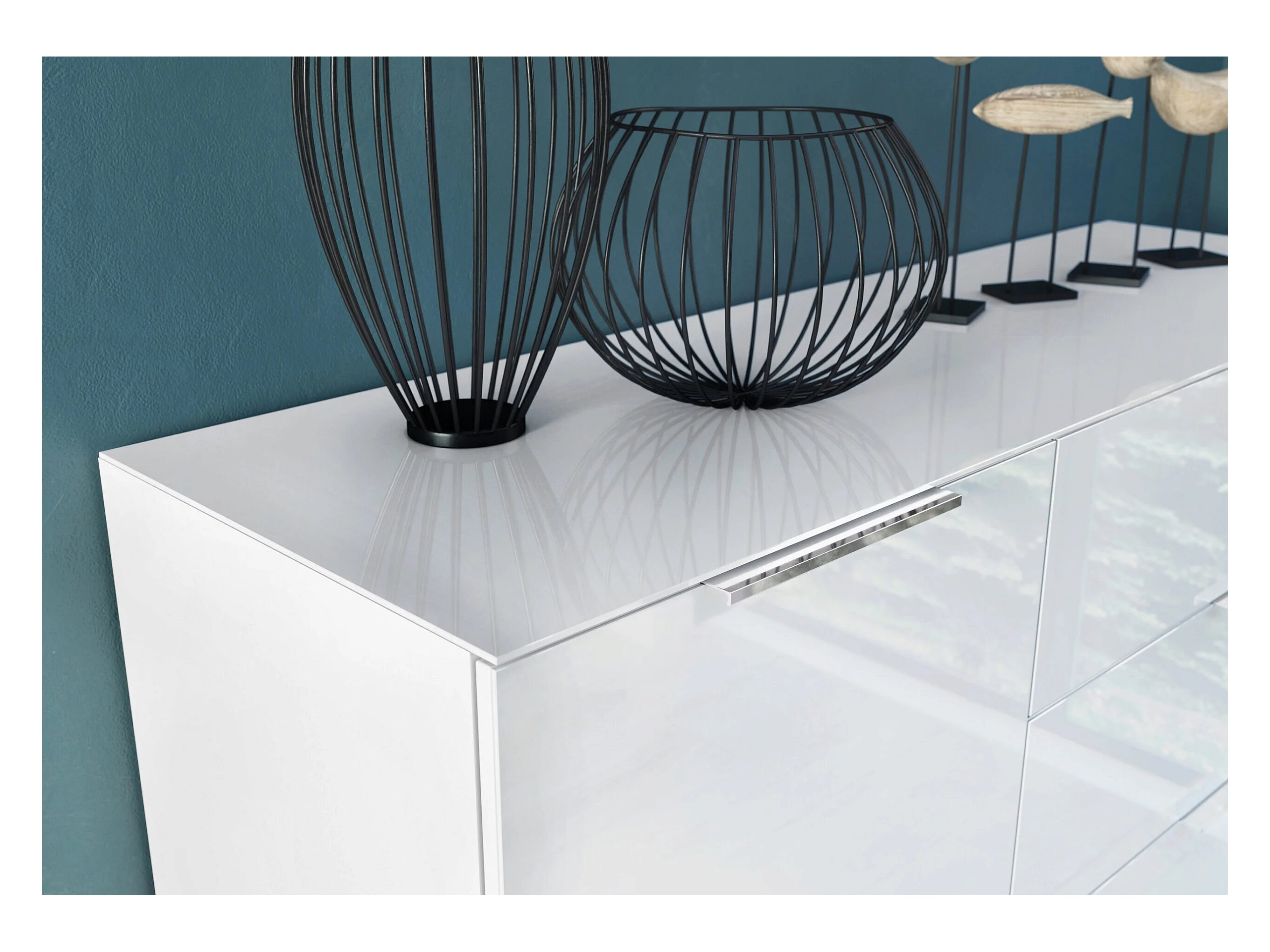 Grand buffet noir 2 portes 4 tiroirs façades en verre GLADYS - Blanc