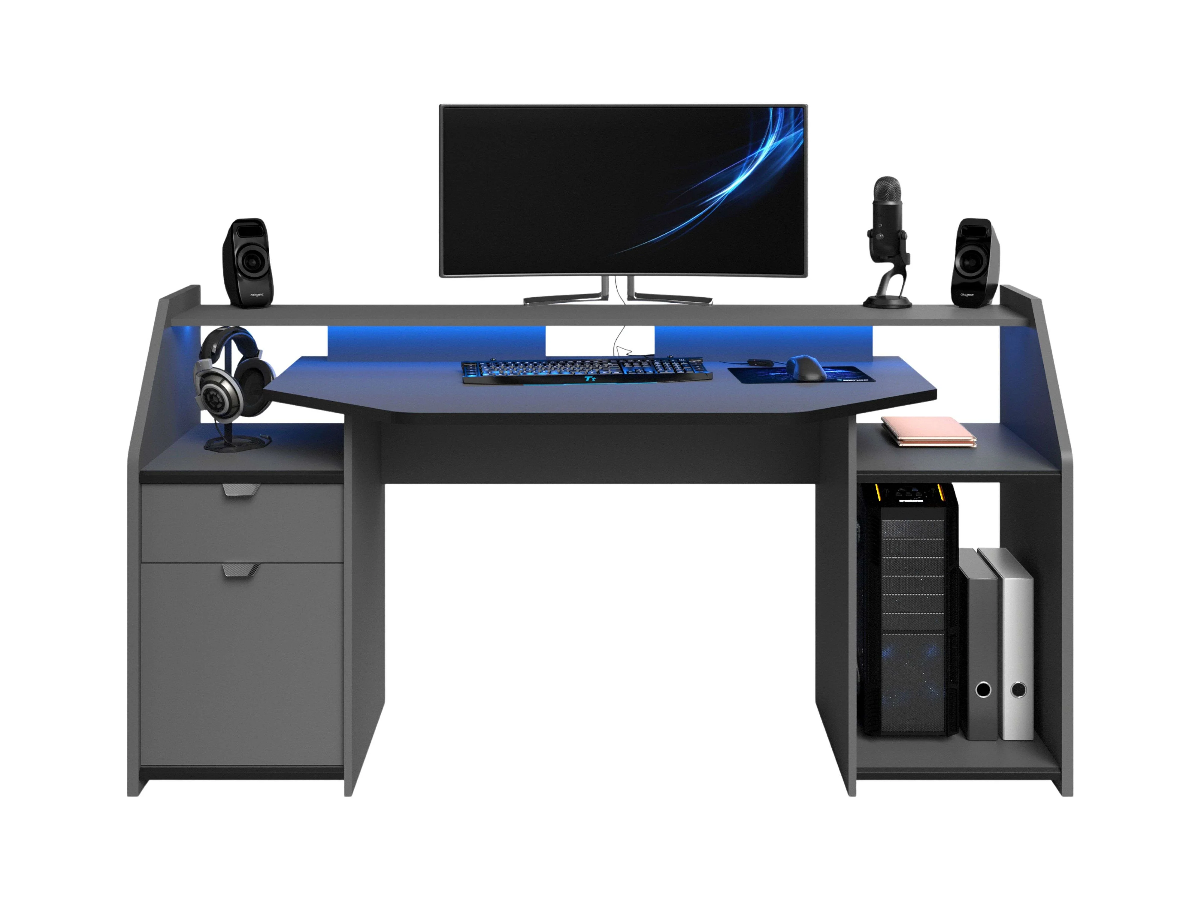 Grand bureau de jeu avec tiroir et armoire Gris LED 98 x 180 x 67 cm