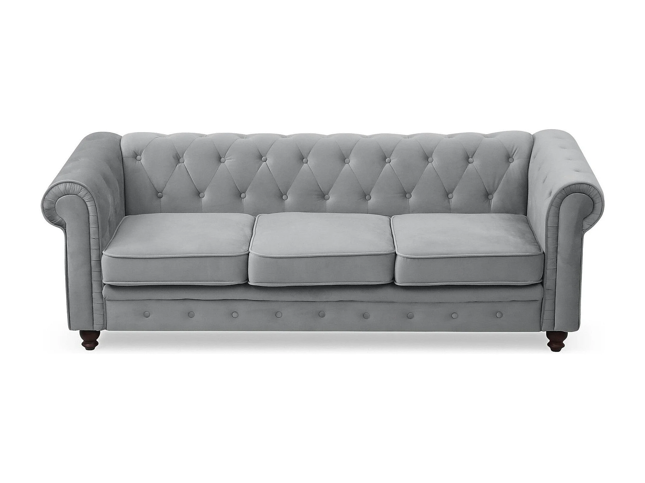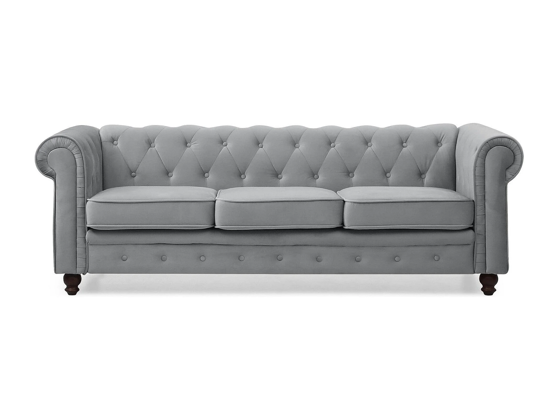 Canapé 3 Places Velours "Chesterfield" 209cm Argent