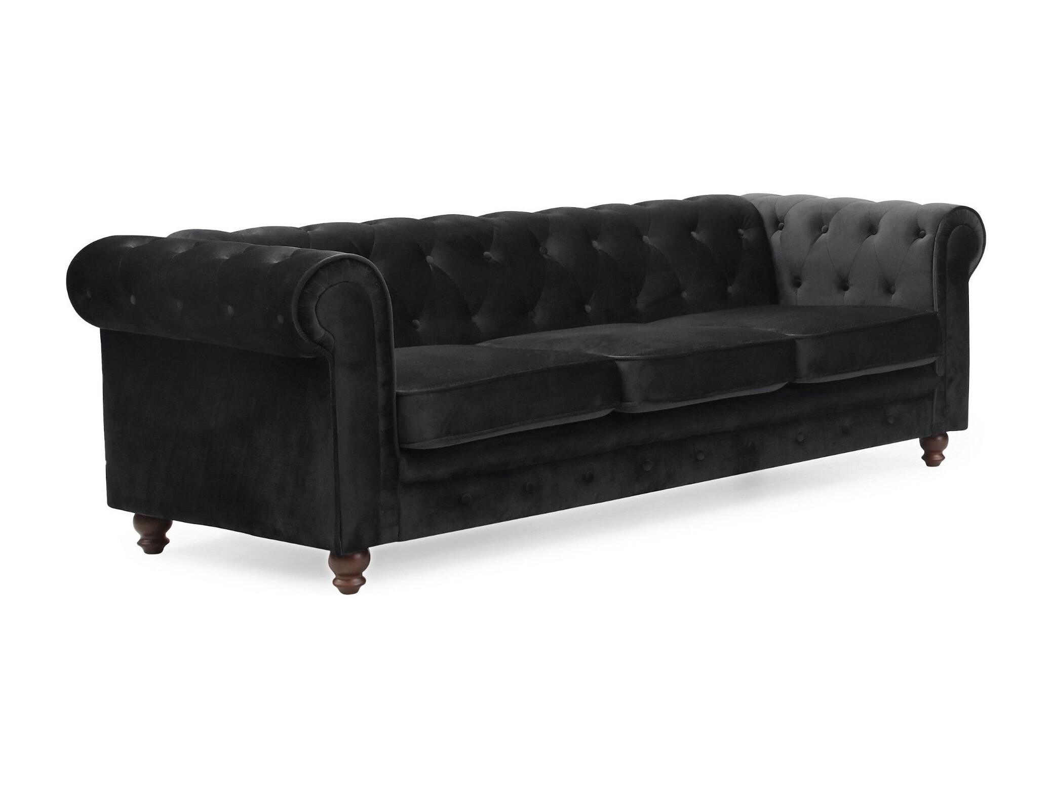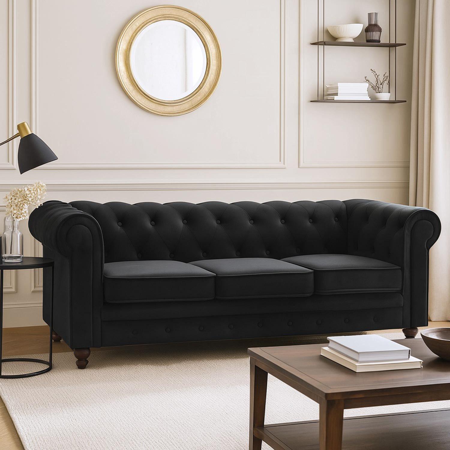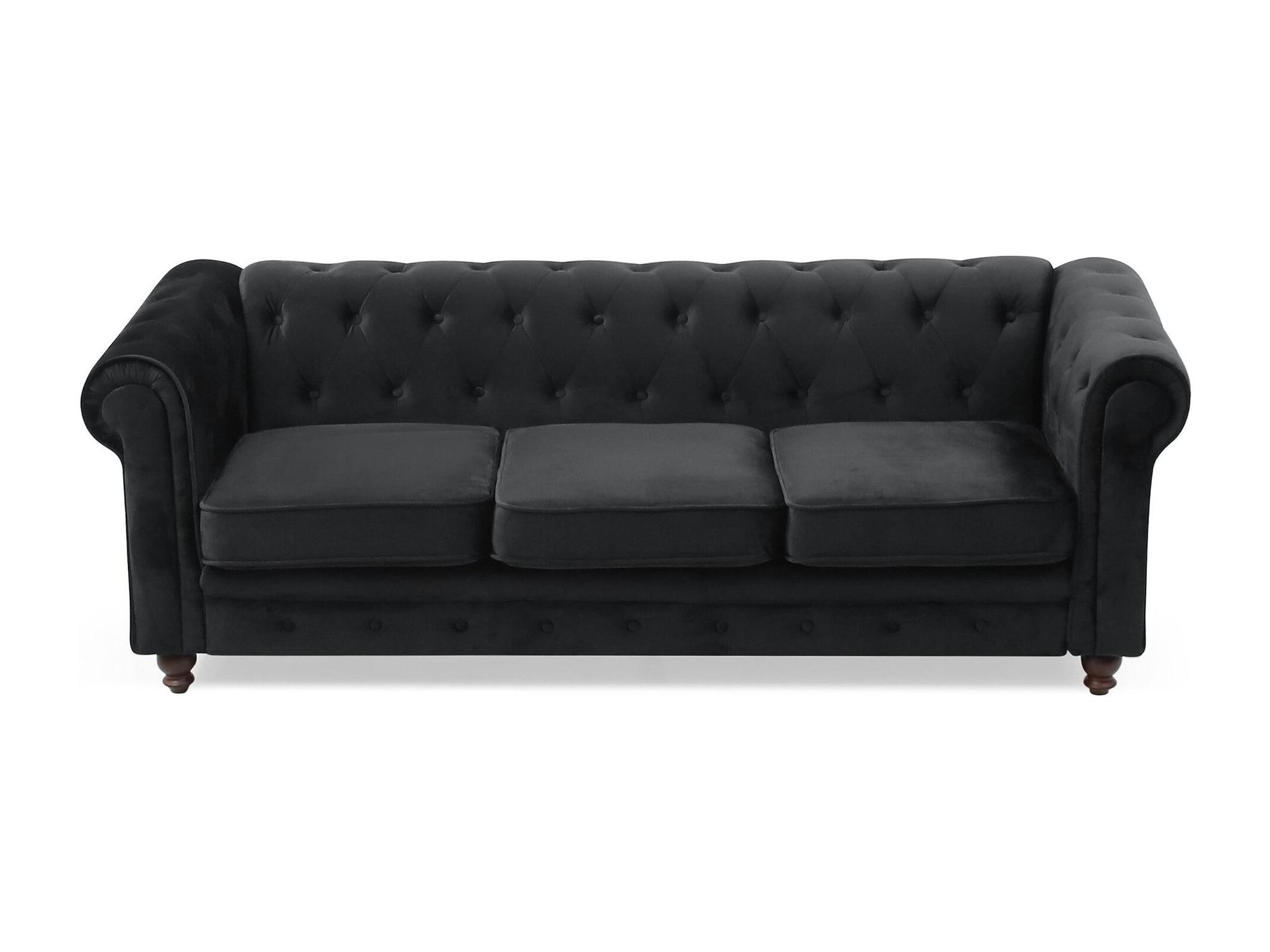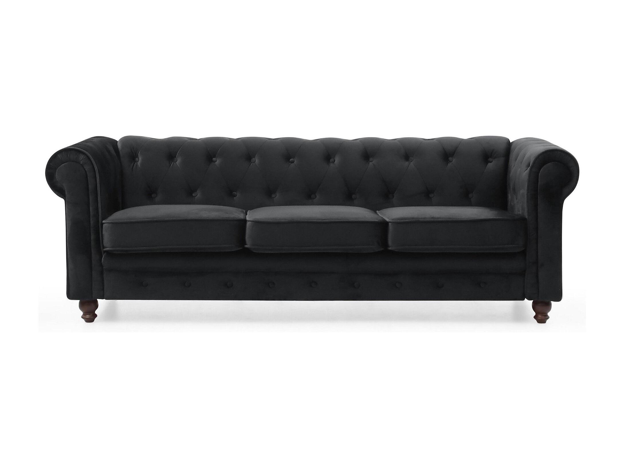 Canapé 3 Places Velours "Chesterfield" 209cm Noir
