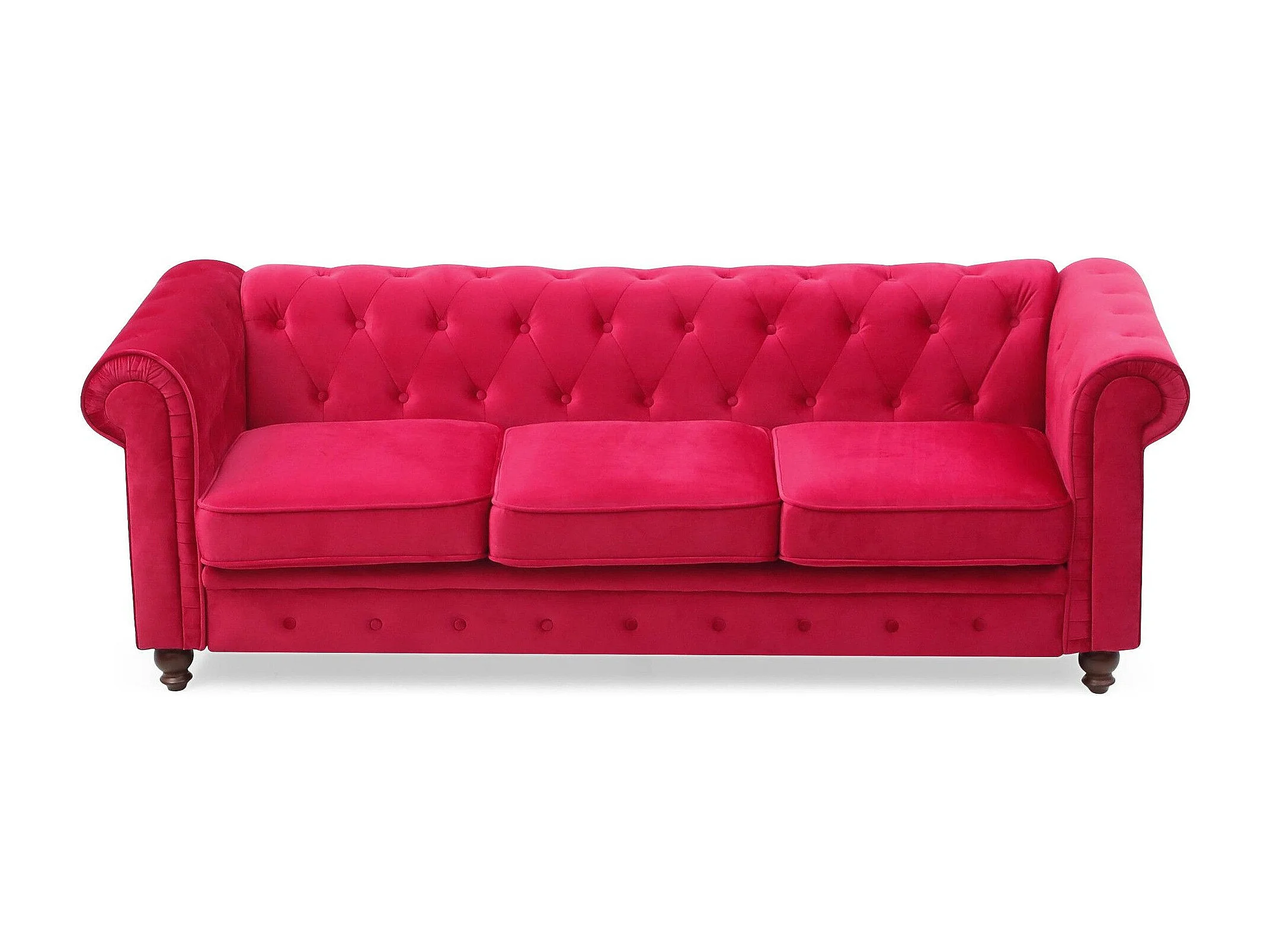 Canapé 3 Places Velours "Chesterfield" 209cm Rouge