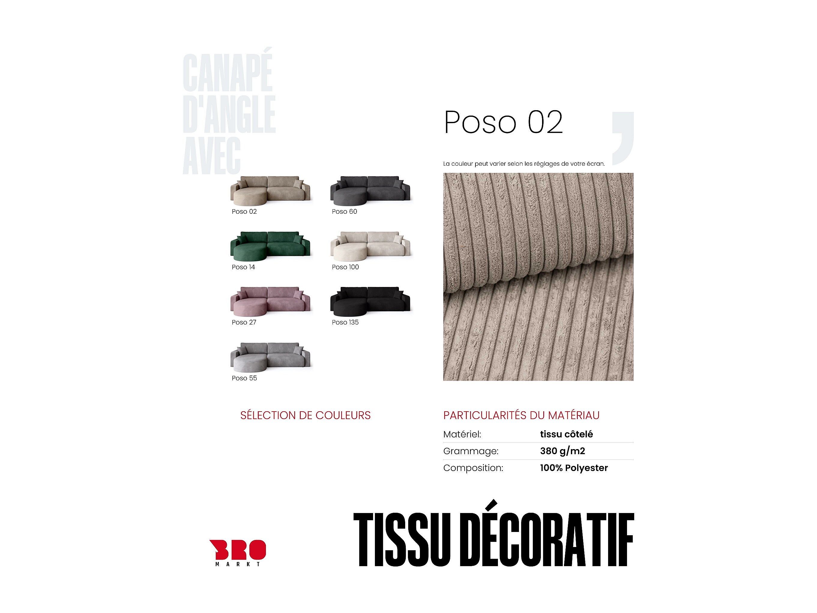 • Revêtement en velours côtelé (Poso) – tendance, doux et chaleureux au toucher