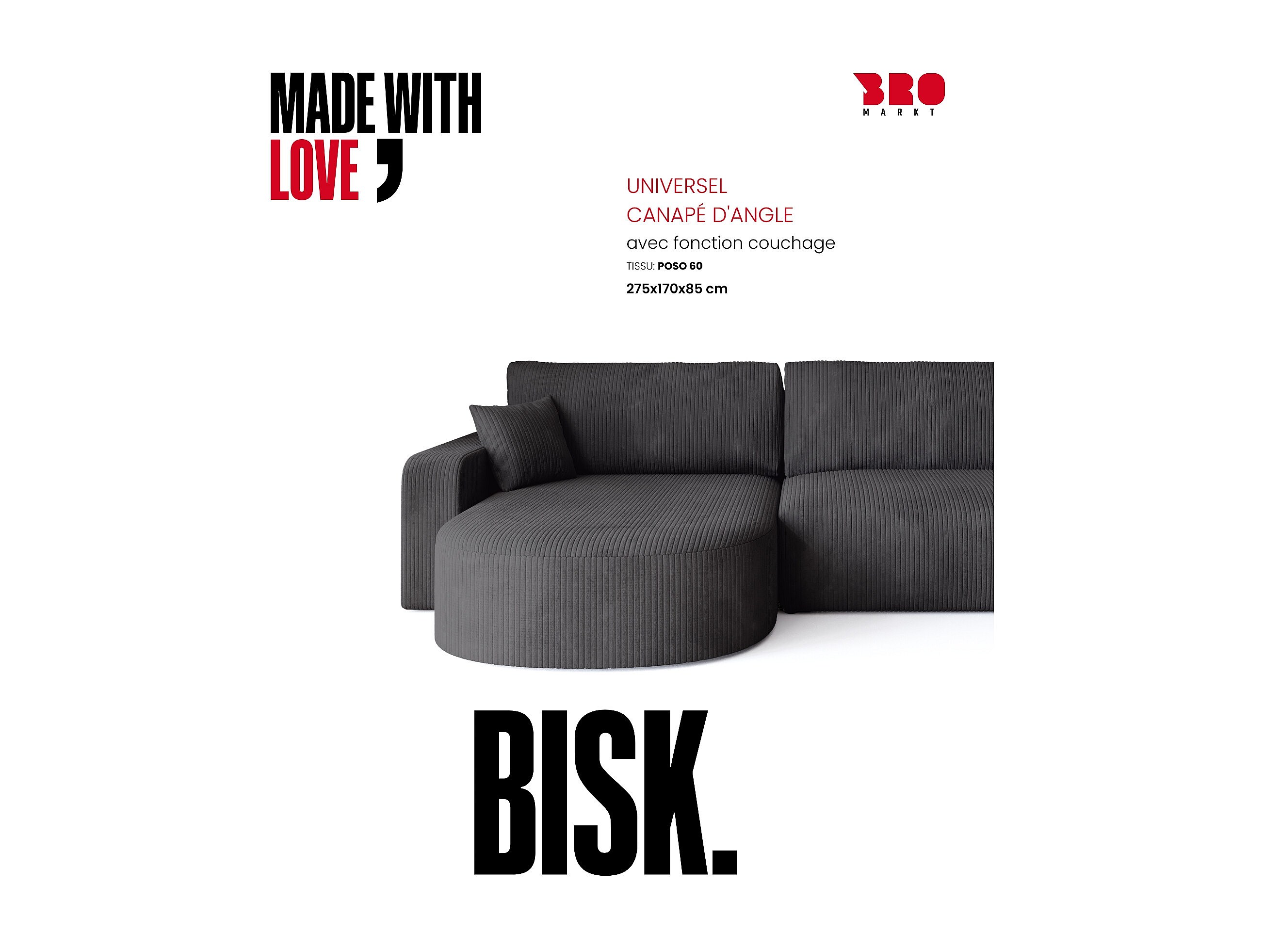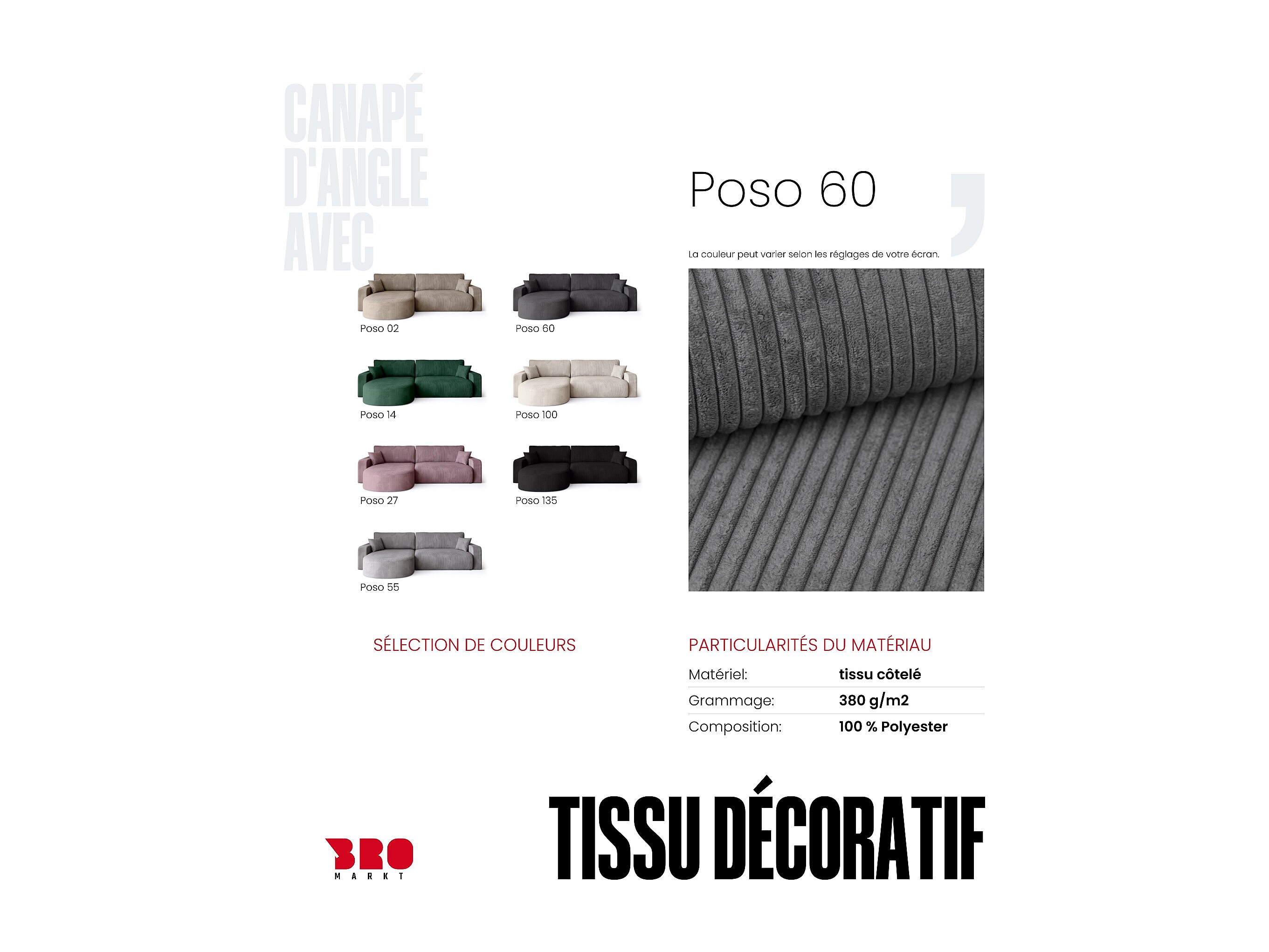 • Revêtement en velours côtelé (Poso) – tendance, doux et chaleureux au toucher