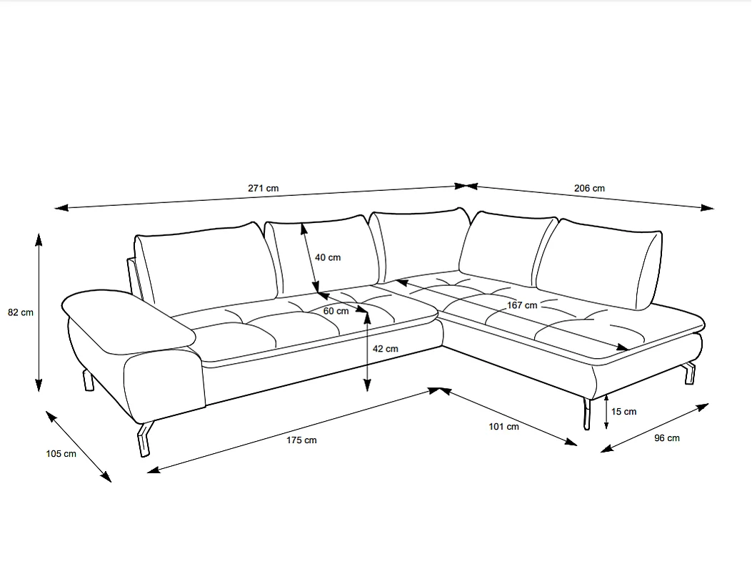 Grand canapé d'angle droit convertible en tissu texturé bleu ARCHIBALD