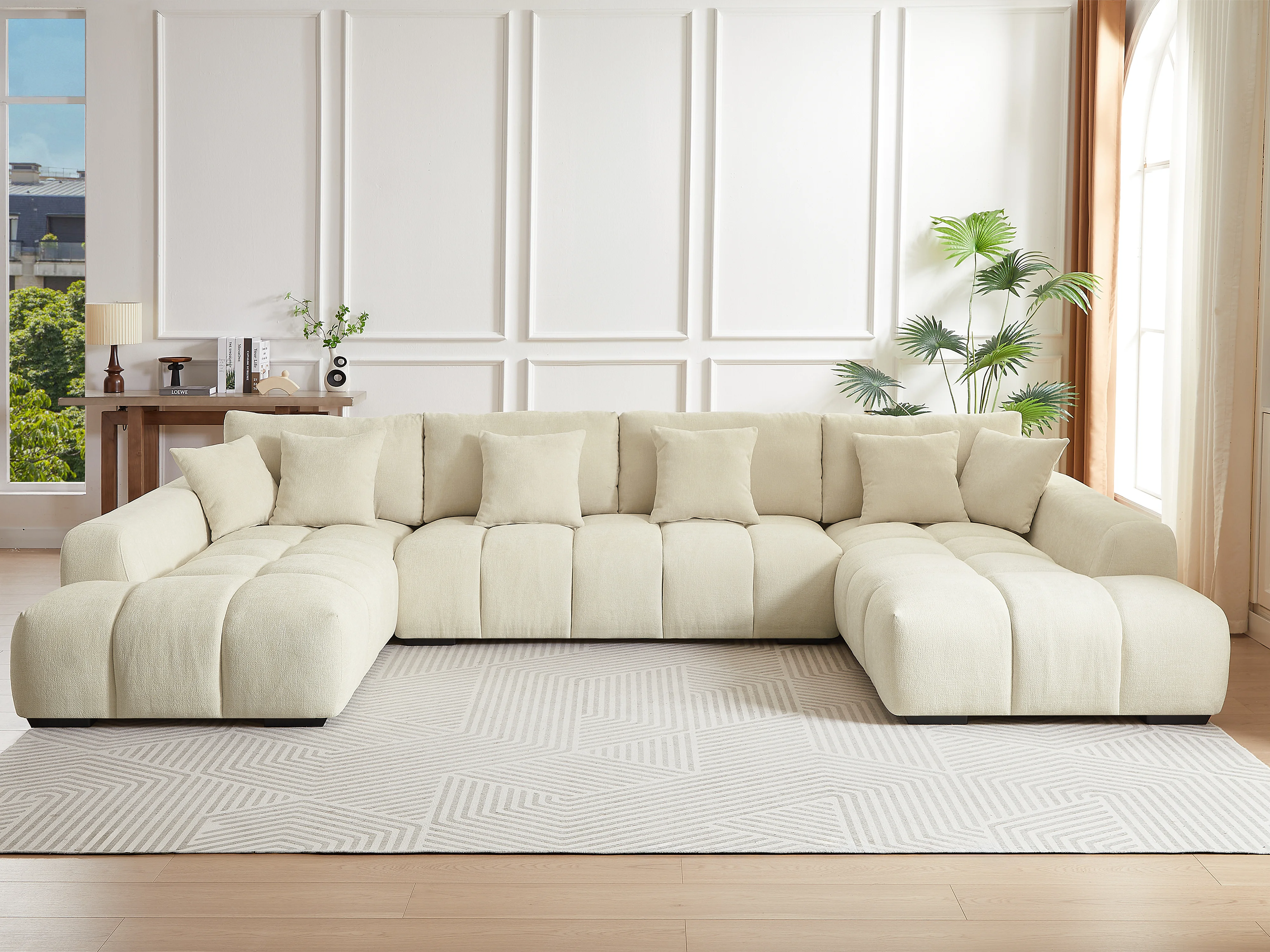 Grand canapé d'angle panoramique en tissu texturé beige BERENIA