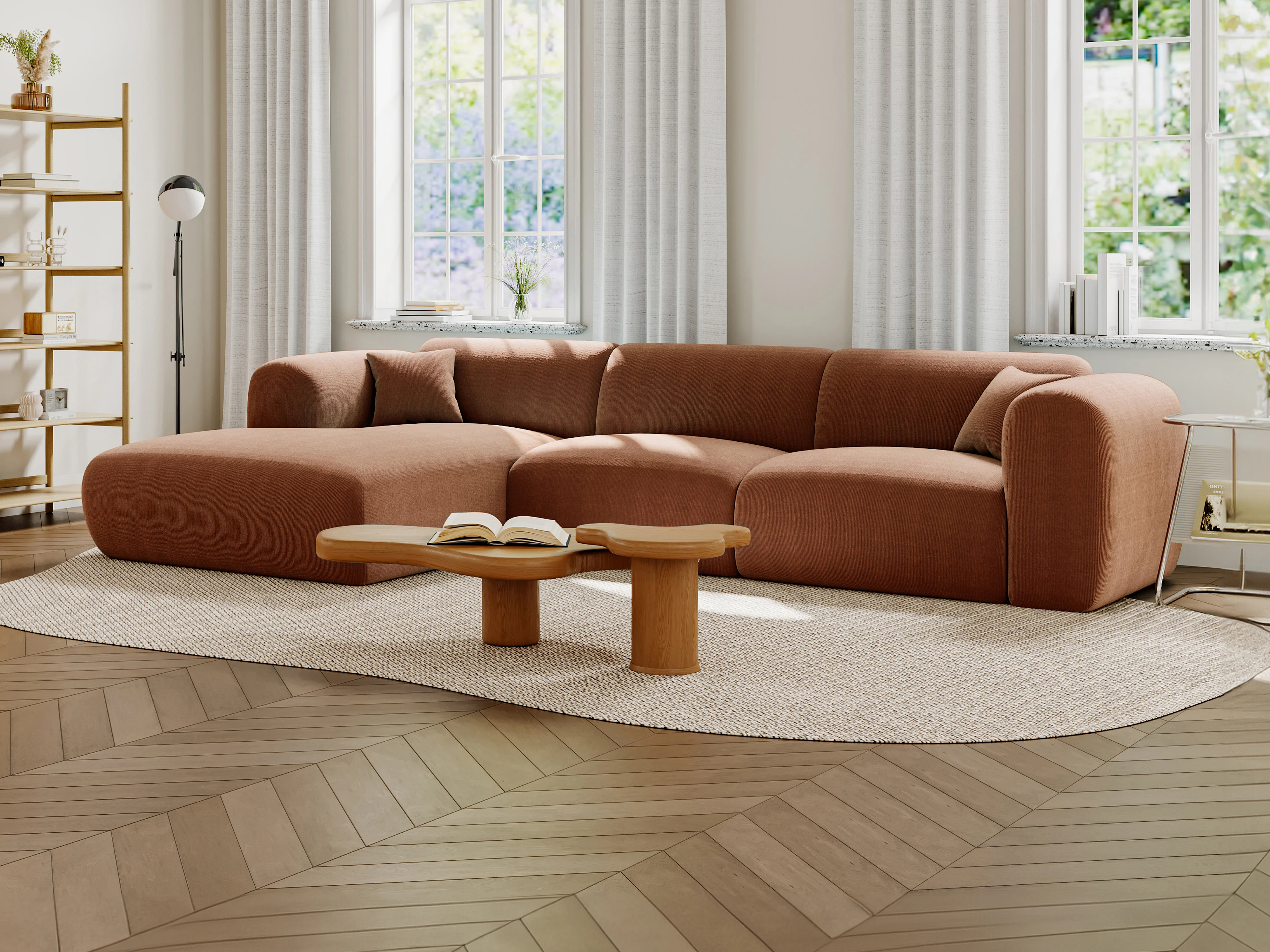 Grand canapé d'angle gauche en velours côtelé fines côtes terracotta POGNI de Maison Céphy