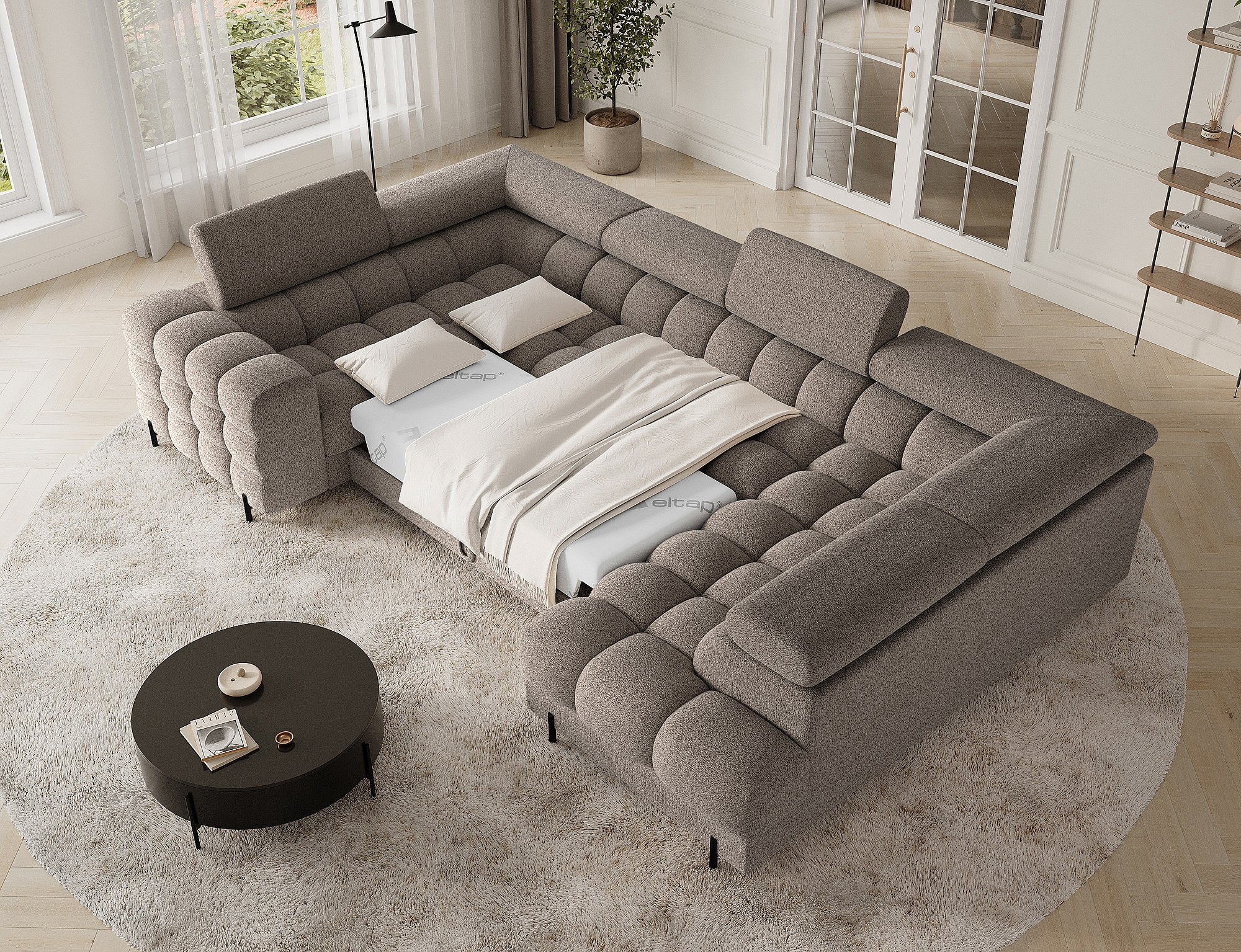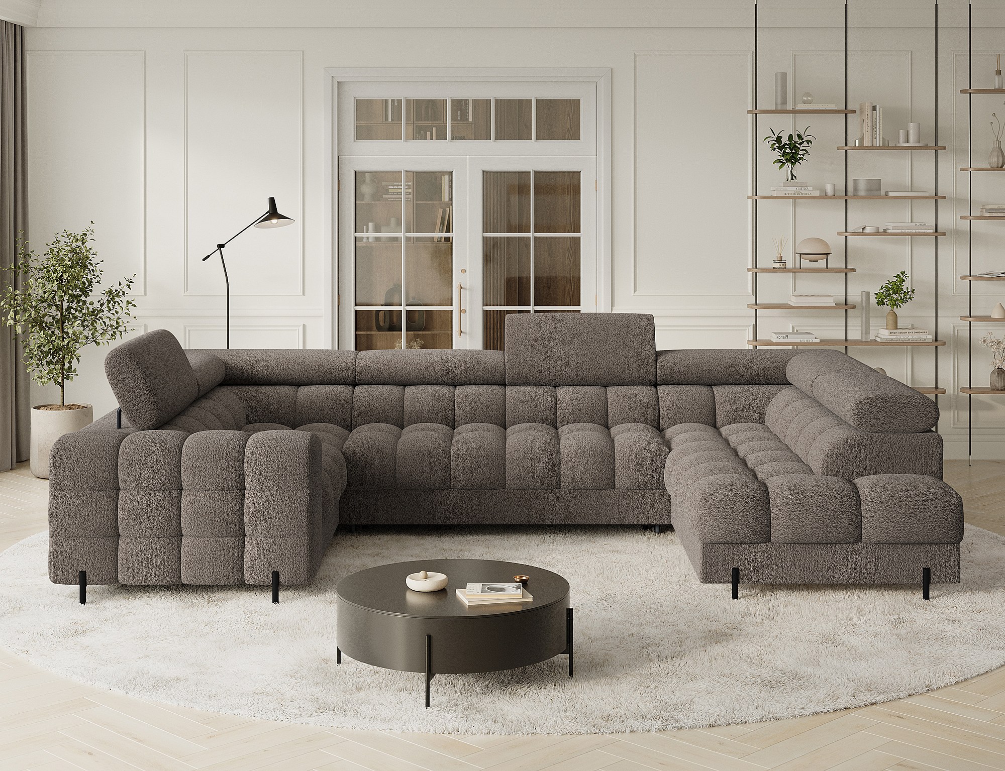 Grand canapé en U en tissu KARBON – Avec fonction lit et coffre-Marron-Méridienne A droite