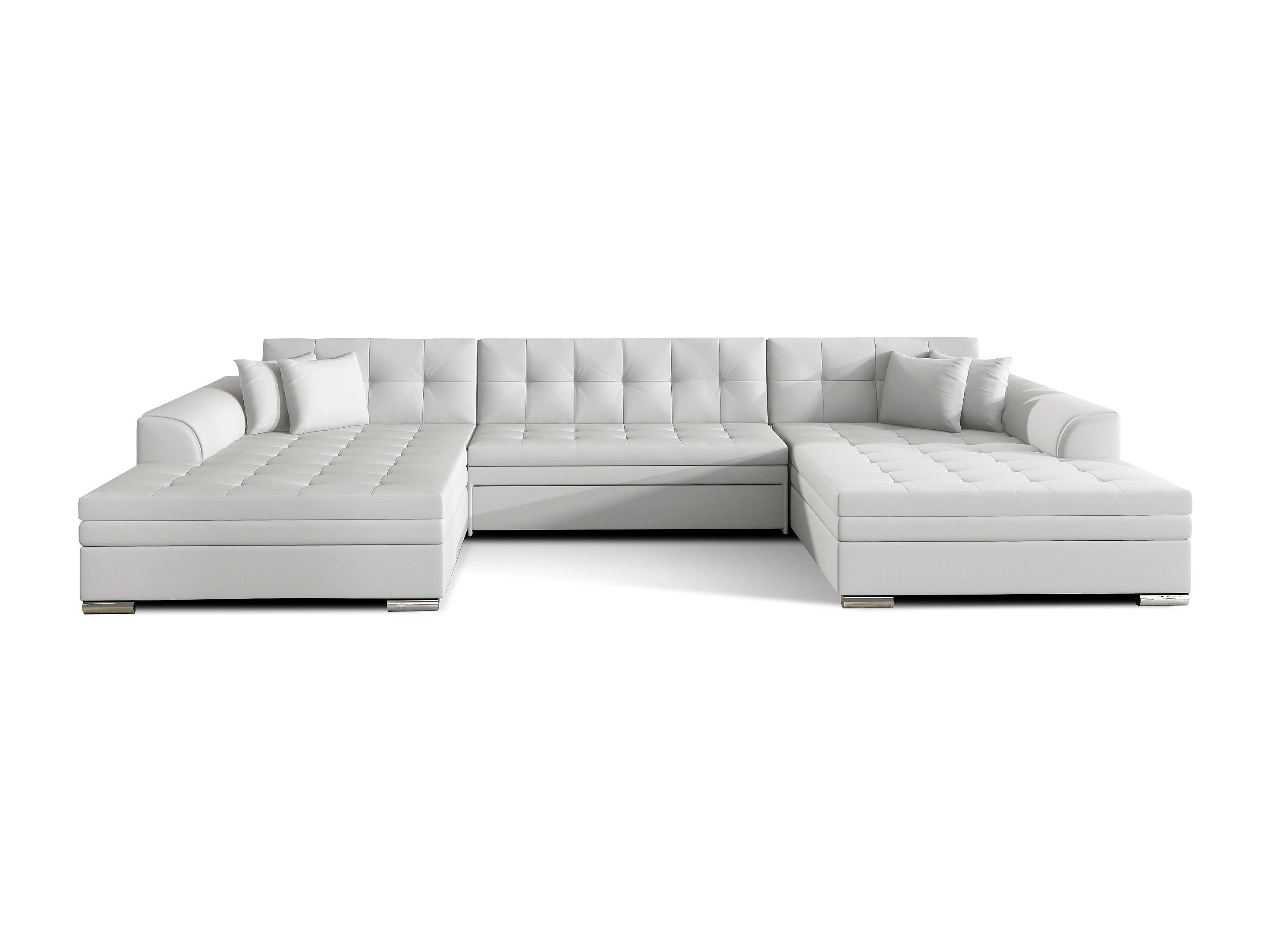 Grand canapé panoramique convertible simili cuir blanc Vira 359cm