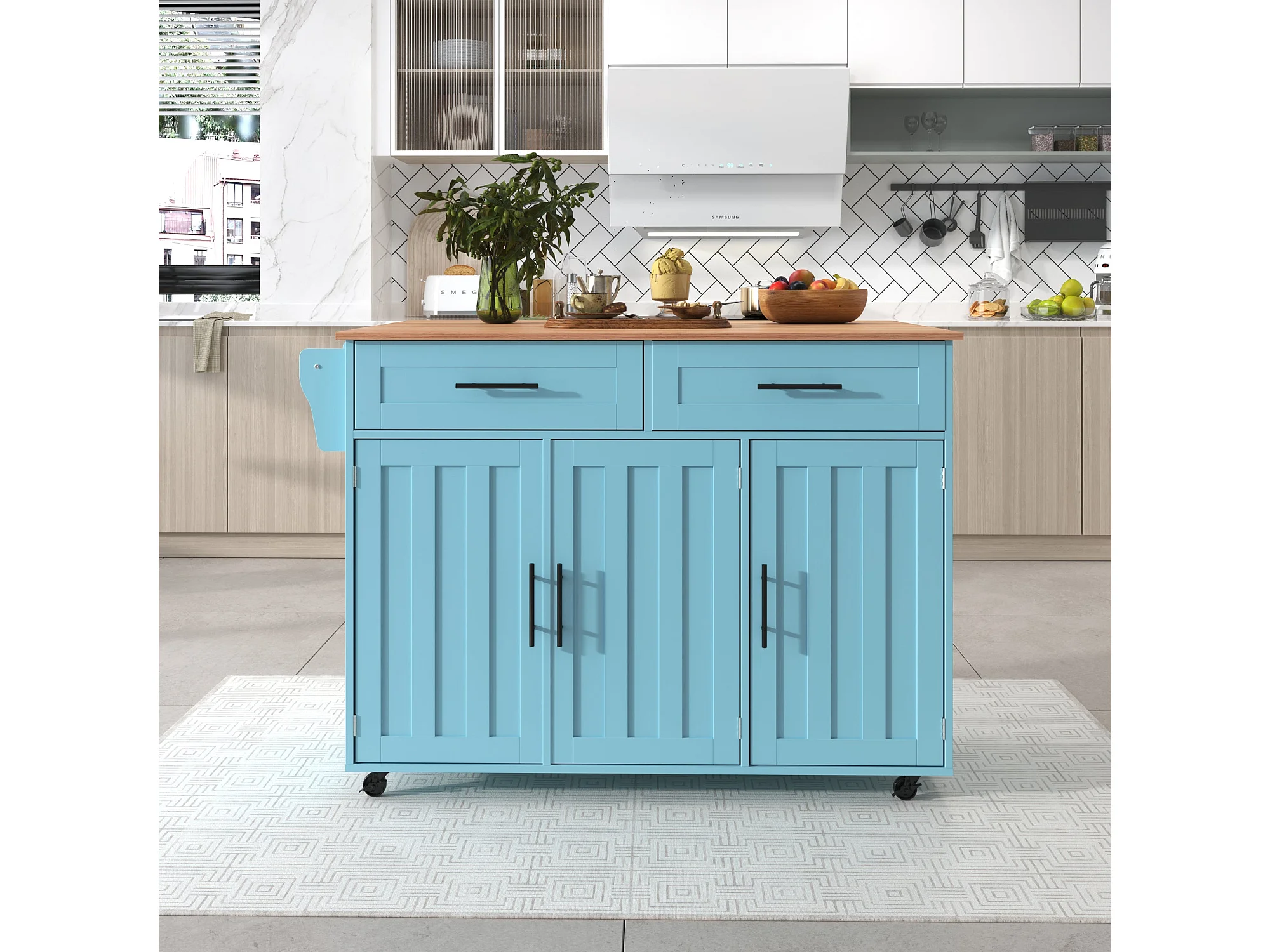 Grand chariot de salle à manger / buffet 129x46(71)x91,5 cm, plan de travail aspect bois massif + meuble bleu / plateau rabattable / portes de rangement / roulettes