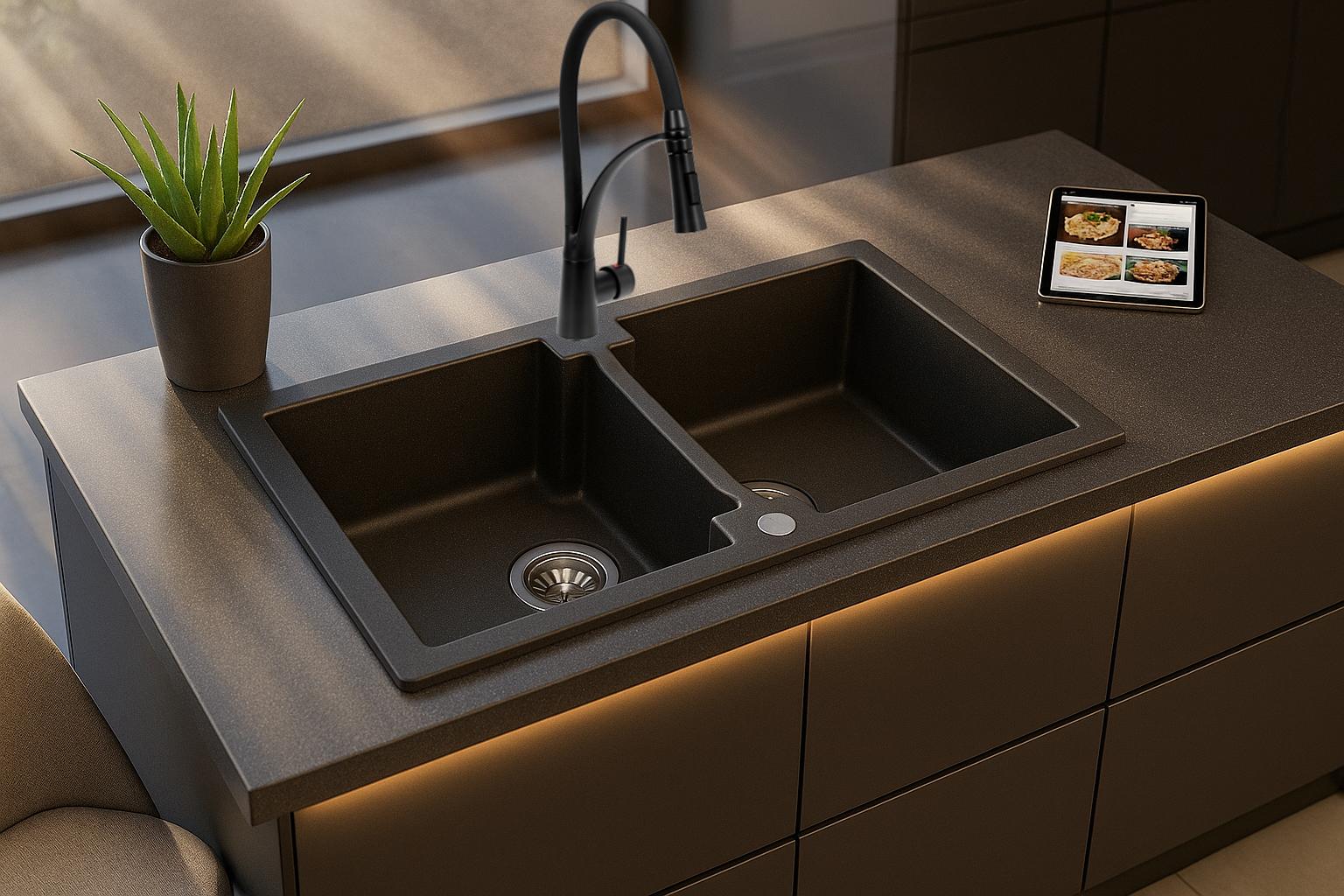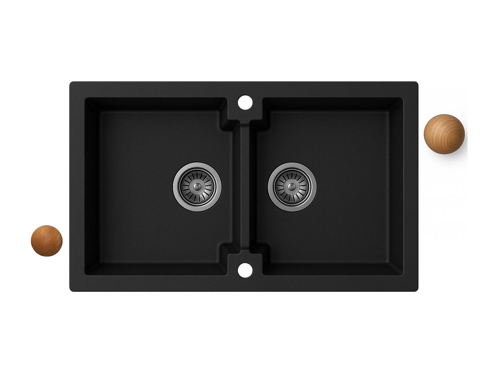 Grand double évier DEUITO NOIR en granit premium - 2 Bacs sans égouttoir et vidage inclus